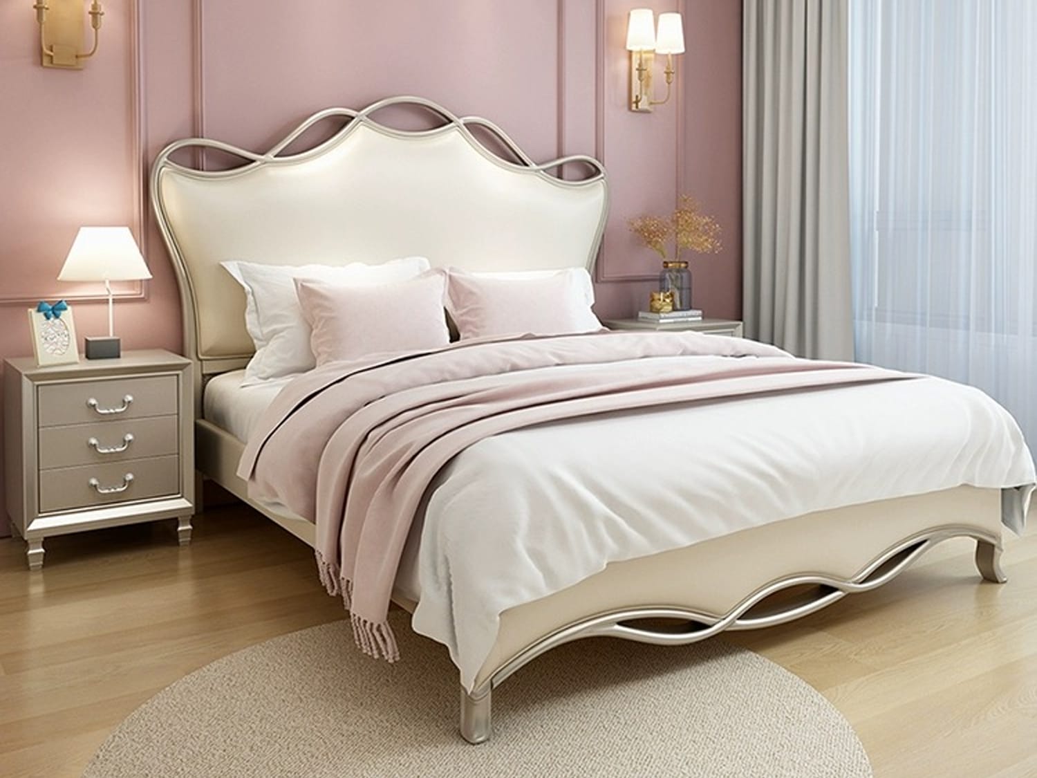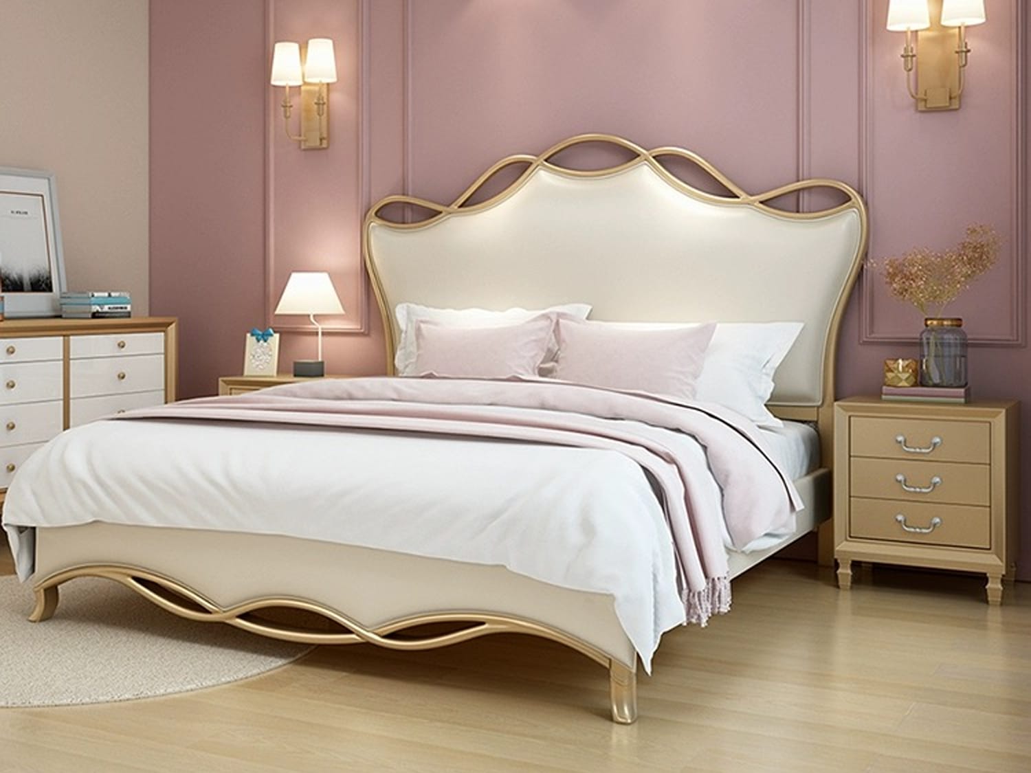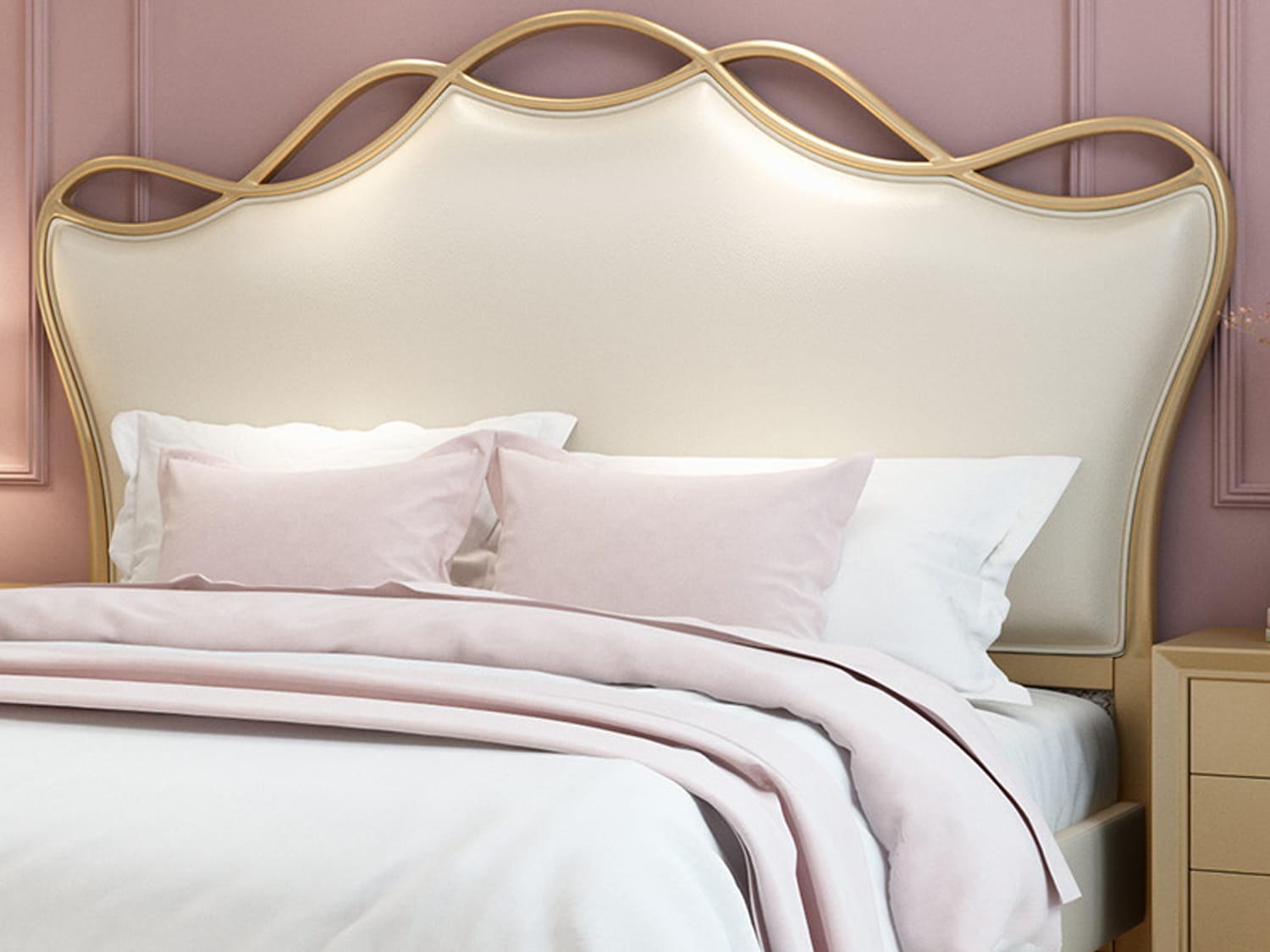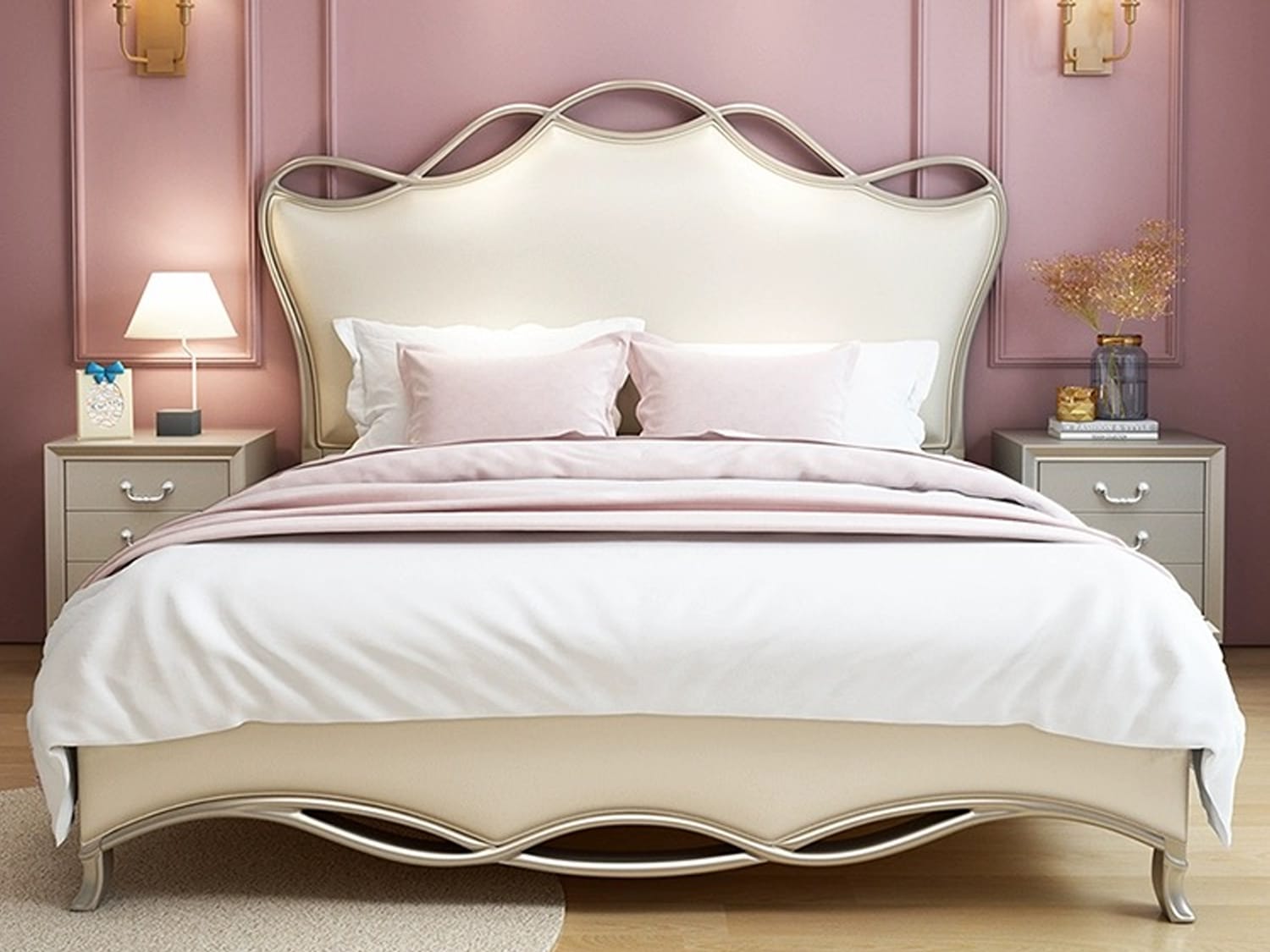 Introducing the Mina Leather Bed Frame in Gold or Silver, available in Queen or King size. This bed frame combines modern elegance with durable construction, offering both style and comfort. The Mina Leather Bed Frame is designed with a modern and elegant aesthetic, adding a touch of sophistication to your bedroom decor. The sleek lines and refined details make it a statement piece in any room.The bed frame is meticulously crafted with attention to detail, ensuring a luxurious and refined aesthetic that enhances the overall ambiance of your bedroom.