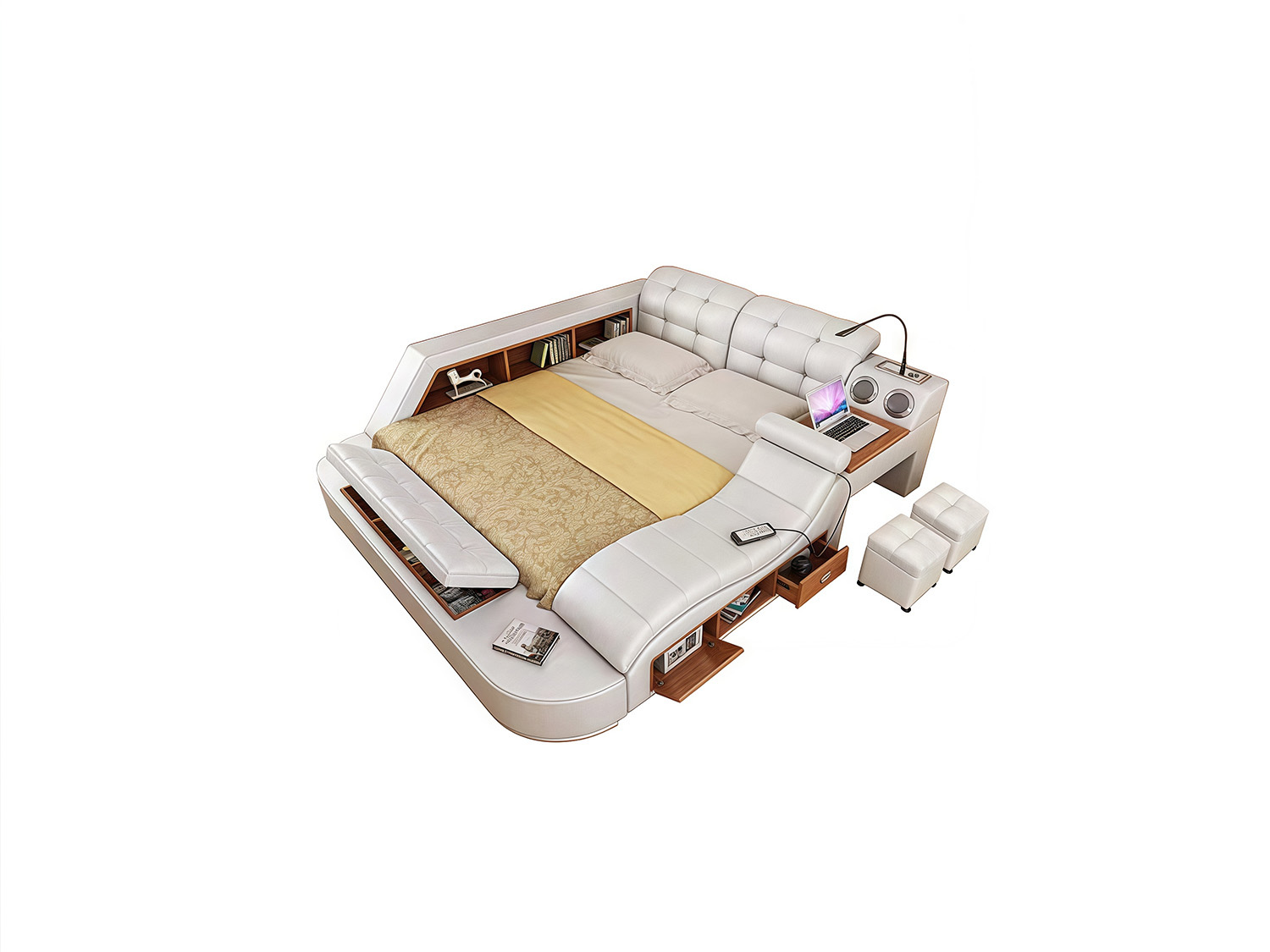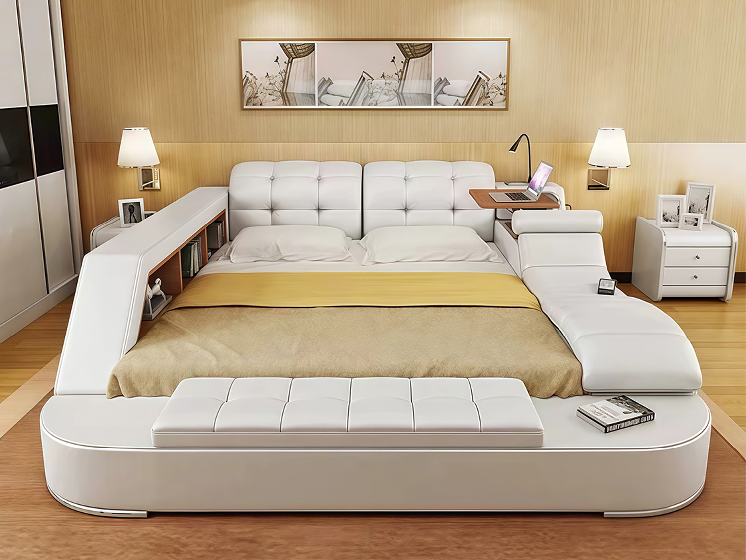 Experience the pinnacle of comfort and luxury with our Multi-Functional Smart Bed with Massage Chaise in Cream. Designed to revolutionize your bedroom, this bed combines versatility, functionality, and cutting-edge technology to provide you with an unparalleled sleep experience.