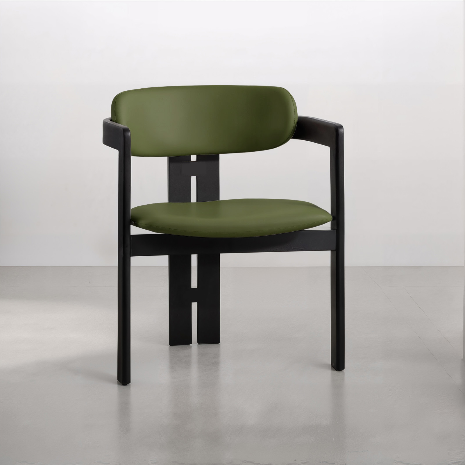 Murdock Modern Leather Dining Chair-Black/White/Green/Brown-Black Wooden Frame