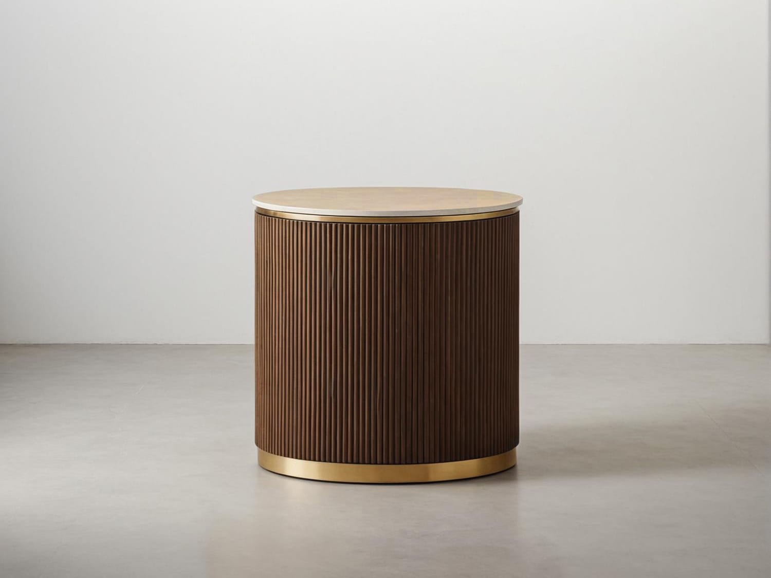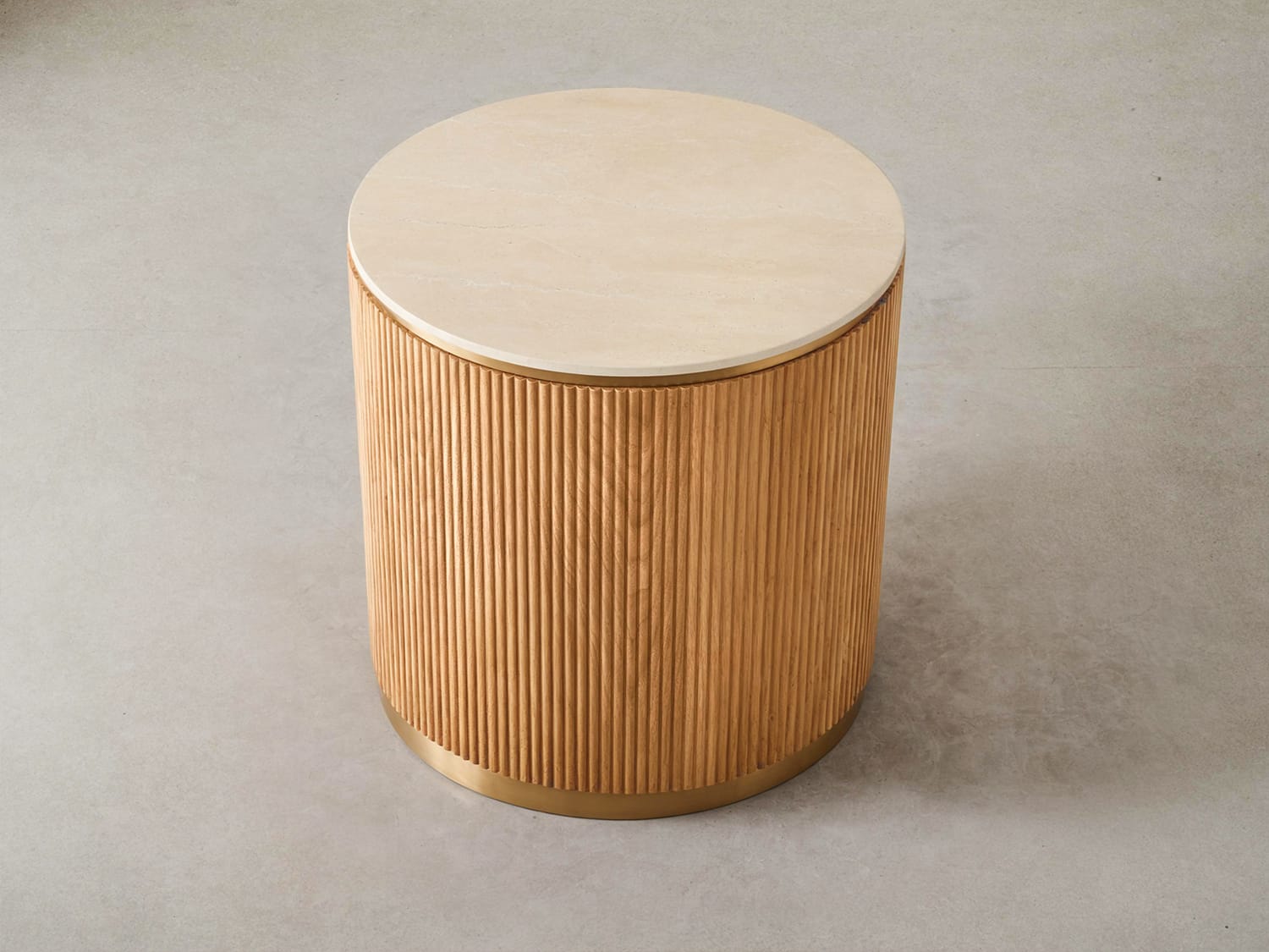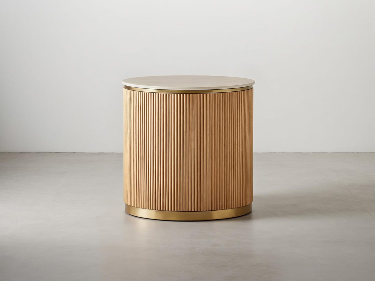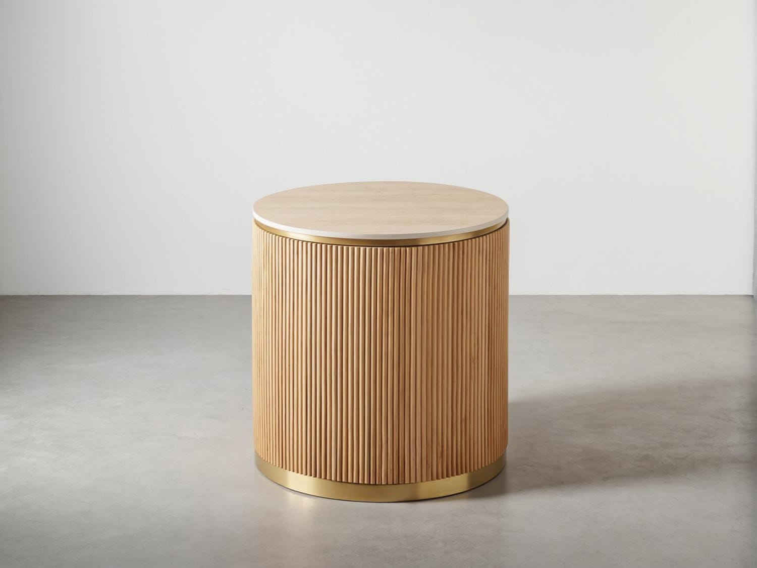 Nebo Travertine Sintered Stone Side Table-Natural/Dark Walnut