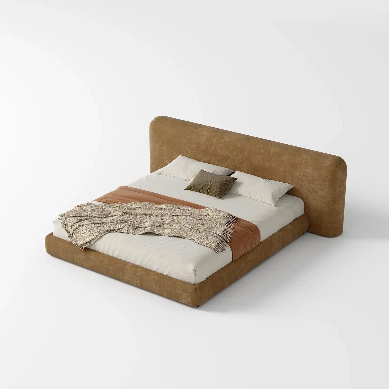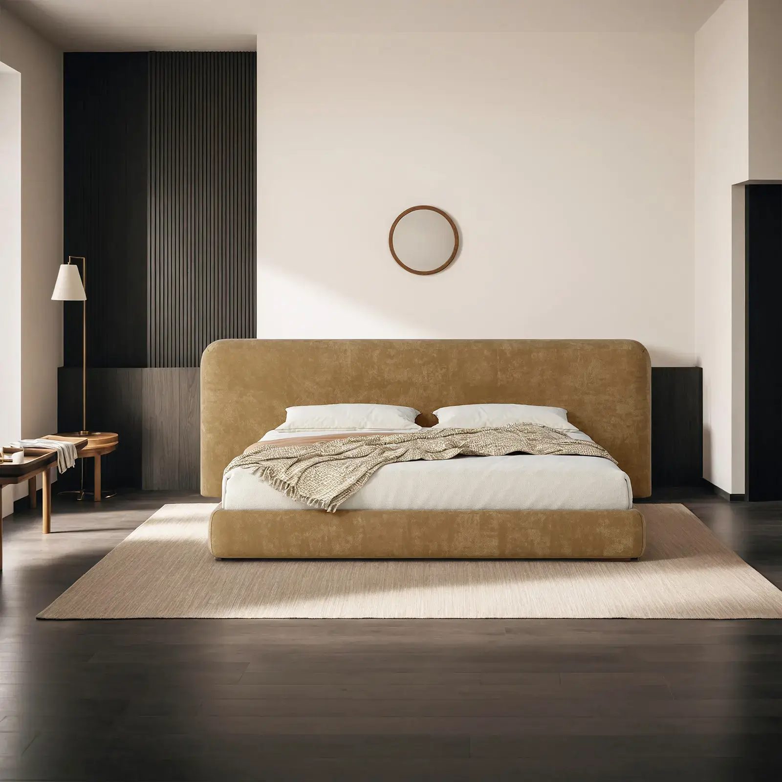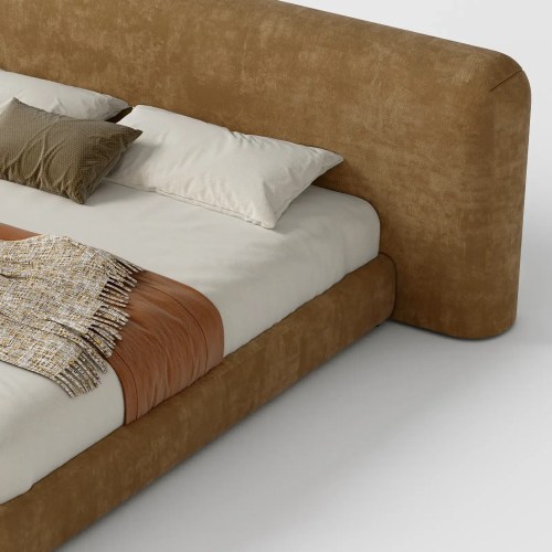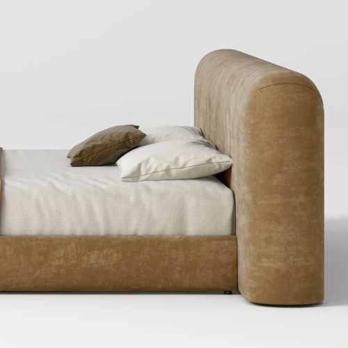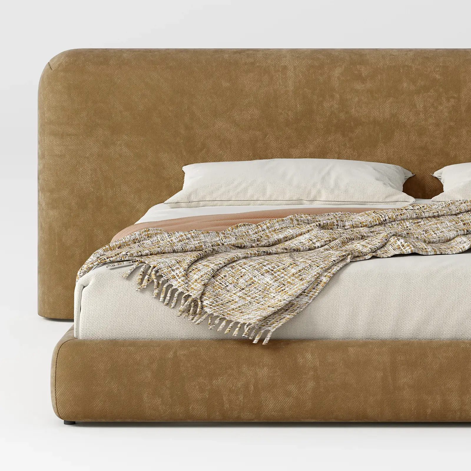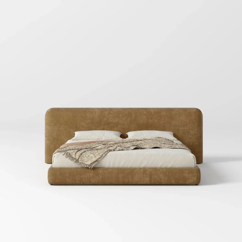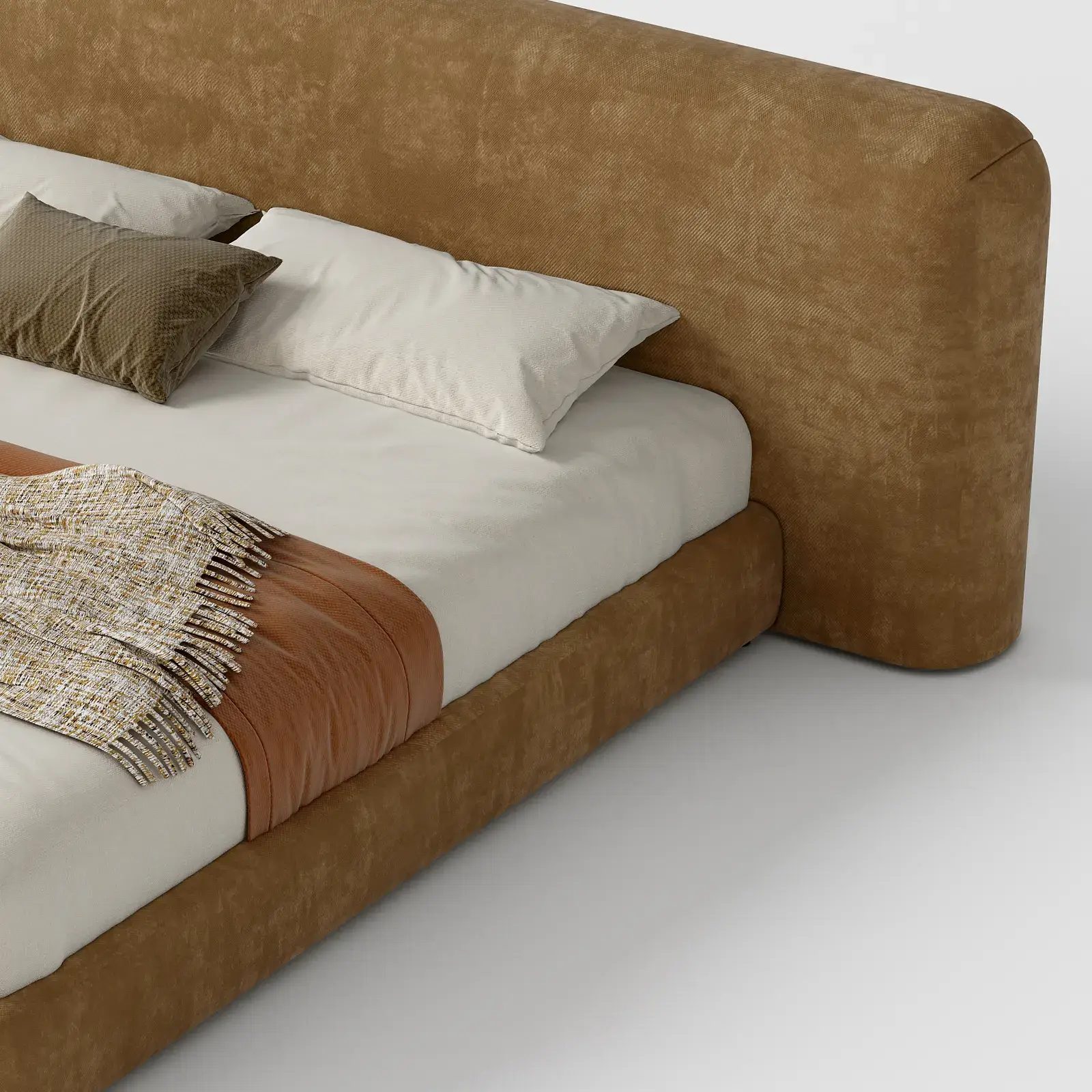 Nova Modern Velveteen Bed Frame-Cocoa/Camel-Queen/King