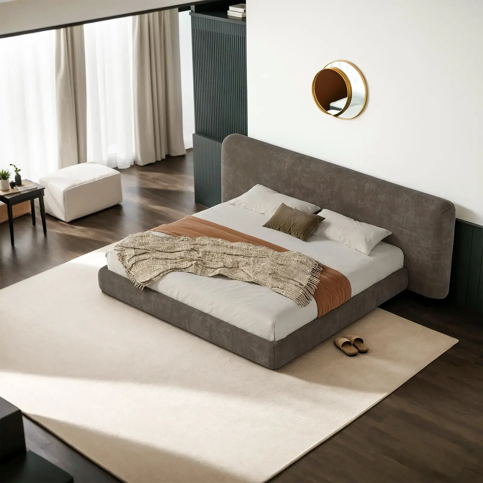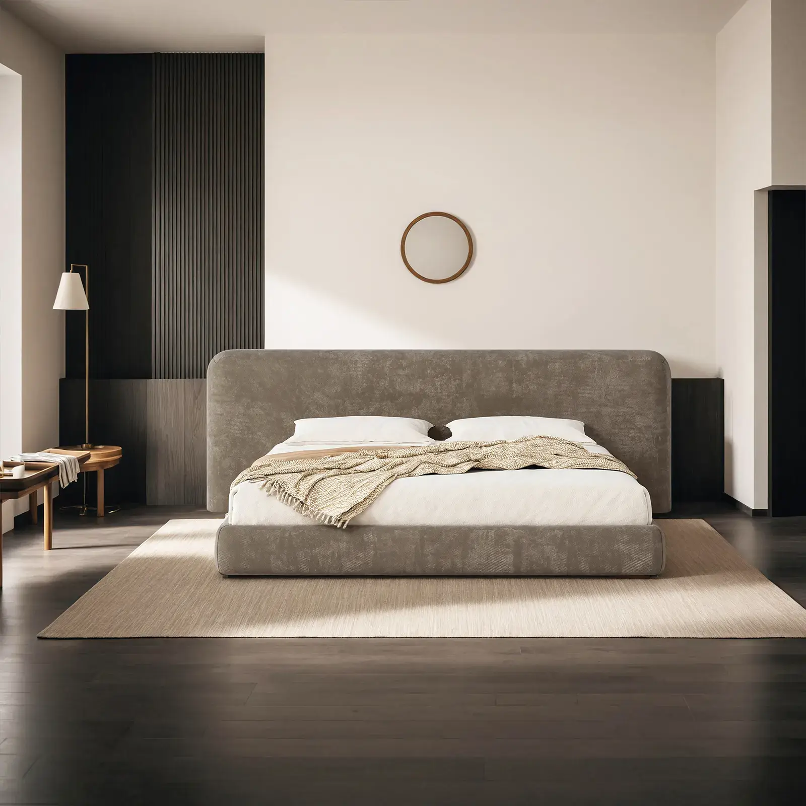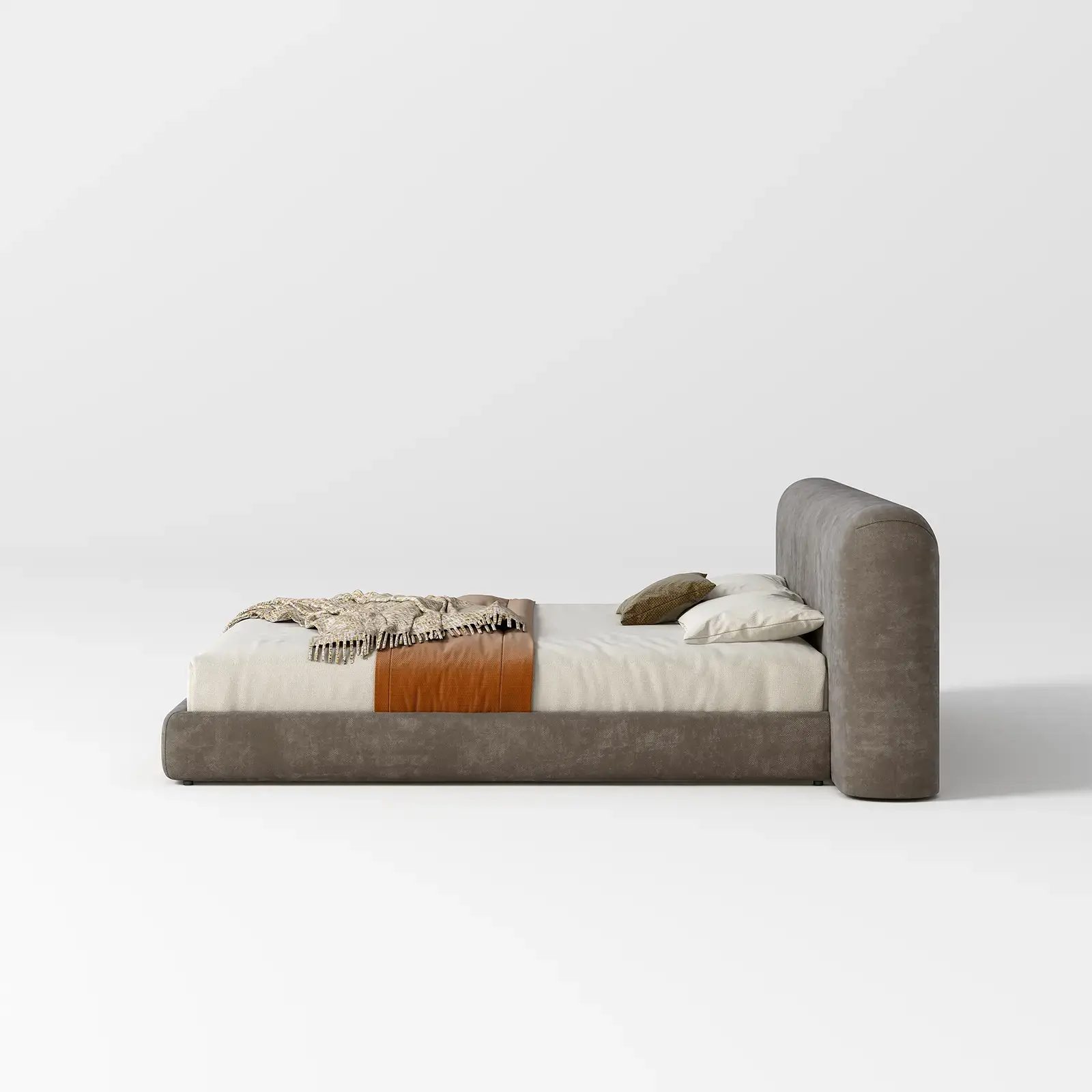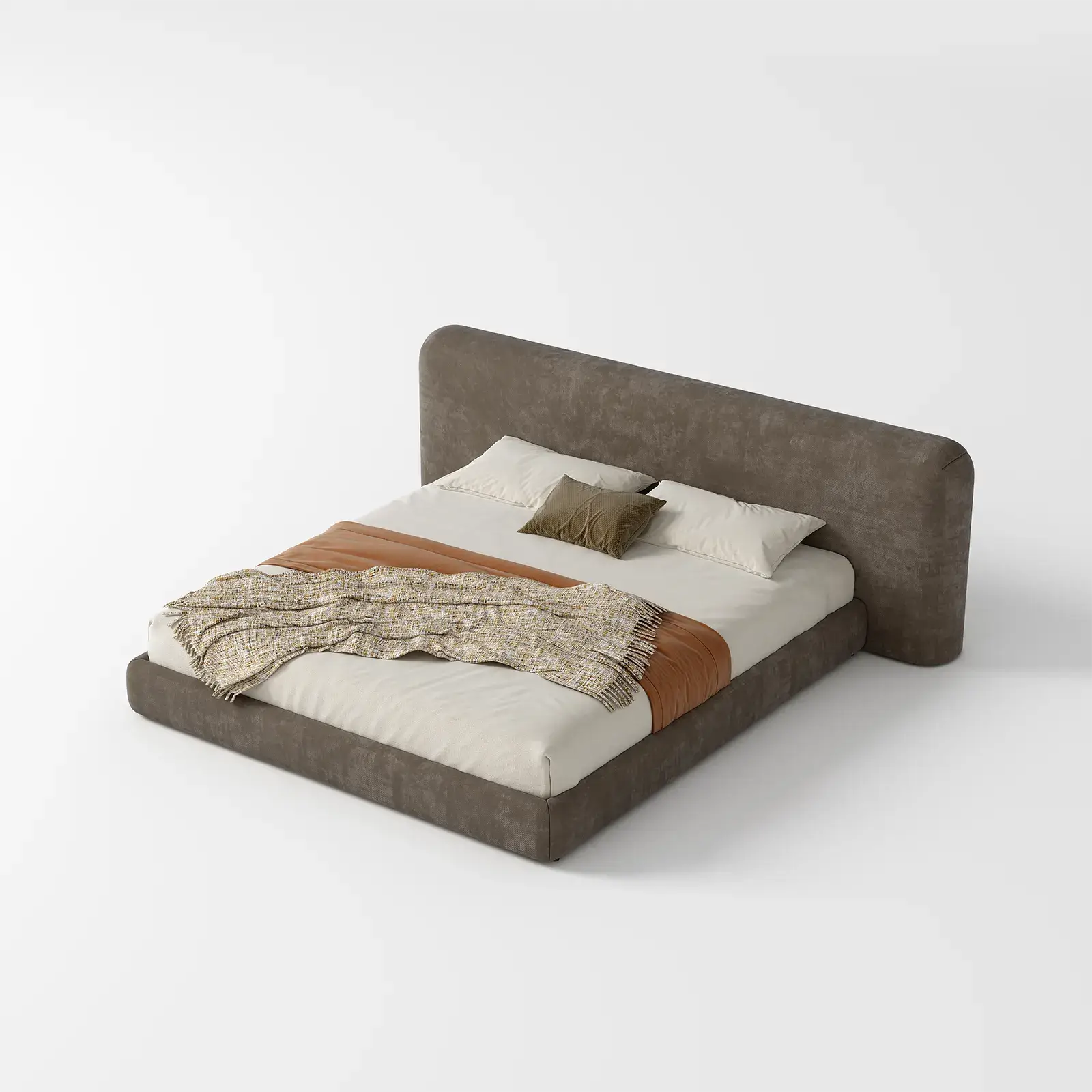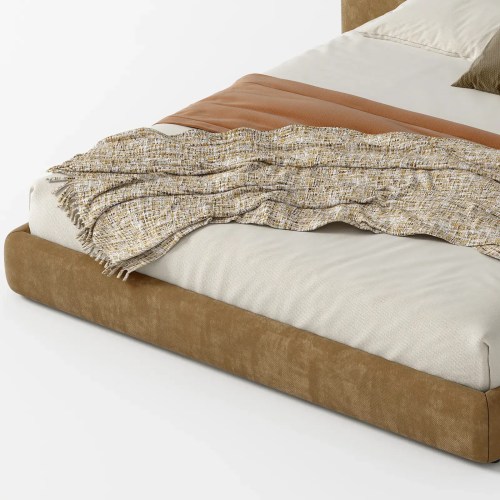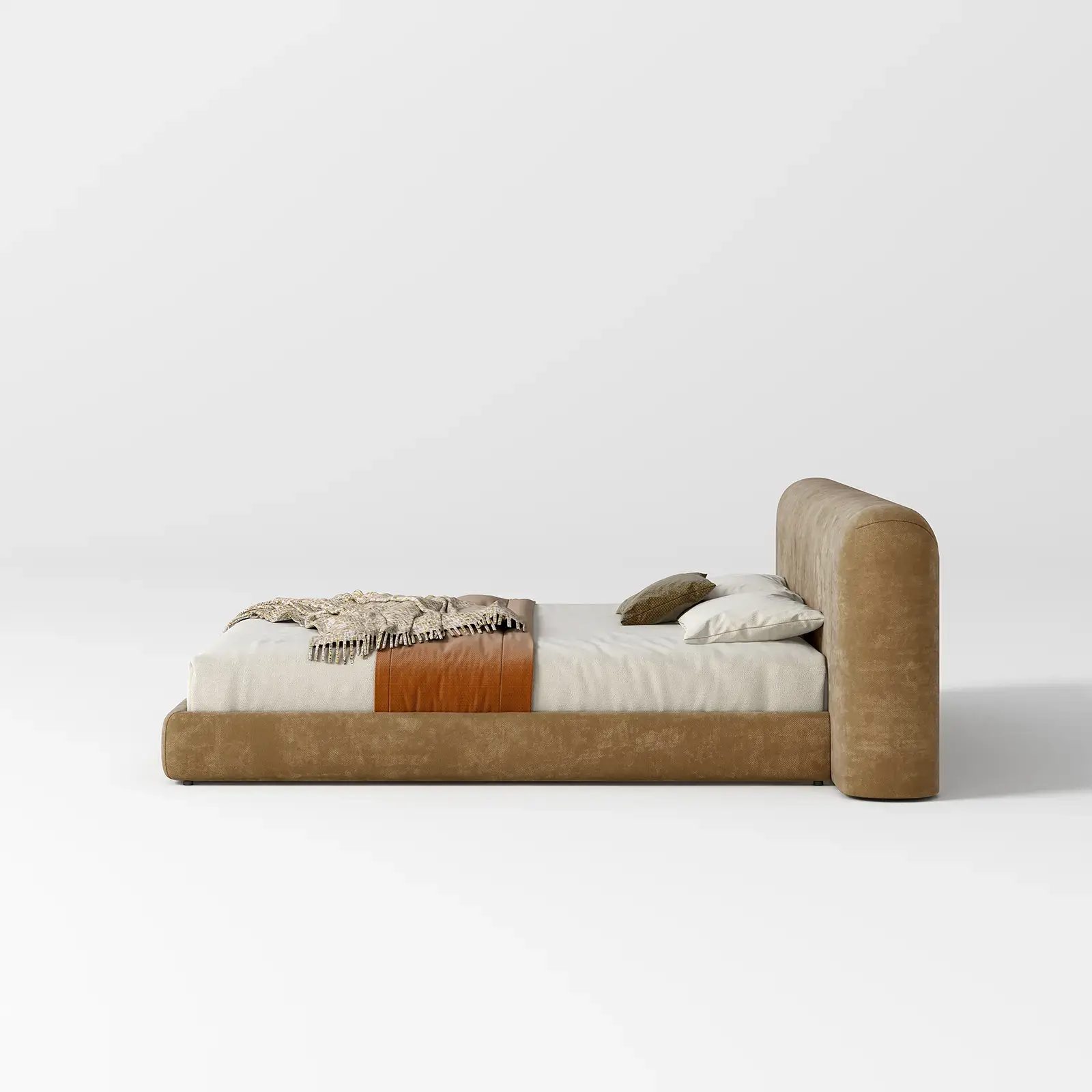 Nova Modern Velveteen Bed Frame-Cocoa/Camel-Queen/King