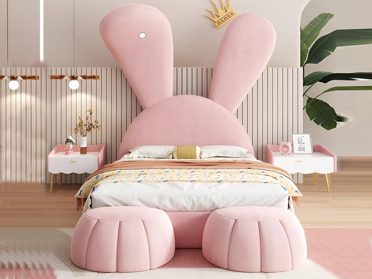 The Oaken Rabbit LED light Kids’ Bed Frame with Removable Ottoman is the perfect addition to any kid’s room.