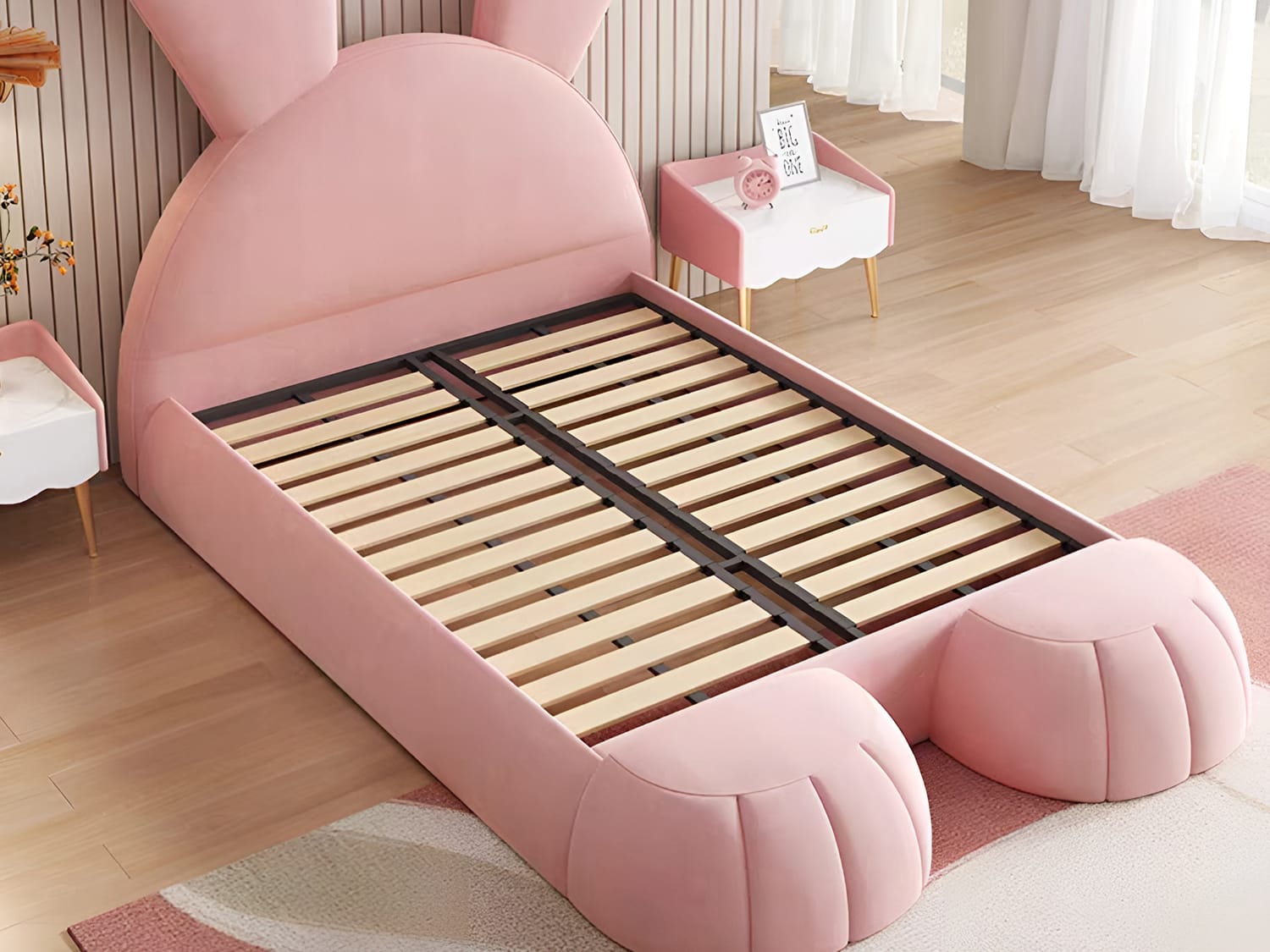 The Oaken Rabbit LED light Kids’ Bed Frame with Removable Ottoman is the perfect addition to any kid’s room.