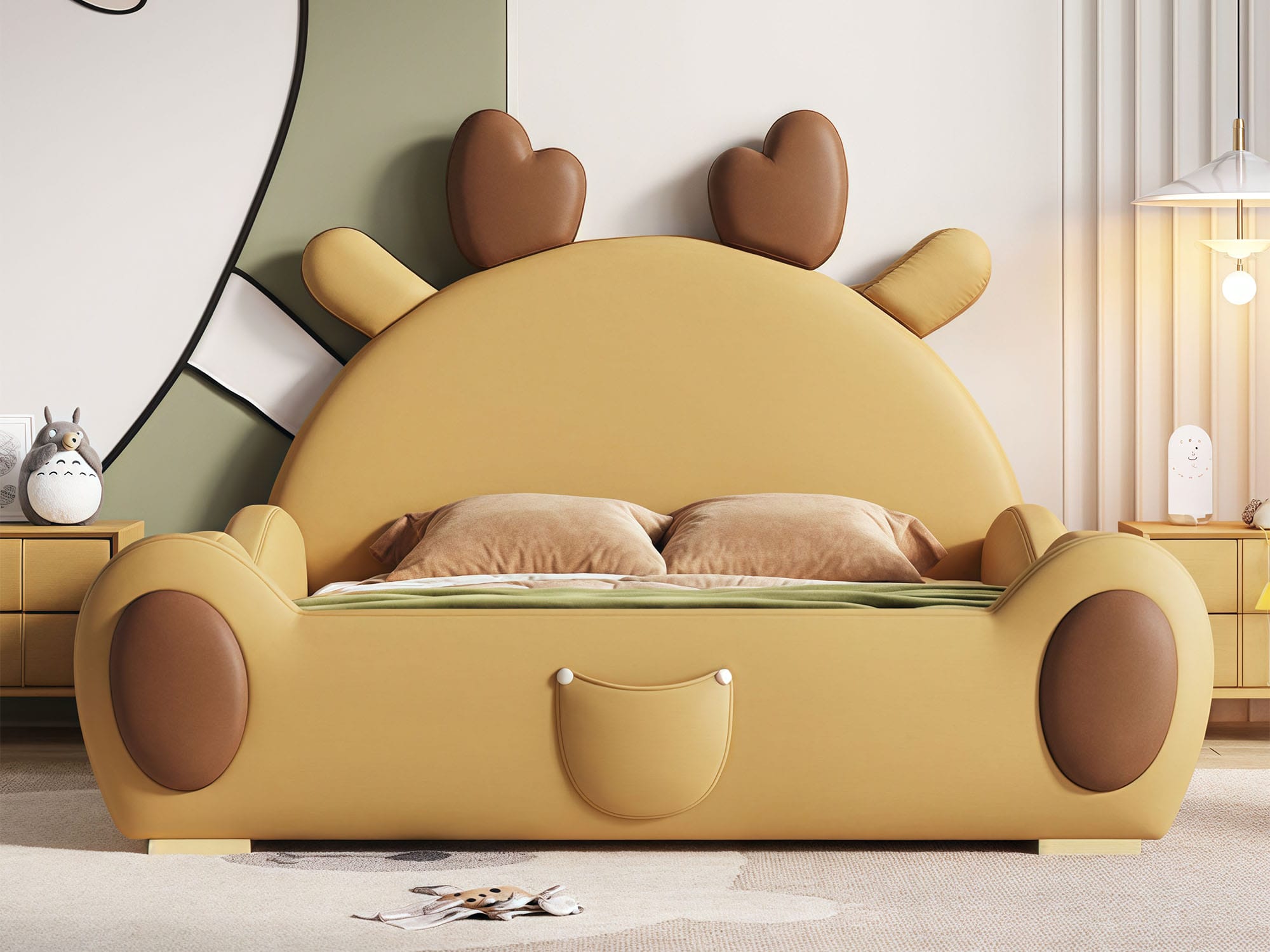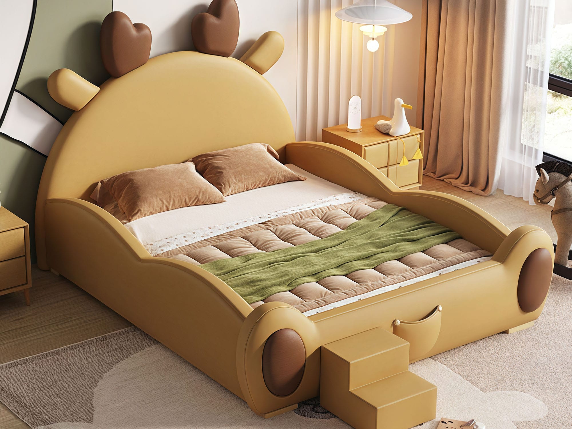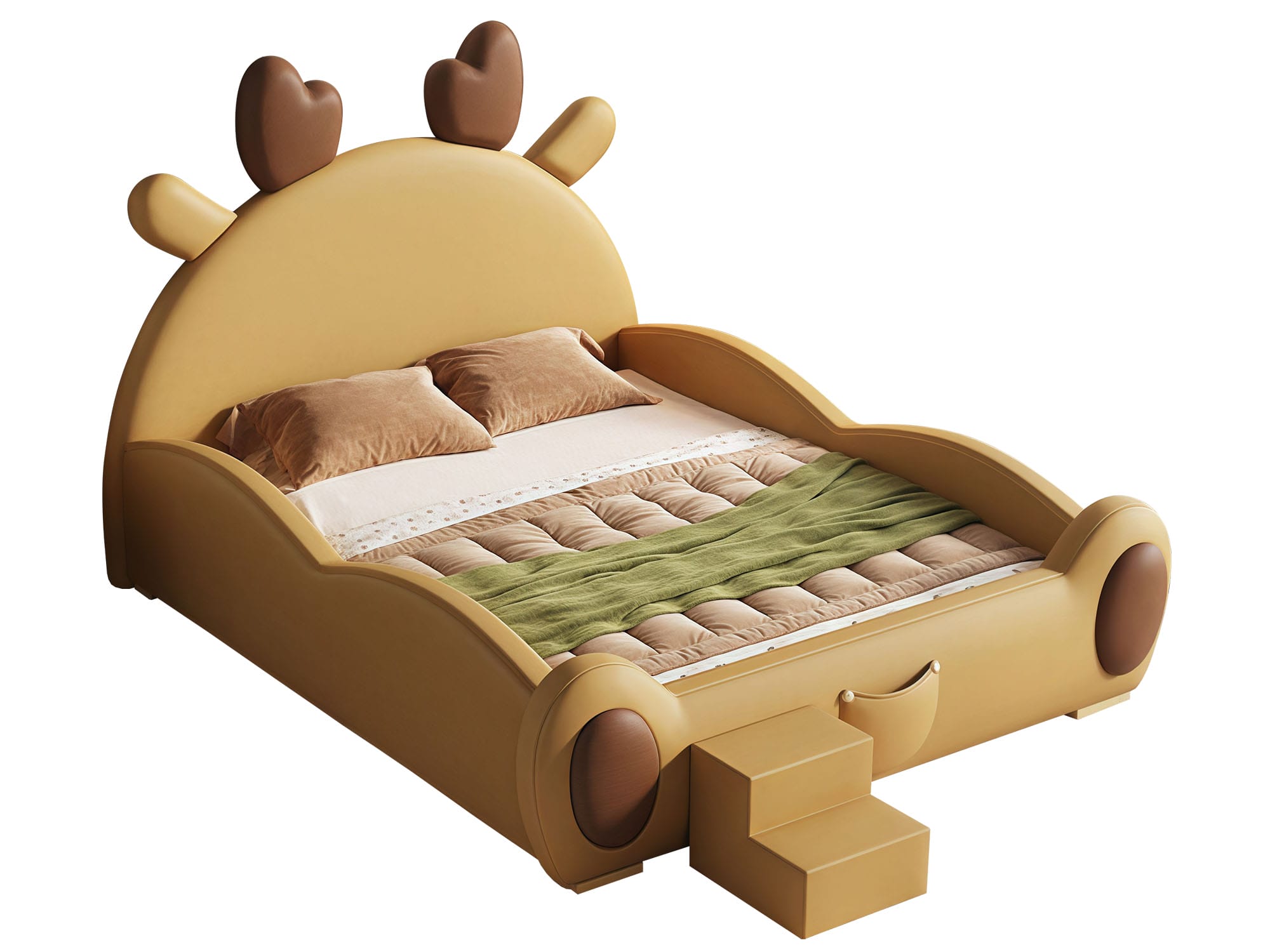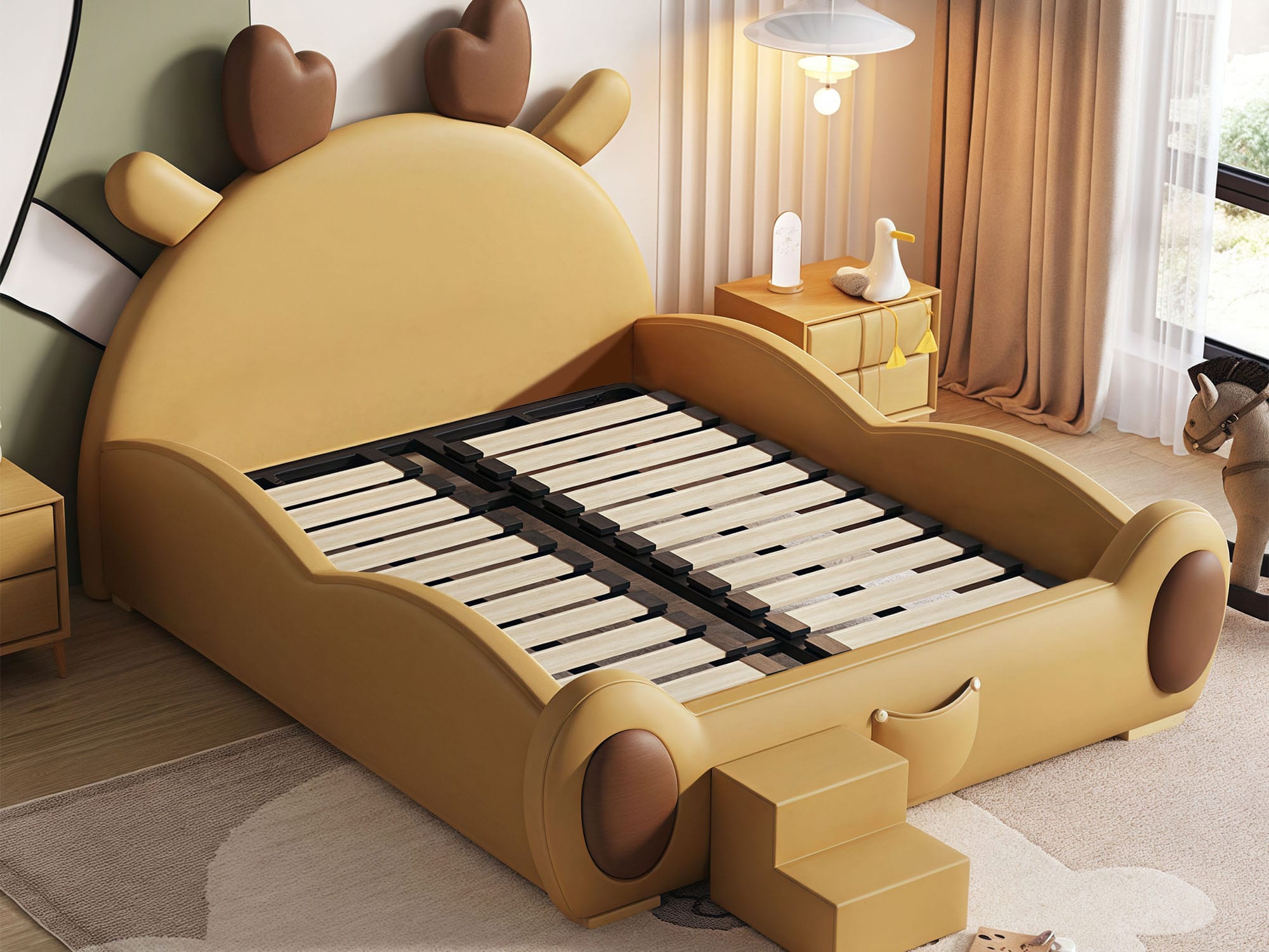 The Odem Fawn Modern Fence Style Kid’s Bed Frame is a delightful and safe sleeping solution for your child’s room. Its creative cartoon design and interesting styling bring a playful and modern vibe to any space. Designed with round safety corners and a safety bedside rail, it ensures a secure environment for little ones. Crafted from durable microfiber leather and high-density foam, it offers both comfort and longevity. Customize the bed with optional removable slides or removable stairs for added fun and convenience. Perfect for modern kids’ rooms, this bed frame combines safety, style, and practicality in one charming package.