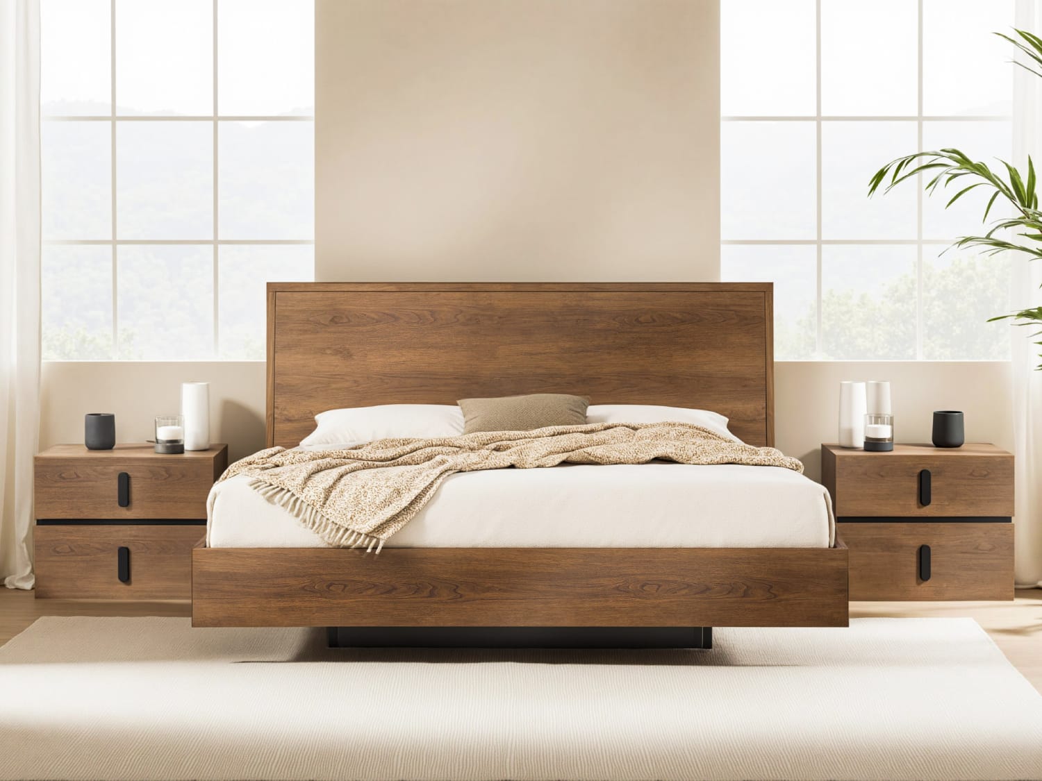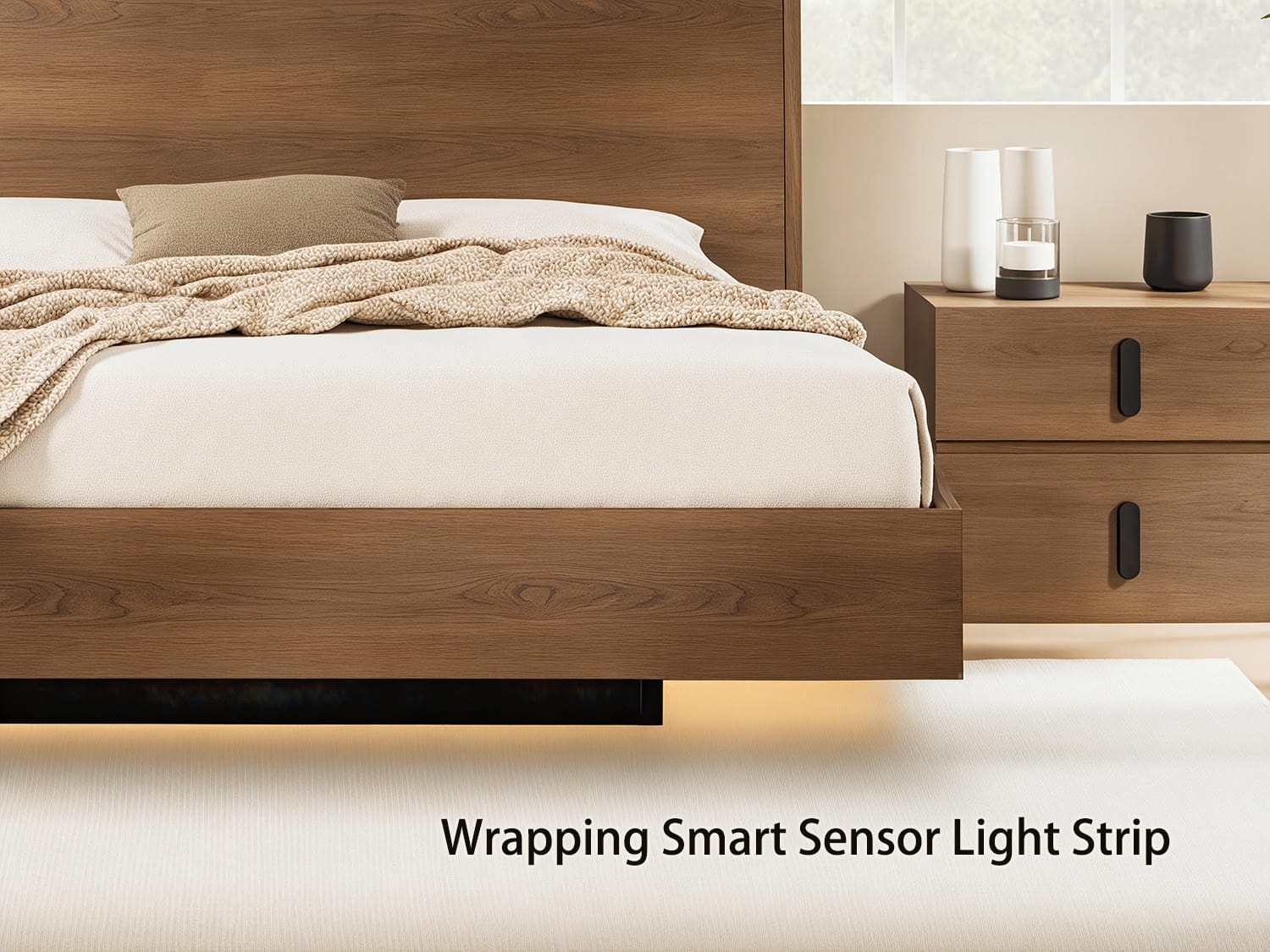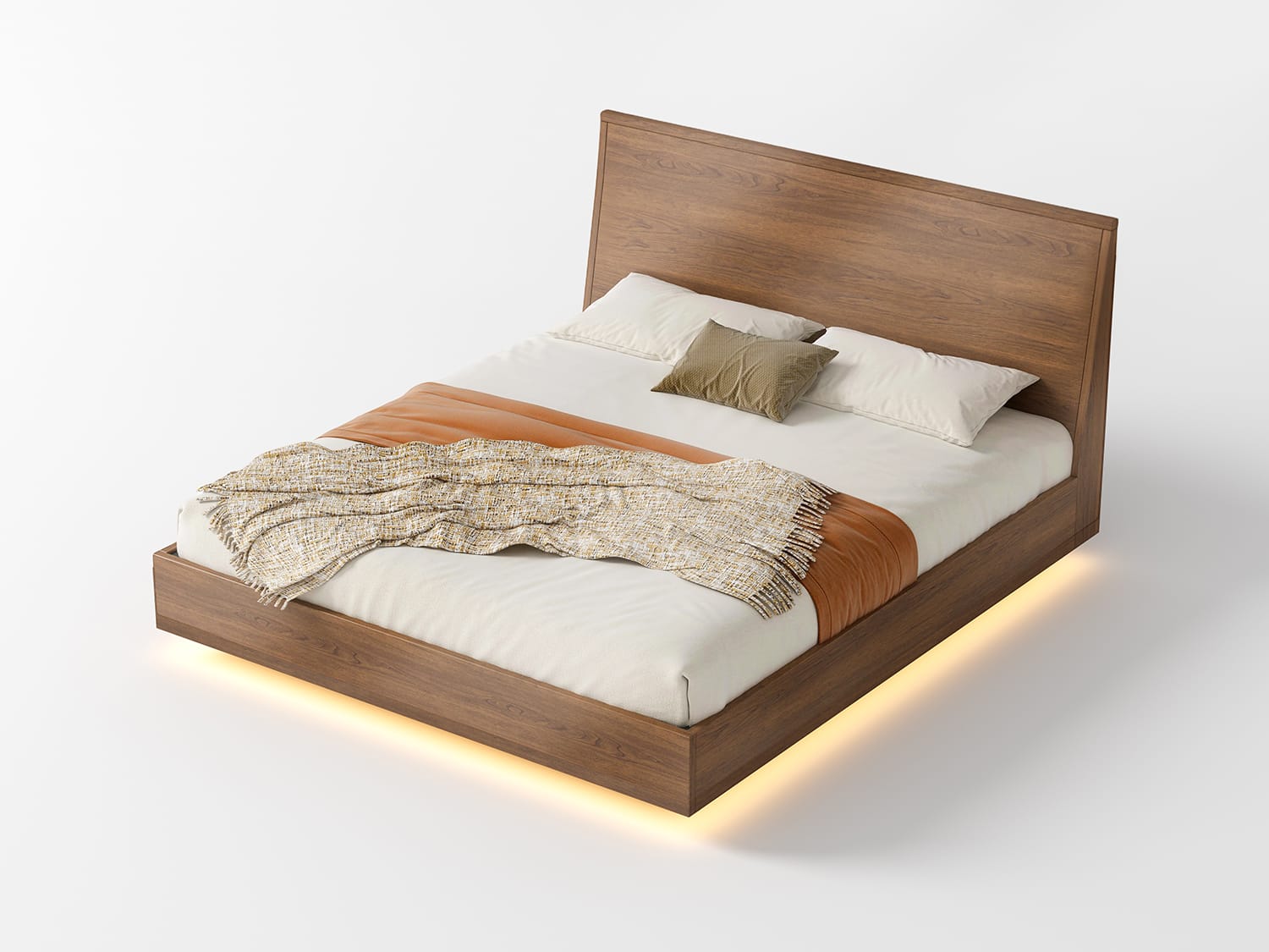 Odense Floating Wooden Bed Frame-With/Without LED-Queen/King