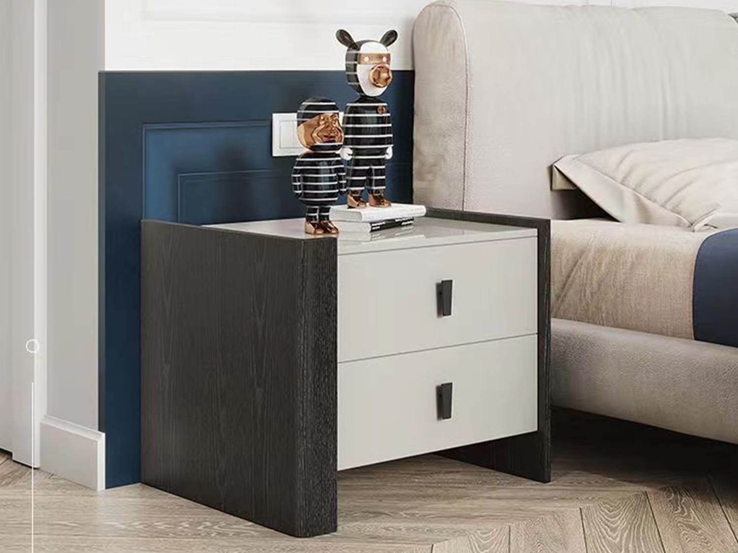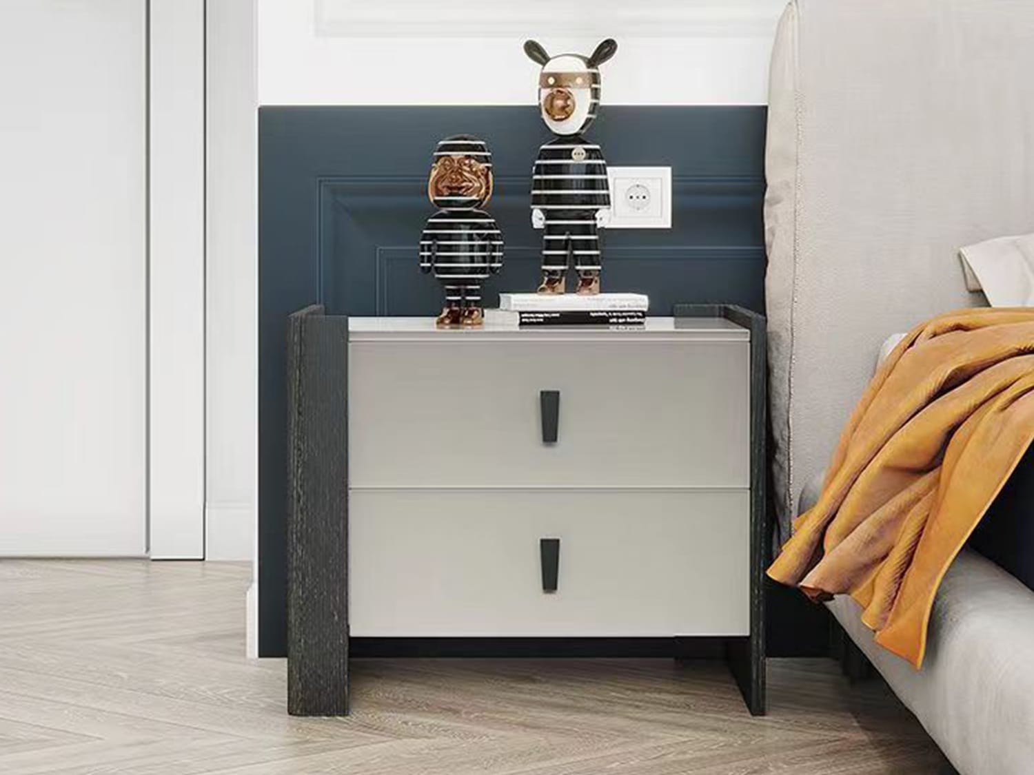 Bring a hint of modern style to your bedroom with the Ootha bedside table. Crafted from MDF and metal, this bedside table features two spacious drawers to keep your essentials organized. The drawers are fitted with silent slides for effortless use and smooth operation, while the curved edge highlights its elegant design. Finally, the metal handle provides added security for safe use.