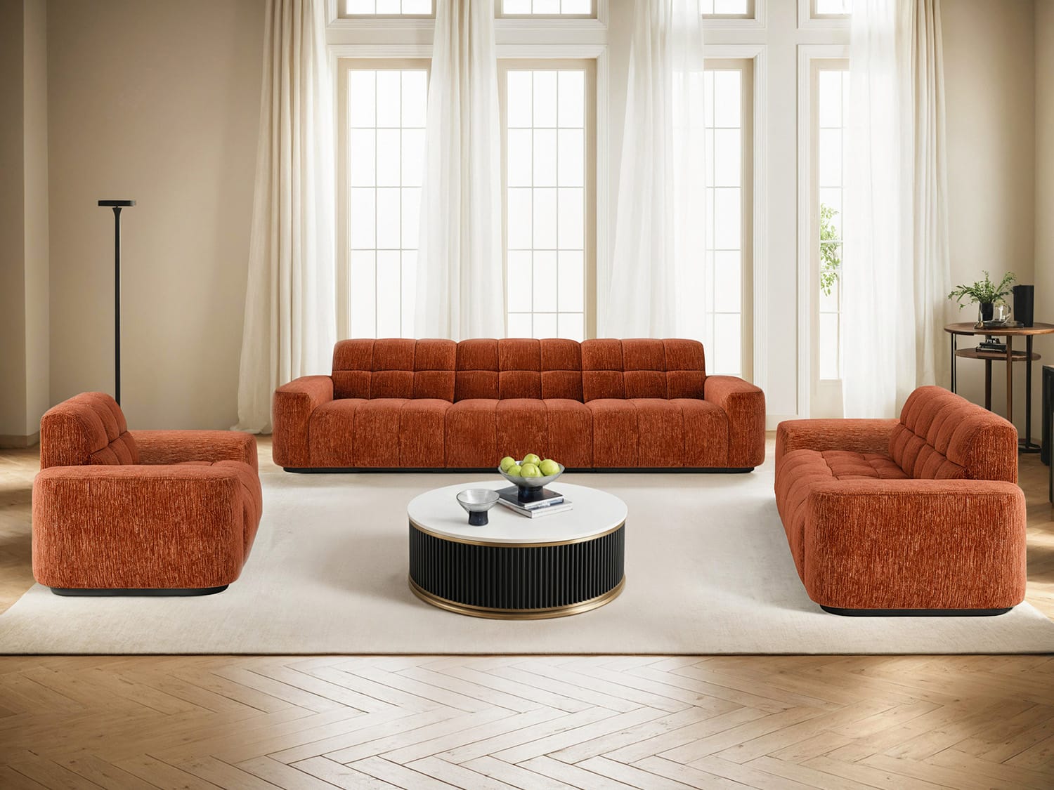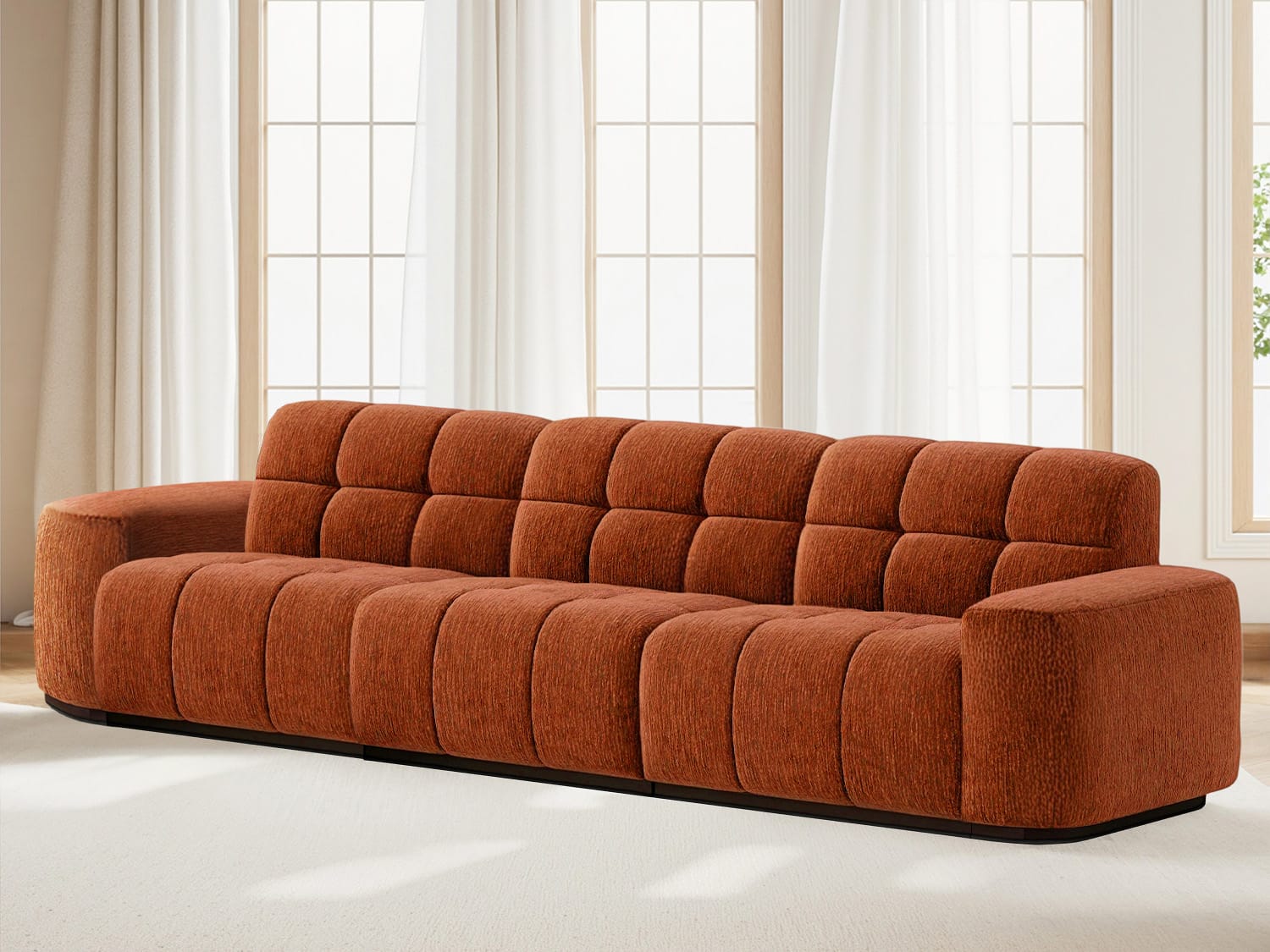 Paranas Modern Chenille 3 pieces Modular Sofa-Blackish Green/Vermilion