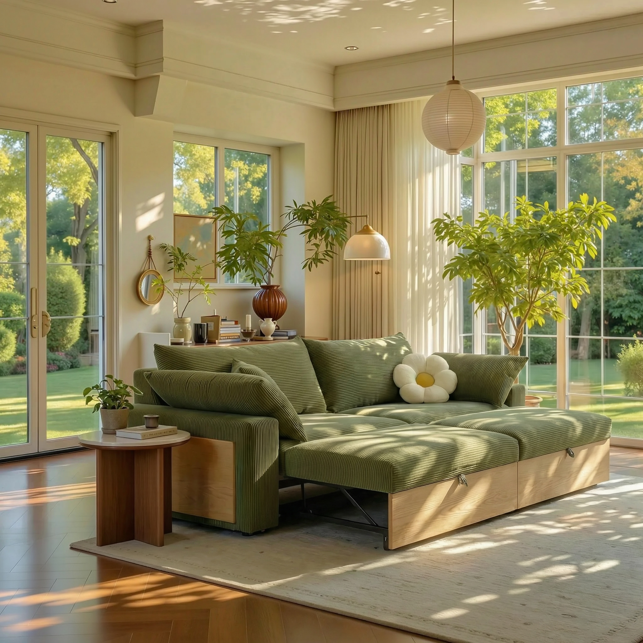 Pasha Modern Design Extension Sofa Bed-Off-White/Blackish Green-210CM/250CM