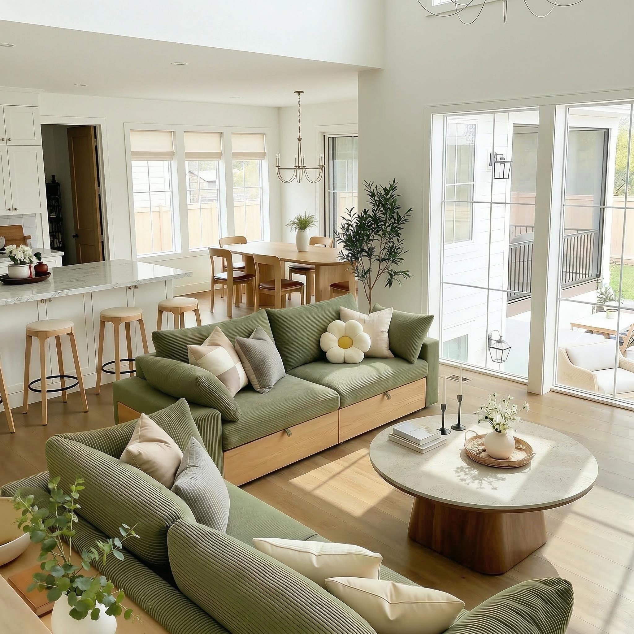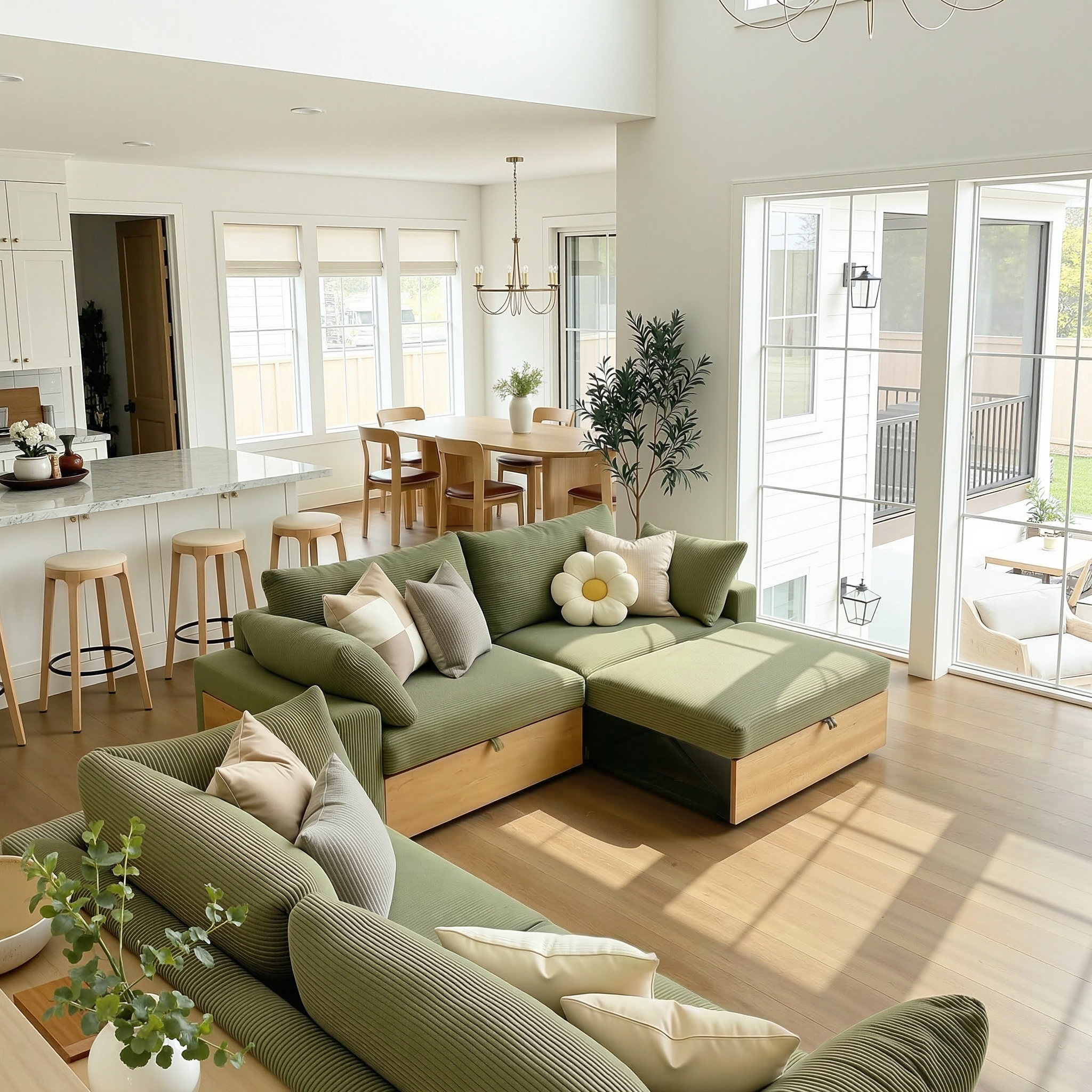 Pasha Modern Design Extension Sofa Bed-Off-White/Blackish Green-210CM/250CM