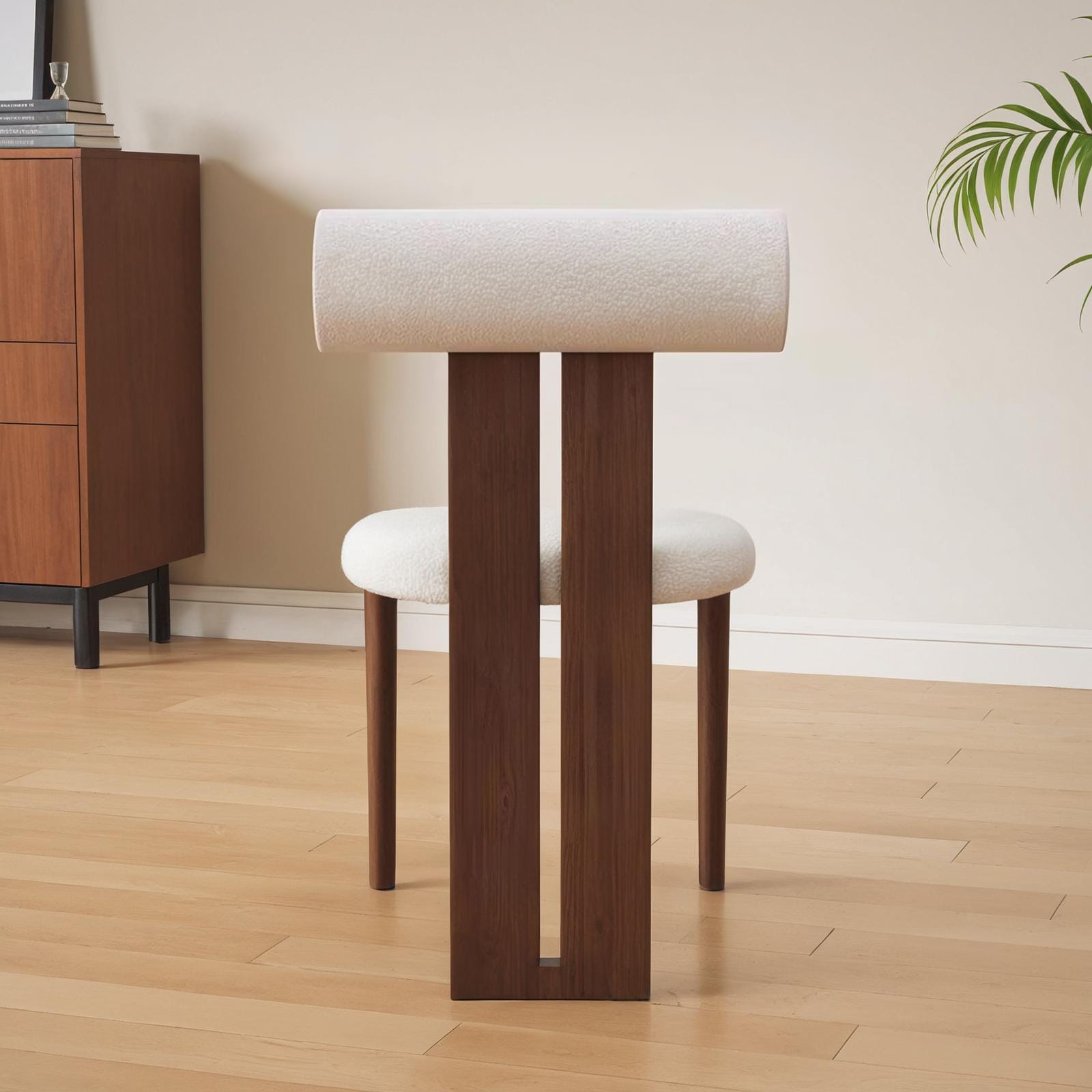 Bring sophistication, durability, and comfort to your dining area with the Penola Modern Wooden Dining Chair. Their durable construction, strong bearing capacity, stylish design, ergonomic backrest, boucle fabric upholstery, high-density foam padding, and solid wood frames make them a perfect choice for enjoying meals with family and friends.