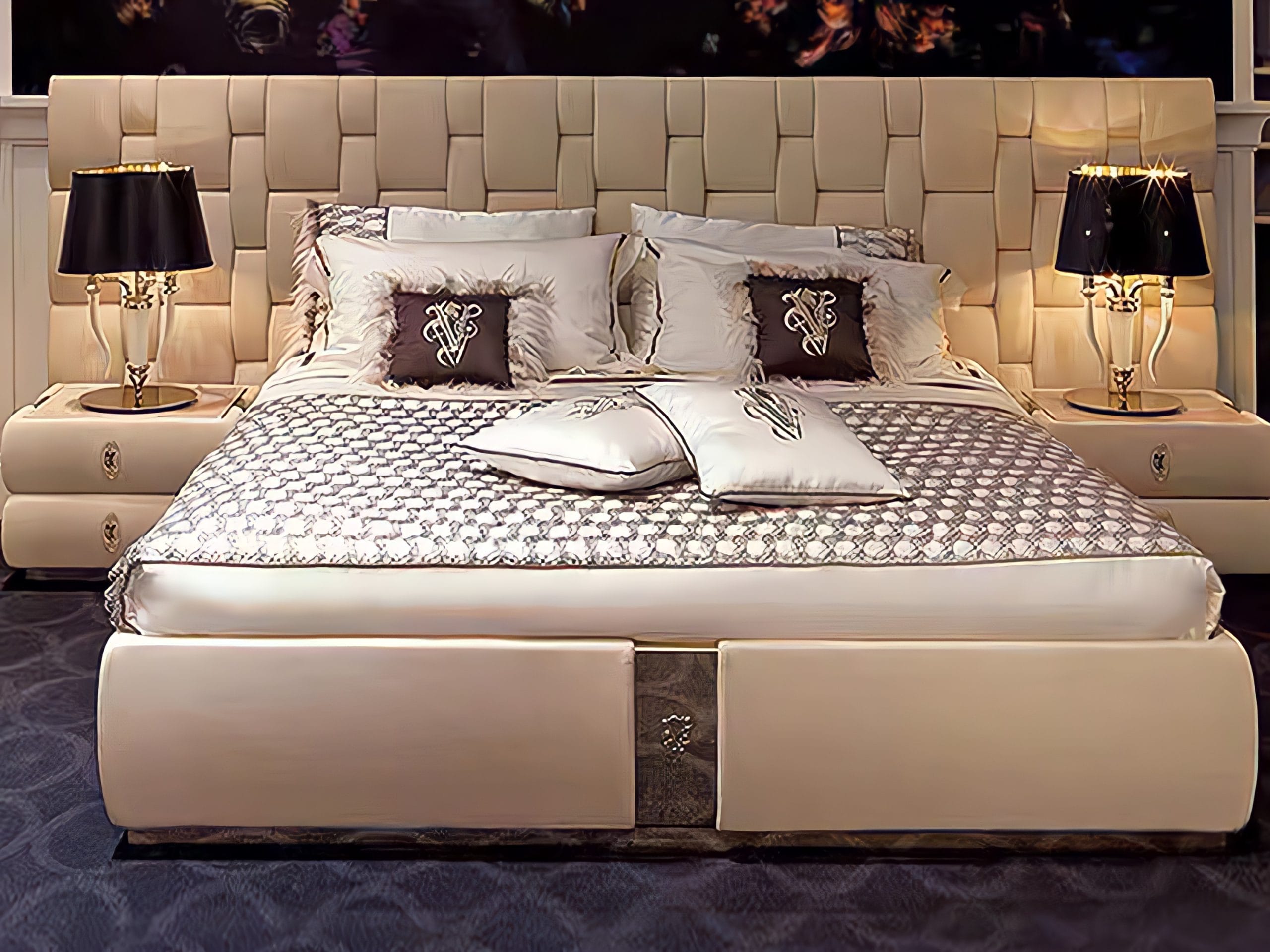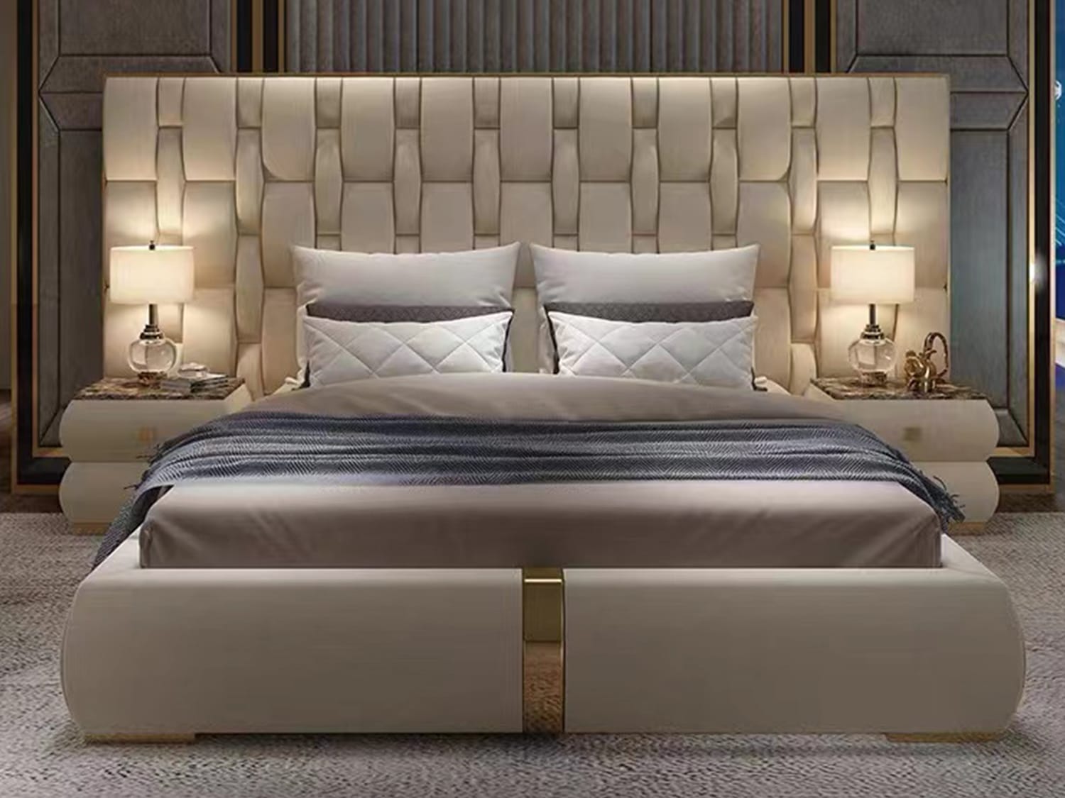 | Material | Top Genuine Leather Stainless Steel Bed Slats: Pinewood |