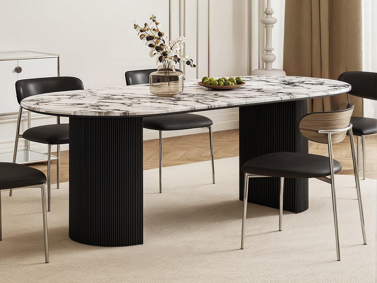The Perth Rock Baugeli Sintered Stone Dining Table brings a refined touch to any dining space. With clean lines and versatile sizes from 140-220cm, it fits both family meals and larger gatherings. The tabletop can be customized in pattern and shape to suit your style.