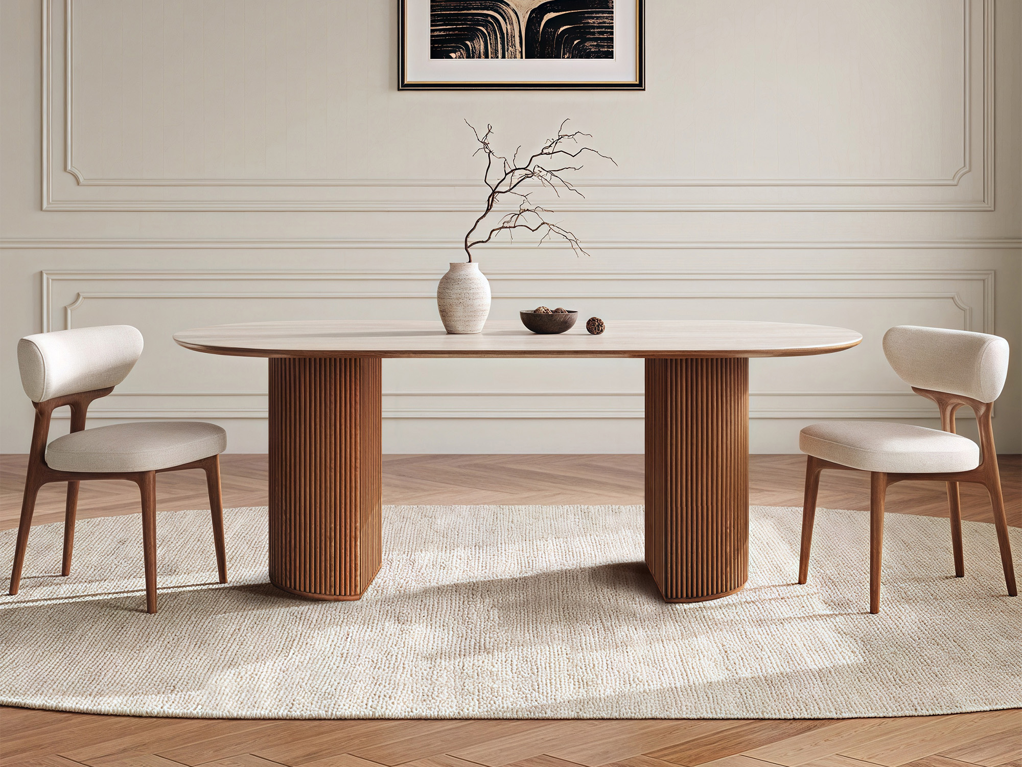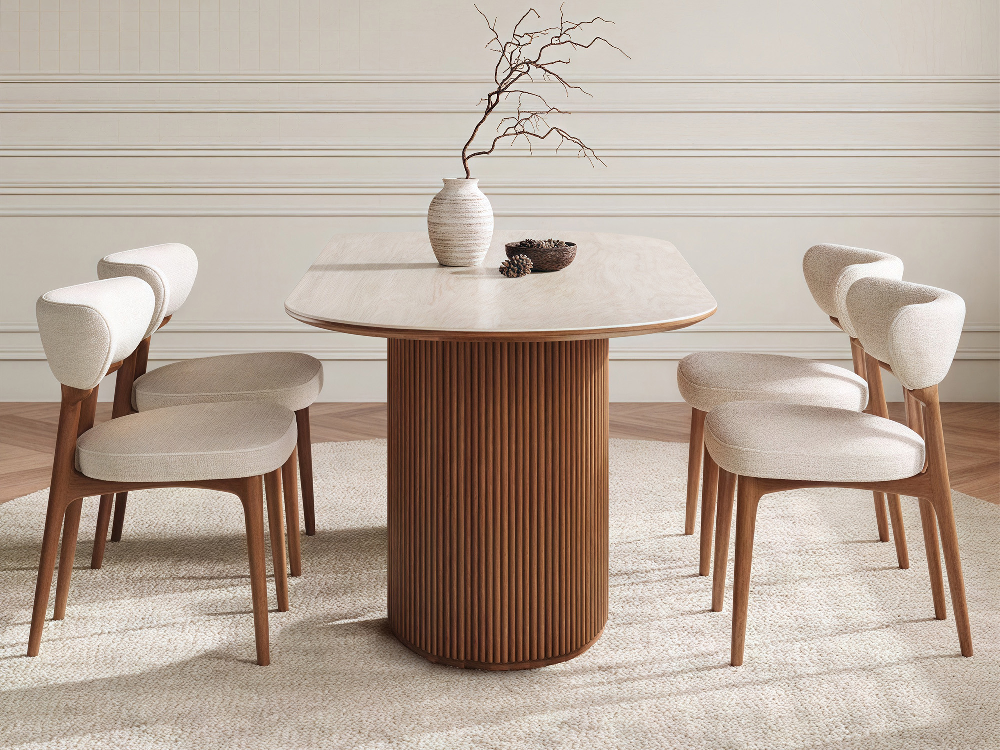 The Perth Rock Travertine Sintered Stone Dining Table brings a refined touch to any dining space. With clean lines and versatile sizes from 140-220cm, it fits both family meals and larger gatherings. The tabletop can be customized in pattern and shape to suit your style.