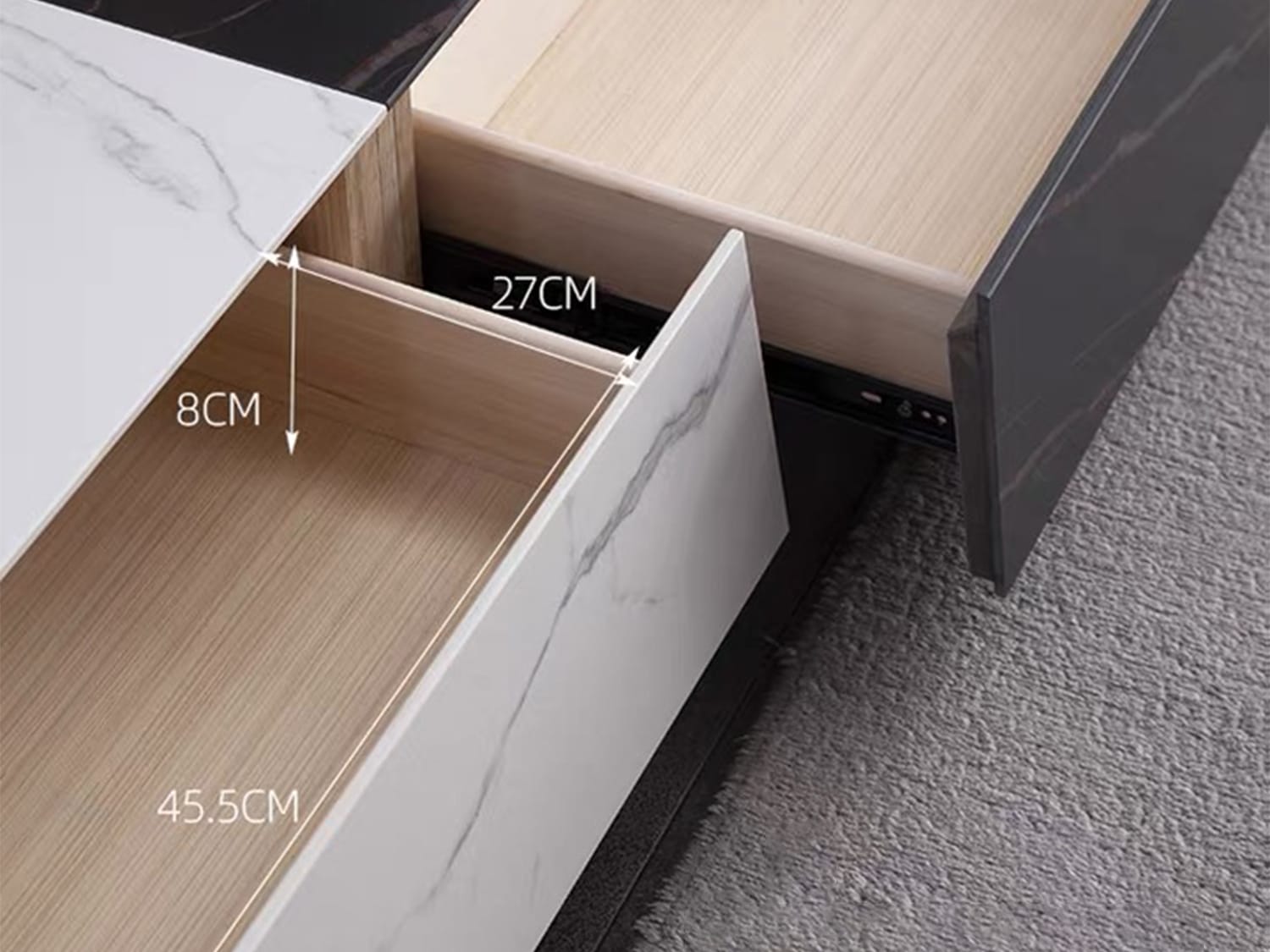 The Perth Storage Sintered Stone TV Unit in 200CM sizes showcases a unique design, storage drawer, high temperature resistance, water and oil-proof features, sintered stone surface, plywood construction, and solid wood elements. Enhance your entertainment area with this stylish, functional, and durable TV unit that combines aesthetics and practicality for an elevated living experience.