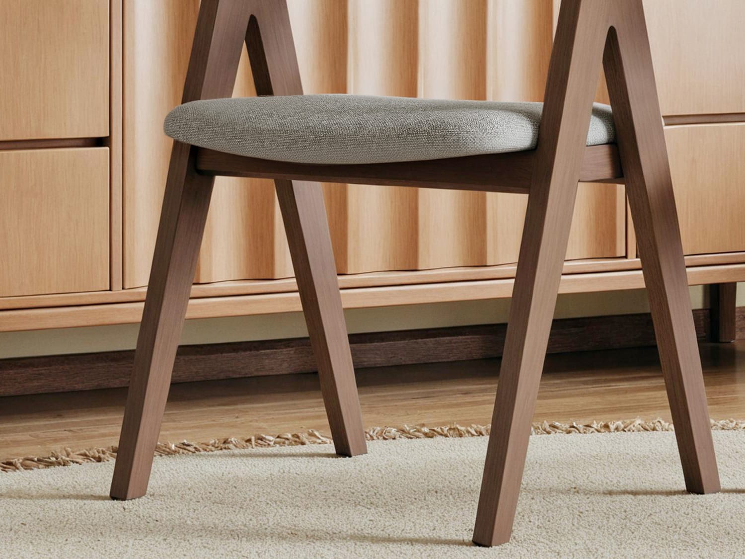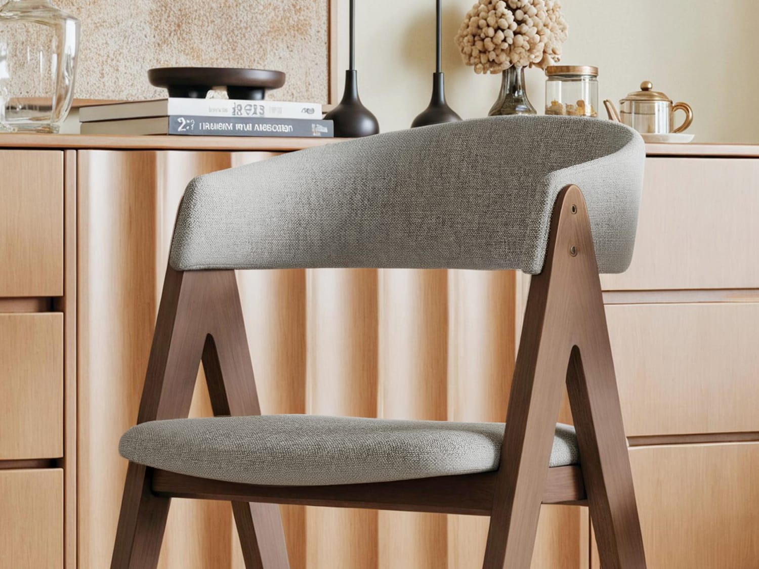 Pinon Modern Wooden Cotton and Linen Dining Chair-White/Grey/Blackish Green-Walnut