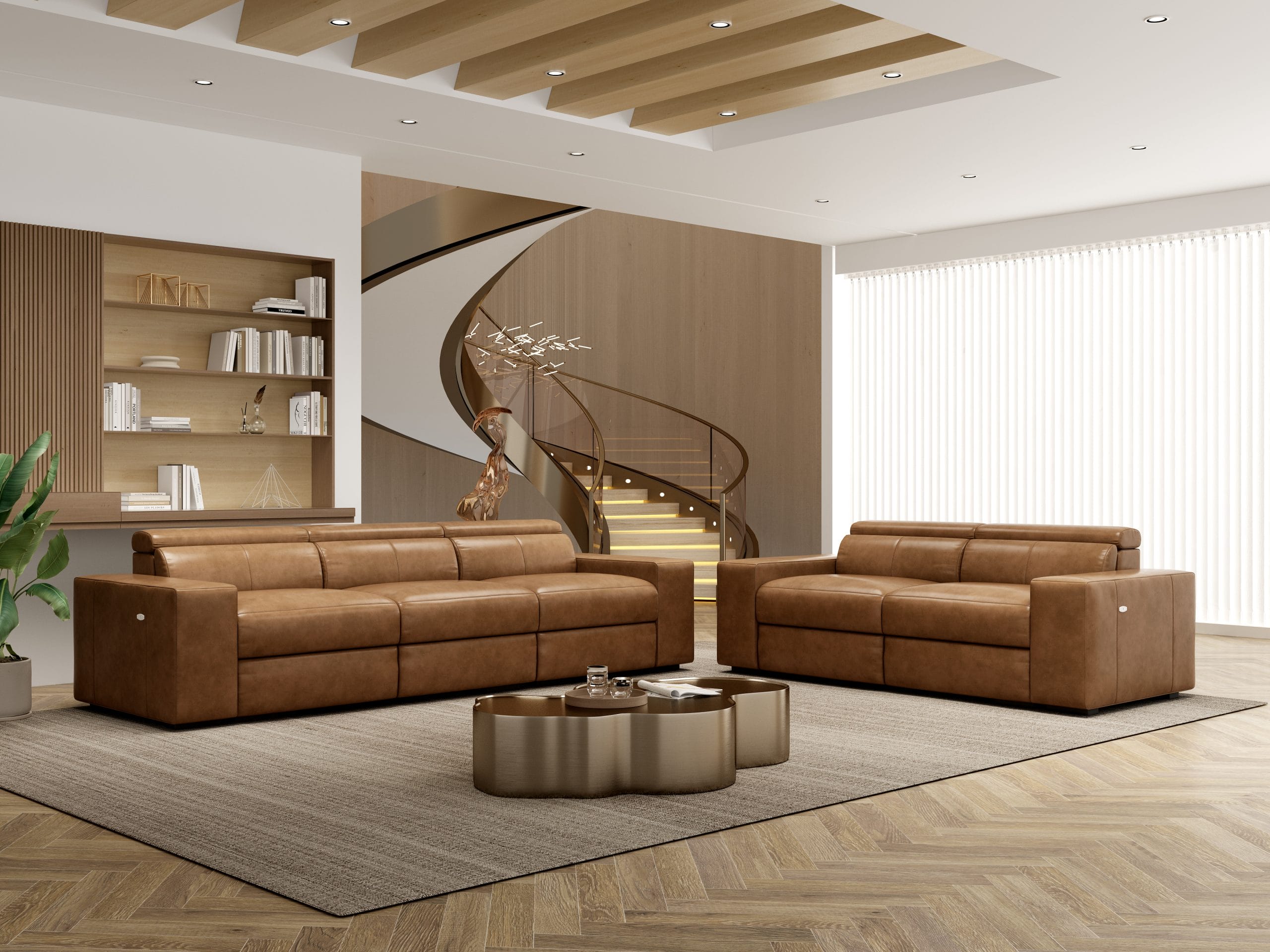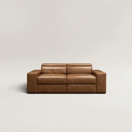 Piora Leather Modular Electric 2-Seater Recliners Lounge with USB chargers/Headrests/Footrests in Tan/Oatmeal/Black colour