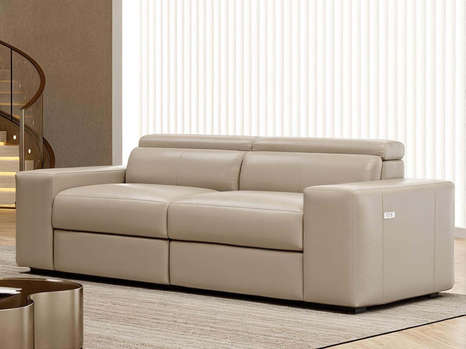 Piora Leather Modular Electric 2-Seater Recliners Lounge with USB chargers/Headrests/Footrests in Tan/Oatmeal/Black colour