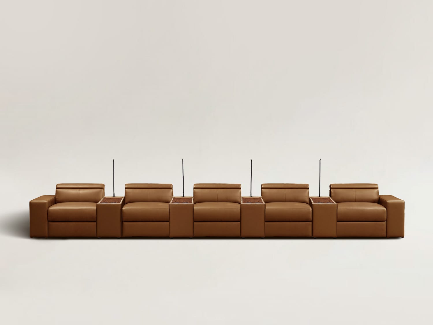 Piora Leather Modular Electric 5-Seater Recliners Lounge with USB chargers/Headrests/Footrests in Tan/Black/Oatmeal colour-With 4 Console