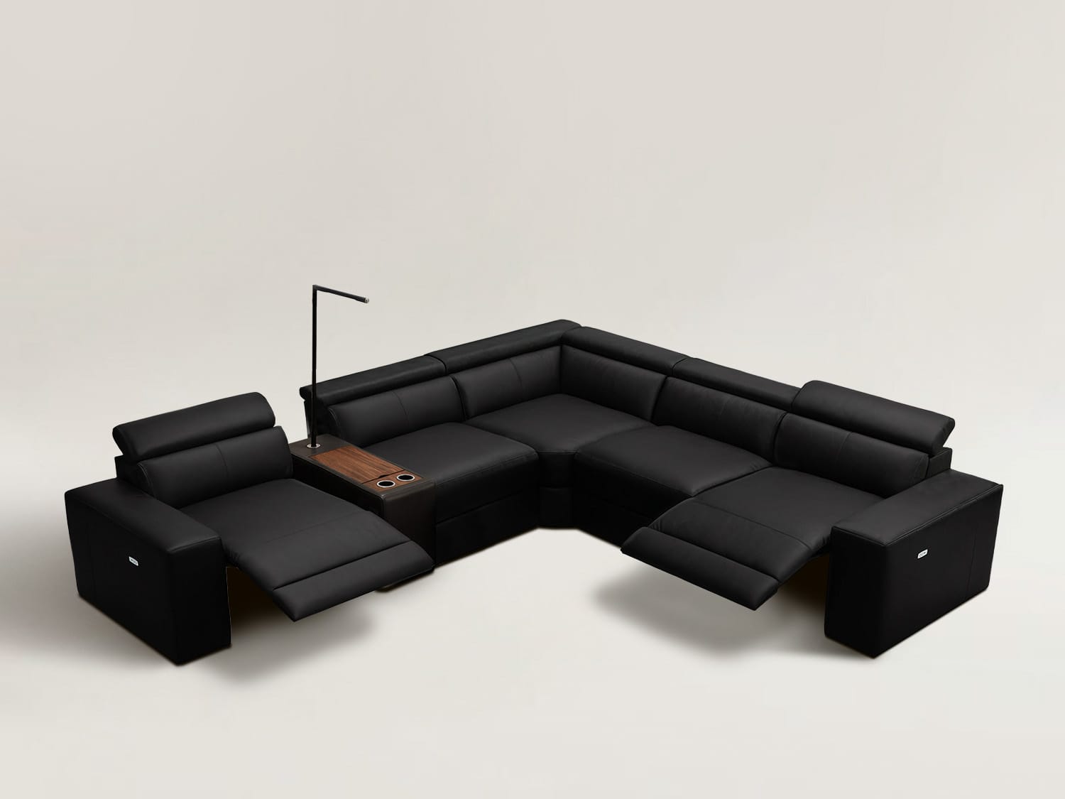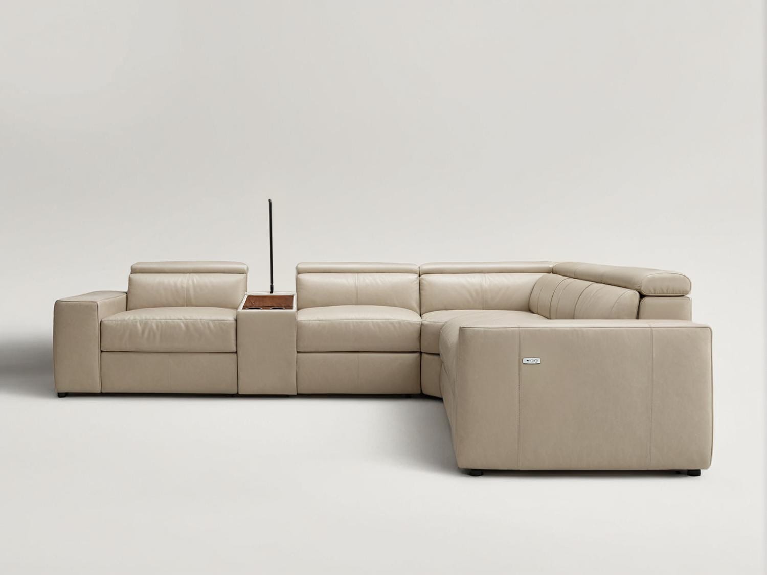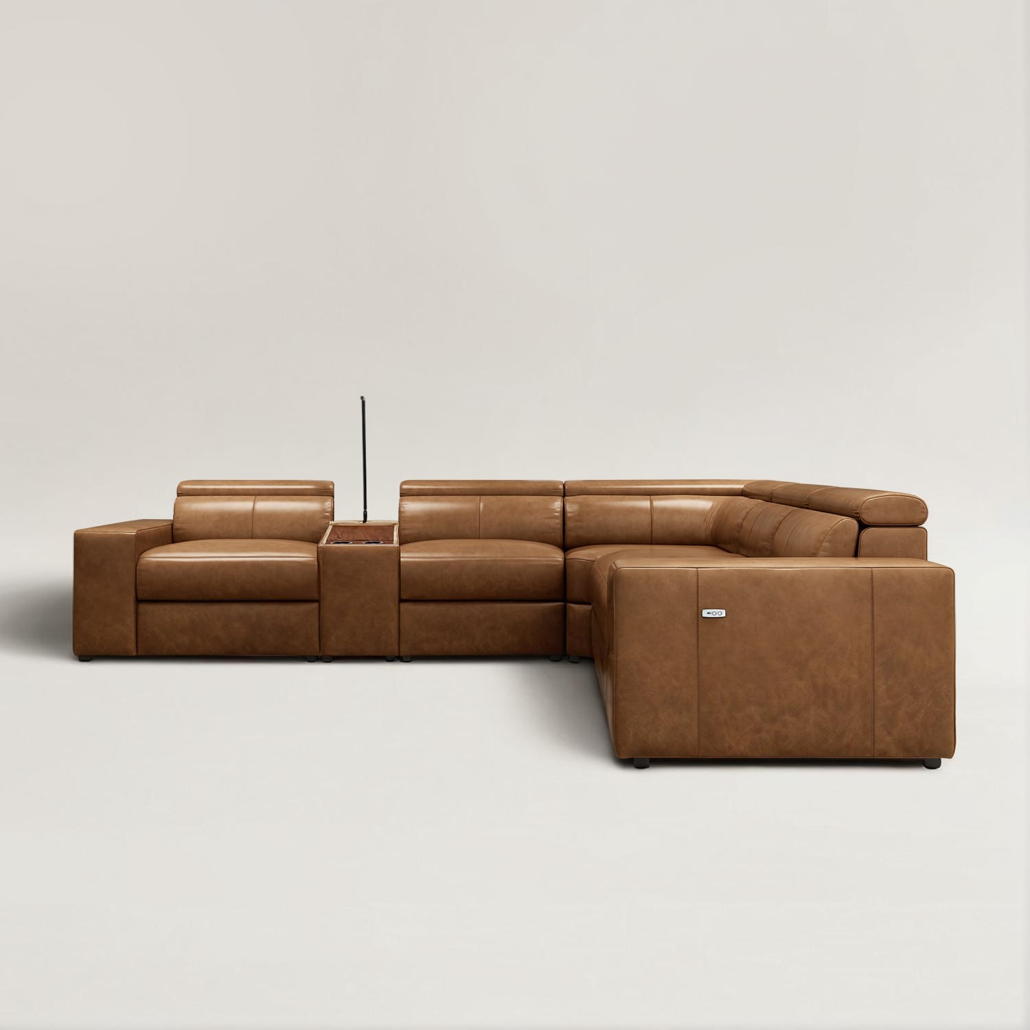 Piora Leather Modular Electric Recliners Lounge with USB chargers/Headrests/Footrests in Tan/Oatmeal/Black colour-With One Console