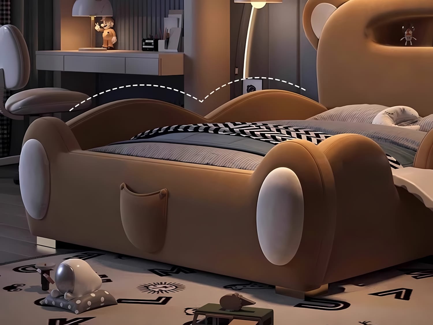 The Radium Modern Fence Style Kid’s Bed Frame combines safety, comfort, and style for your child’s bedroom. Designed with a cute and adorable look, it features a heightened fence for added safety. The bed is crafted with skin-friendly fabric and microfiber leather, ensuring a soft and comfortable touch. Its high rebound sponge and high-density foam provide optimal support, while the plywood, solid wood, and metal base slats guarantee durability.  It’s easy to set up and maintain. Ideal for modern homes, this bed frame offers a perfect blend of functionality, safety, and charm for your little one.