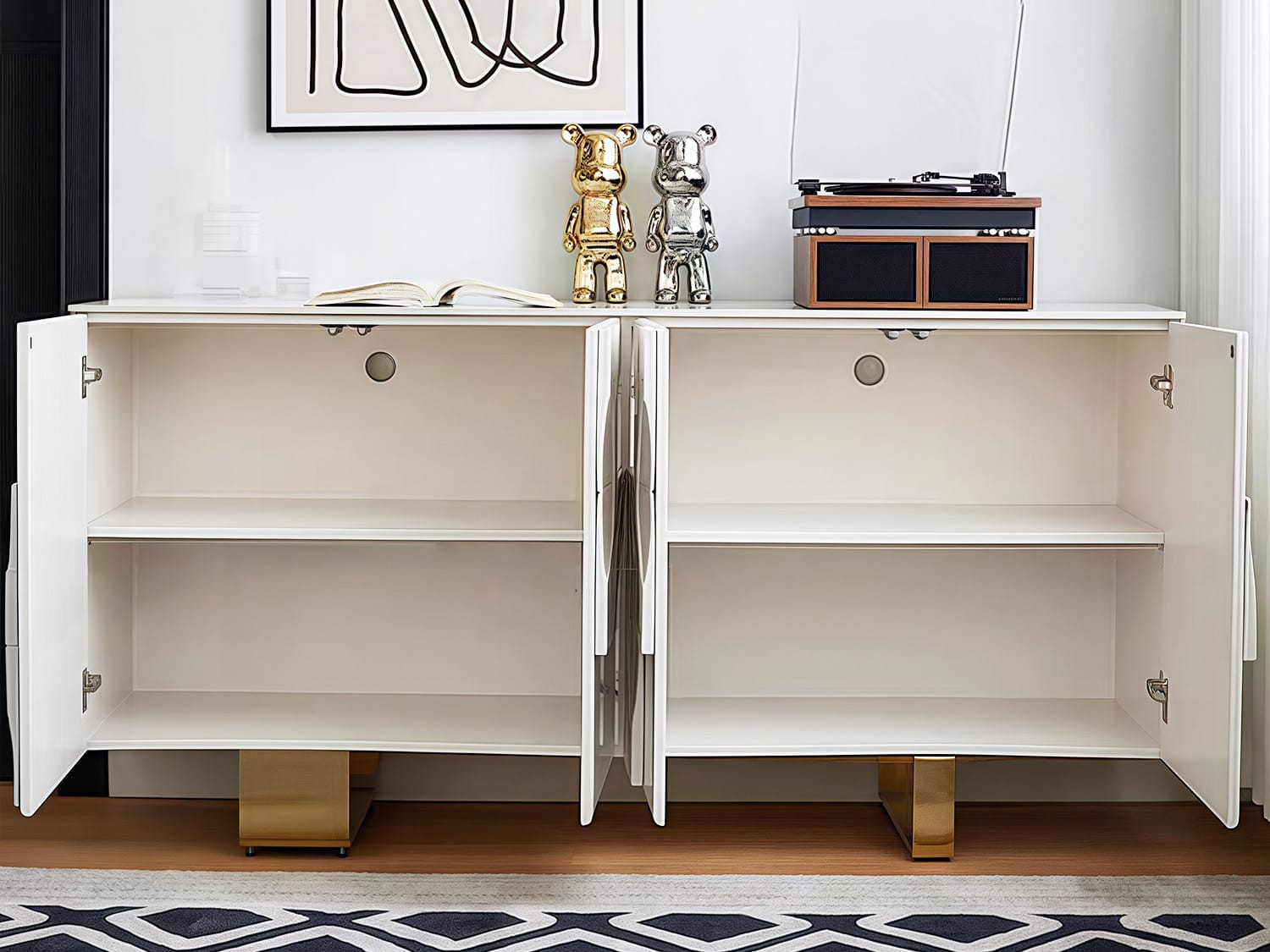 Richmond Modern Storage Cabinet/Buffet redefines functional elegance with its clean-lined silhouette and generous storage capacity. The minimalist hardware create a sophisticated presence in any dining room or living space. Behind its streamlined doors lies ample room for tableware, linens, or media essentials, combining practicality with contemporary style. Thoughtful details like integrated cable management and adjustable shelving elevate everyday living. A versatile centerpiece that effortlessly balances form and function for the modern home.