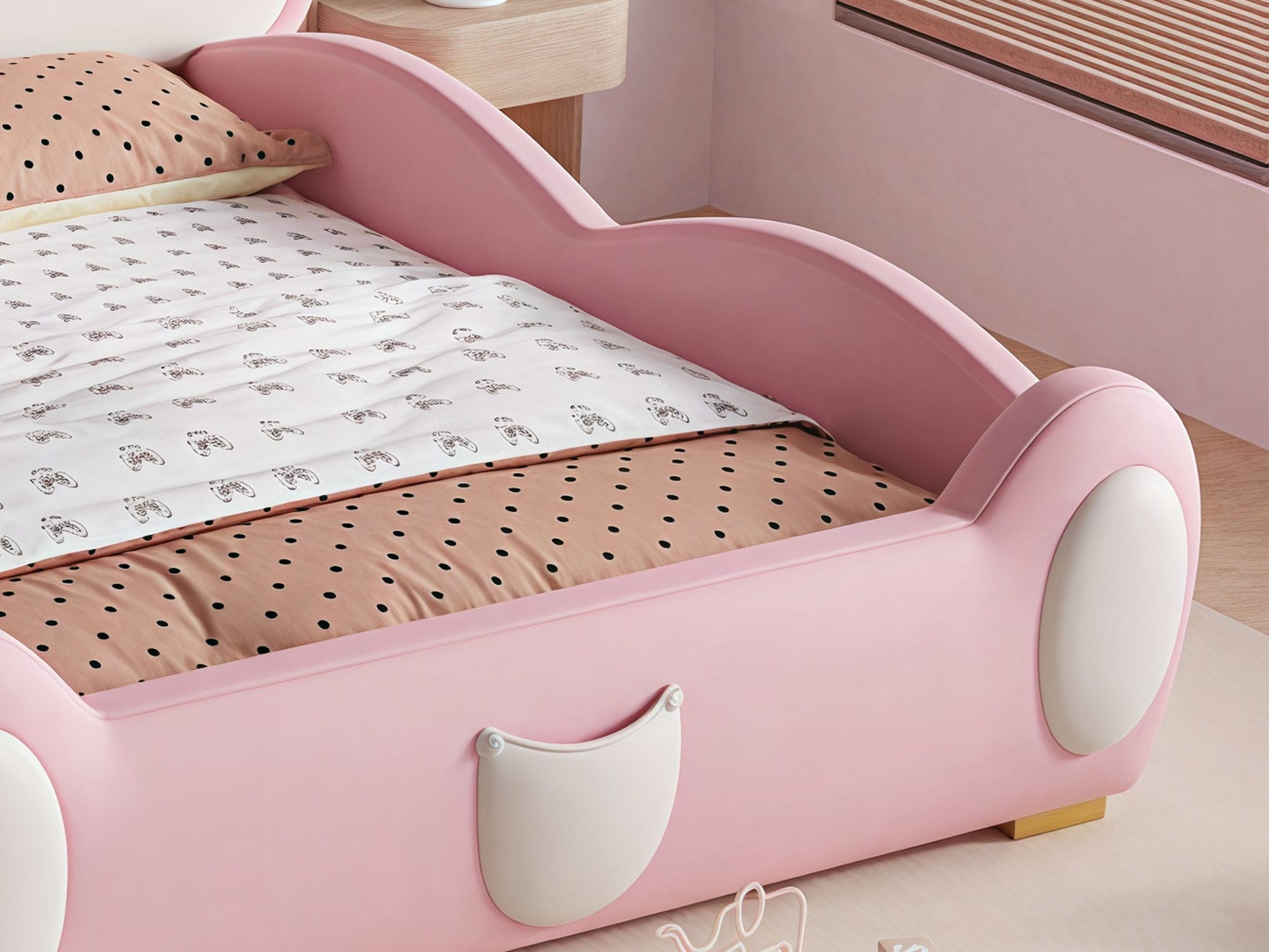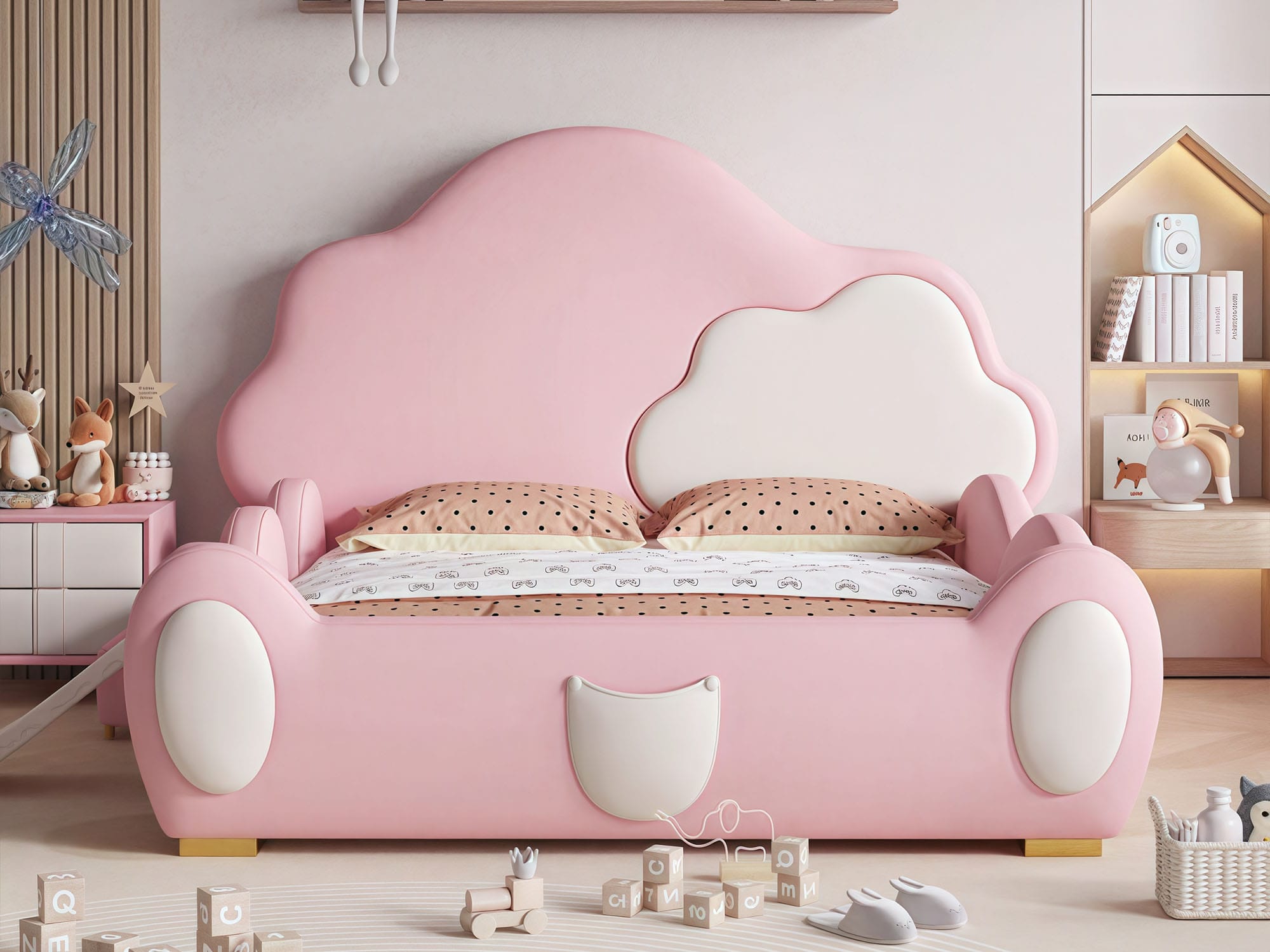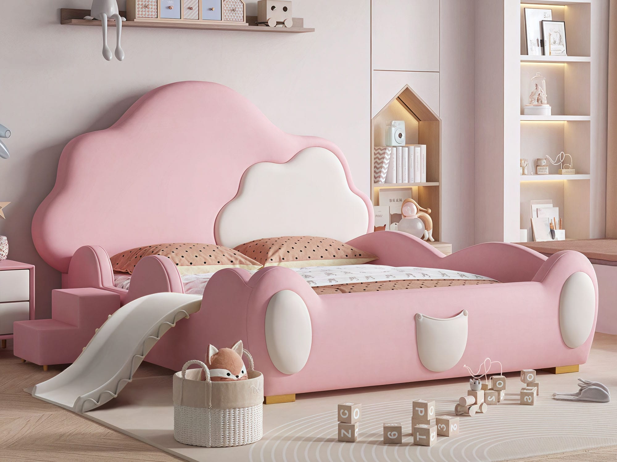 The Rockport Cotton Modern Fence Style Kid’s Bed Frame is a stylish and secure choice for your child’s bedroom. Featuring a creative cartoon design and interesting styling, it adds a playful and modern aesthetic to any space. Designed with round safety corners and a safety bedside rail, it ensures a safe sleeping environment for little ones. Crafted from durable microfiber leather and high-density foam, it offers both comfort and long-lasting quality. Customize the bed with optional removable slides or removable stairs for added fun and convenience. Perfect for modern kids’ rooms, this bed frame combines safety, creativity, and practicality in one charming package.
