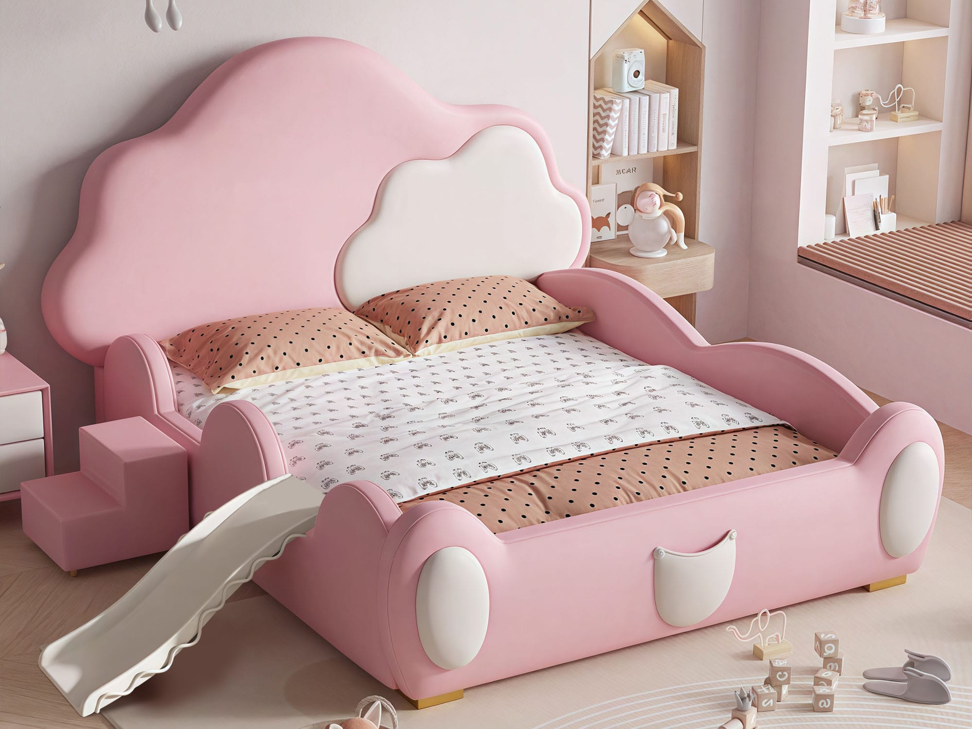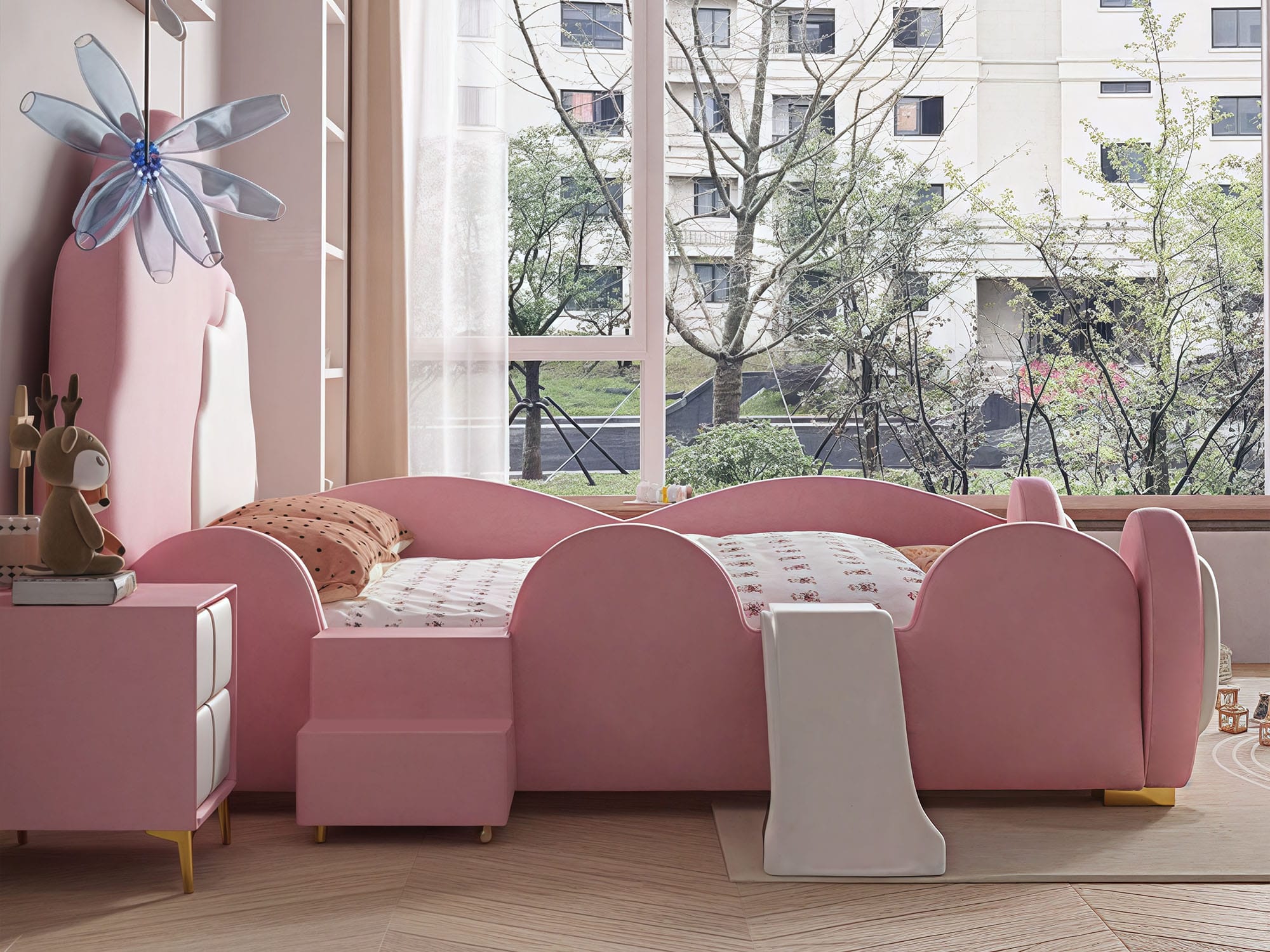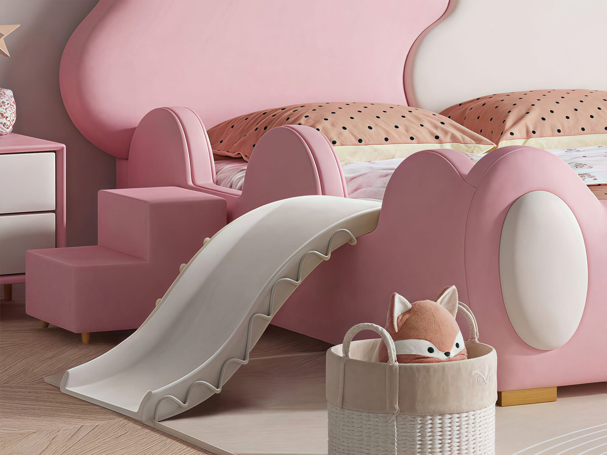 | Feature | Round Safety Corner Interesting styling Creative cartoon design With/Without Removable Slide With/Without Removable Stairs Safety Bedside Rail |