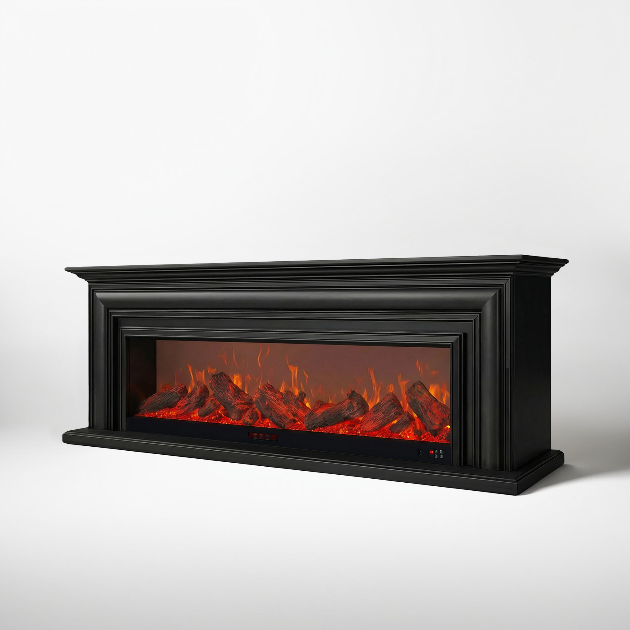 Saturnia Decorative/Electric Heater Fireplace with LED Optical Artificial Flame-Black-200CM