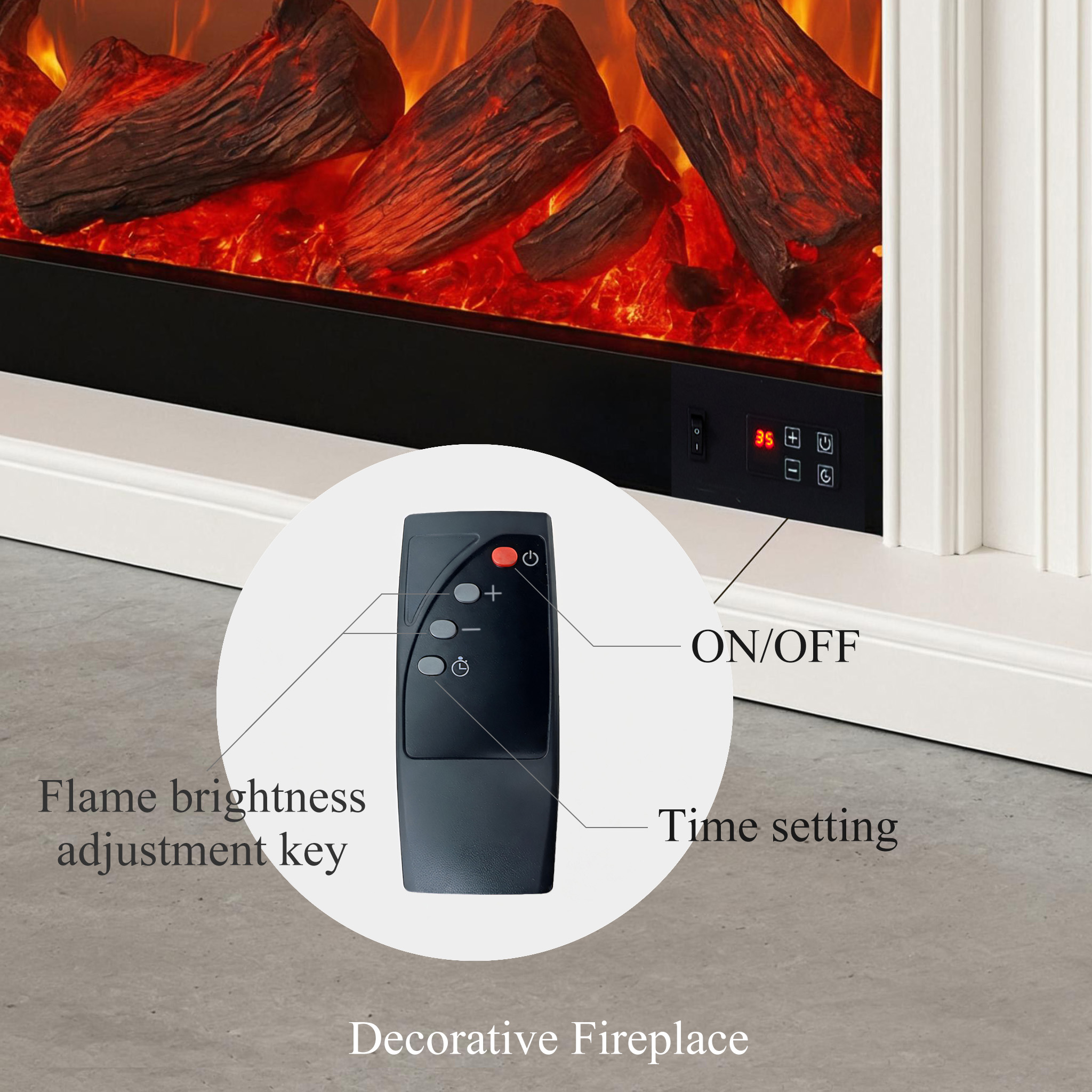 | Function Description | Decorative Fireplace: 12W Electric Heater Fireplace: 1500W ✓Both Decorative and Electric Heater Fireplace options are available ✓With LED lights to create a more realistic flame effect, this fireplace will provide hours of relaxation ✓High-quality wood which is durable and last-longer ✓Remote Control An electric fireplace provides both heating and visual effects with independent controls, while a decorative fireplace is for visual purposes only and does not have the heating function. |