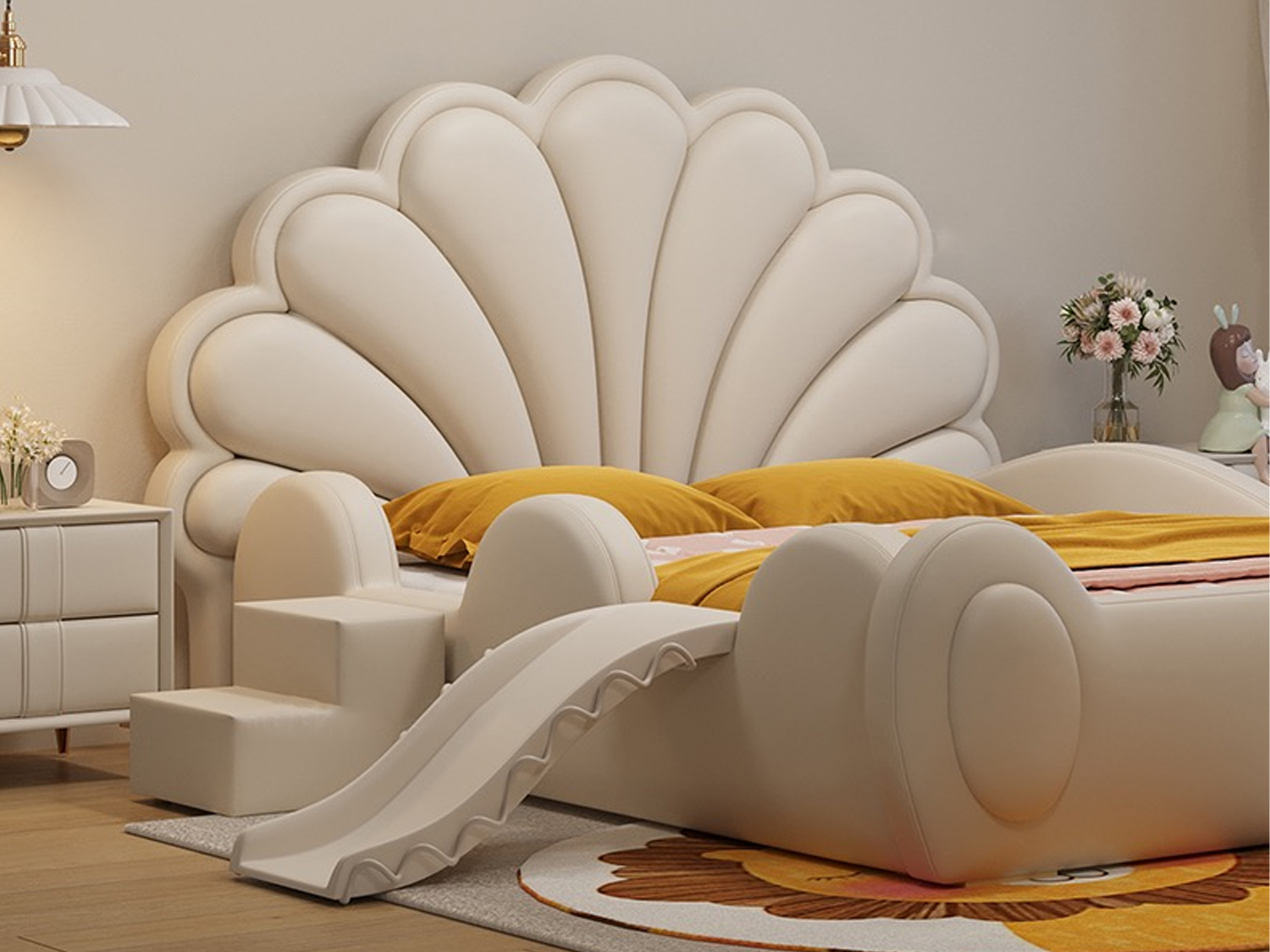 The Scone Kid’s Bed Frame is a creative, safe, and practical bed frame that offers a fun and comfortable sleeping experience for your child. Its features include a round safety corner, stable construction, a creative cartoon design, removable stairs and slide, safety bedside rail, Napa air leather upholstery, high-density foam, and a metal, solid wood, and plywood frame. Create a joyful and safe space for your child with the Scone Kid’s Bed Frame with Removable Slide&Stairs.