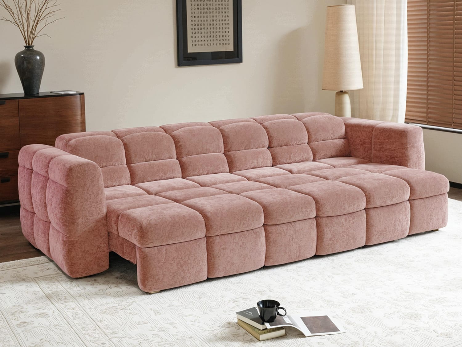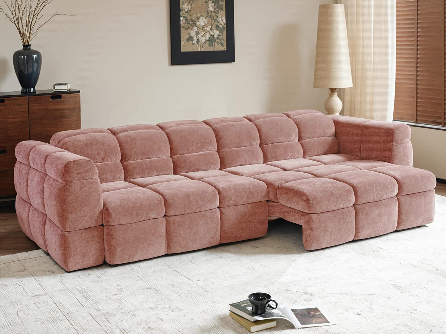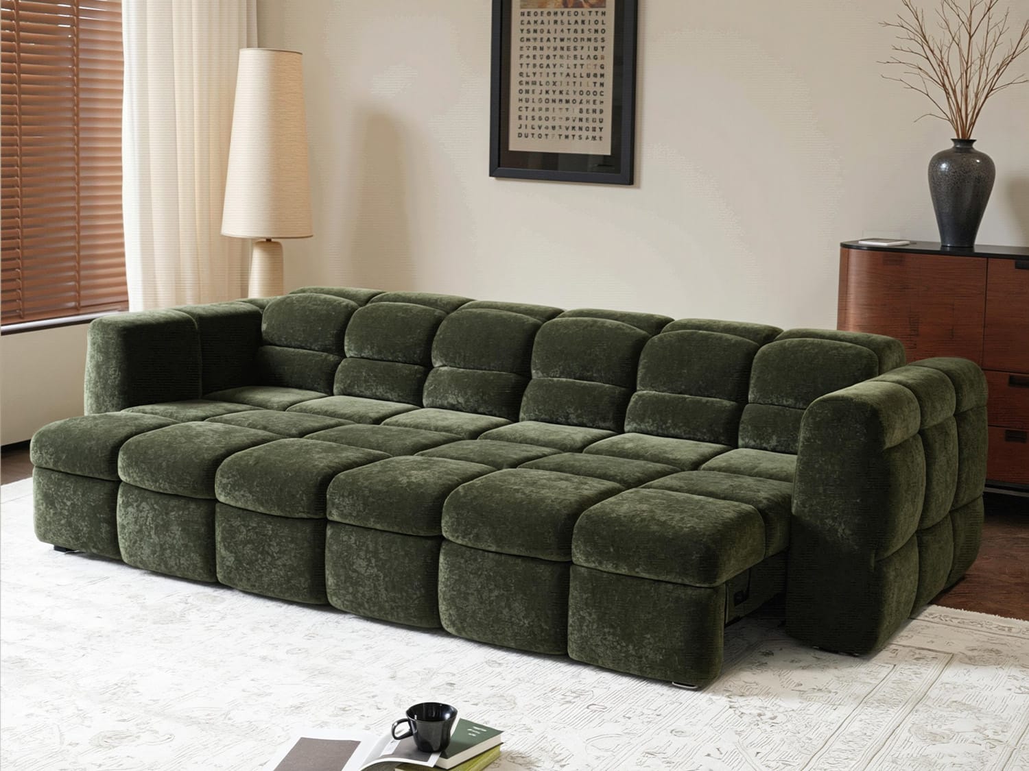[Smart App Control]Crain Electric Chenille Sofa Bed with Adjustable Headrests-240CM/294CM-Blackish Green/Antique Rose