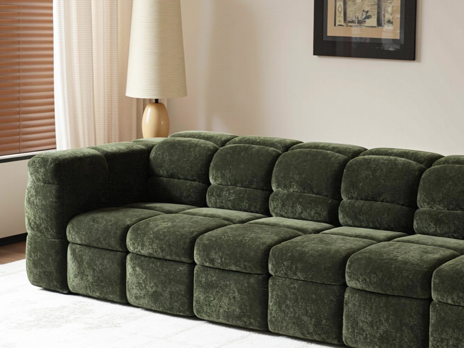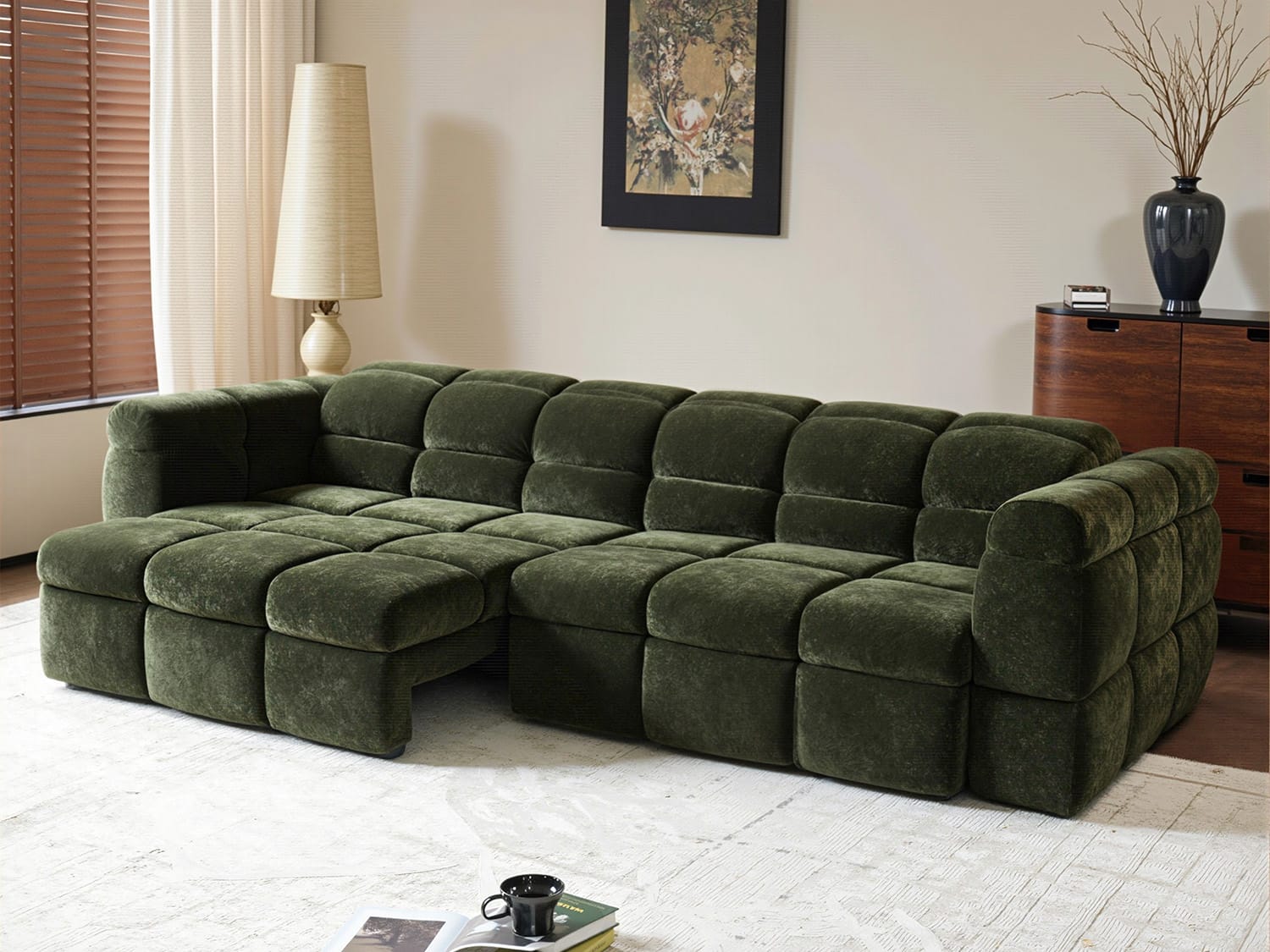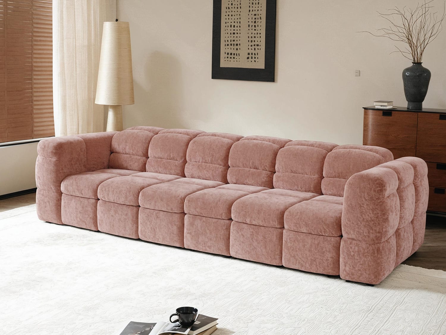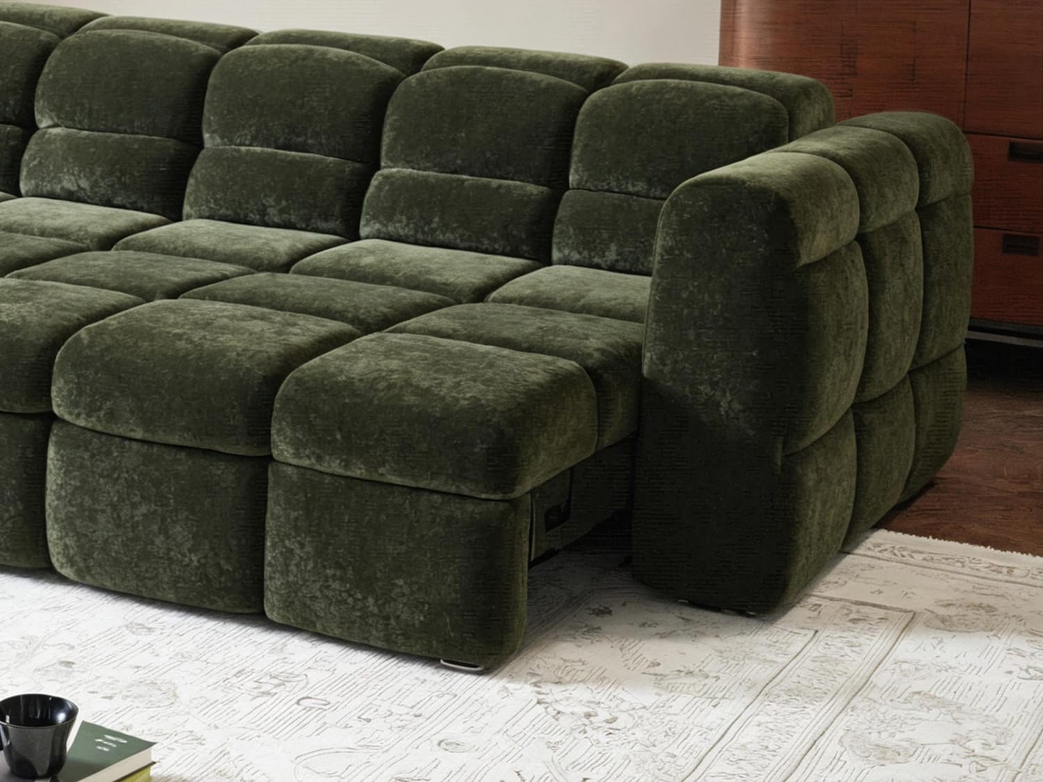 [Smart App Control]Crain Electric Chenille Sofa Bed with Adjustable Headrests-240CM/294CM-Blackish Green/Antique Rose