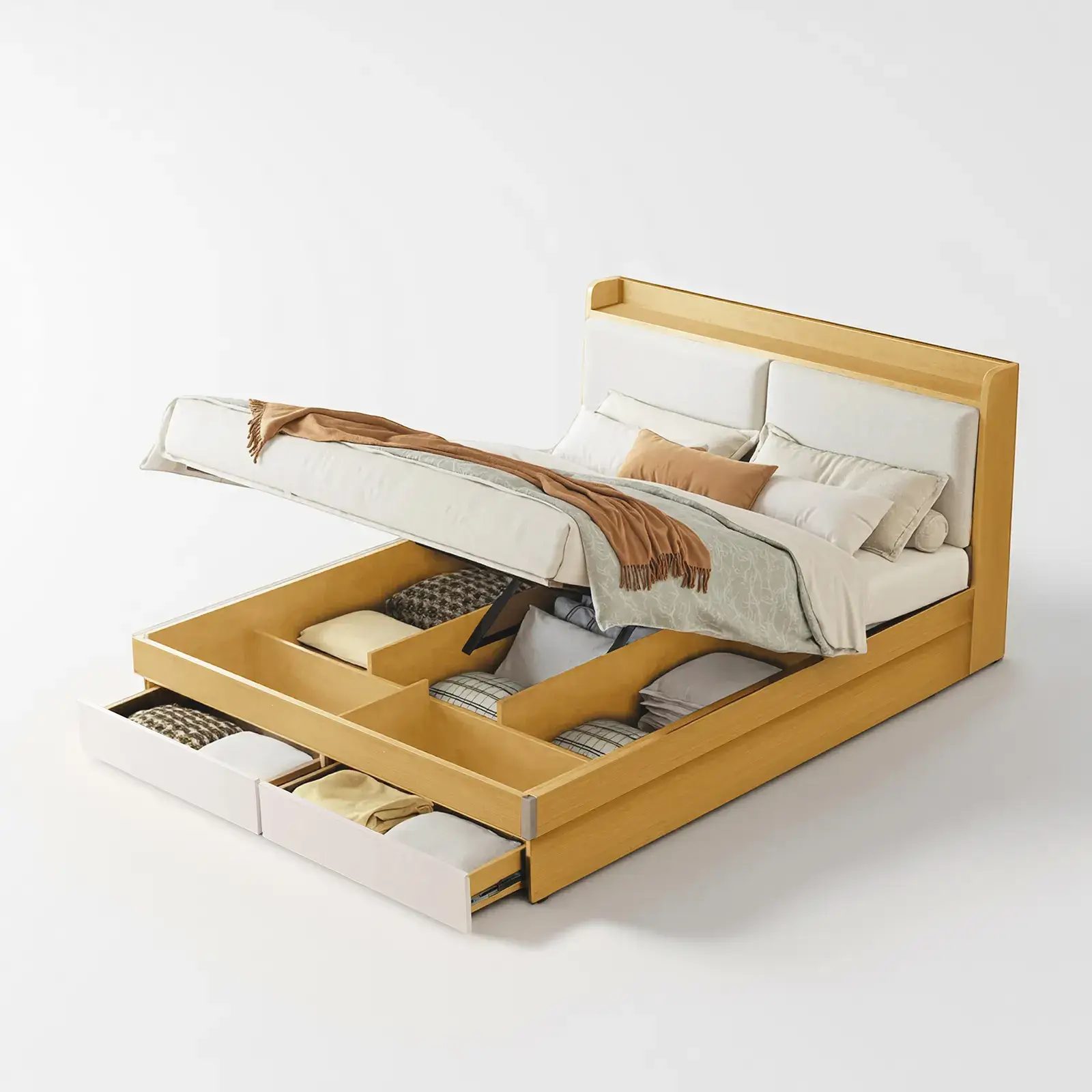 | Feature | Modern style Hide storage space With double USB charging Front Storage drawer Gas- lifting bed frame |