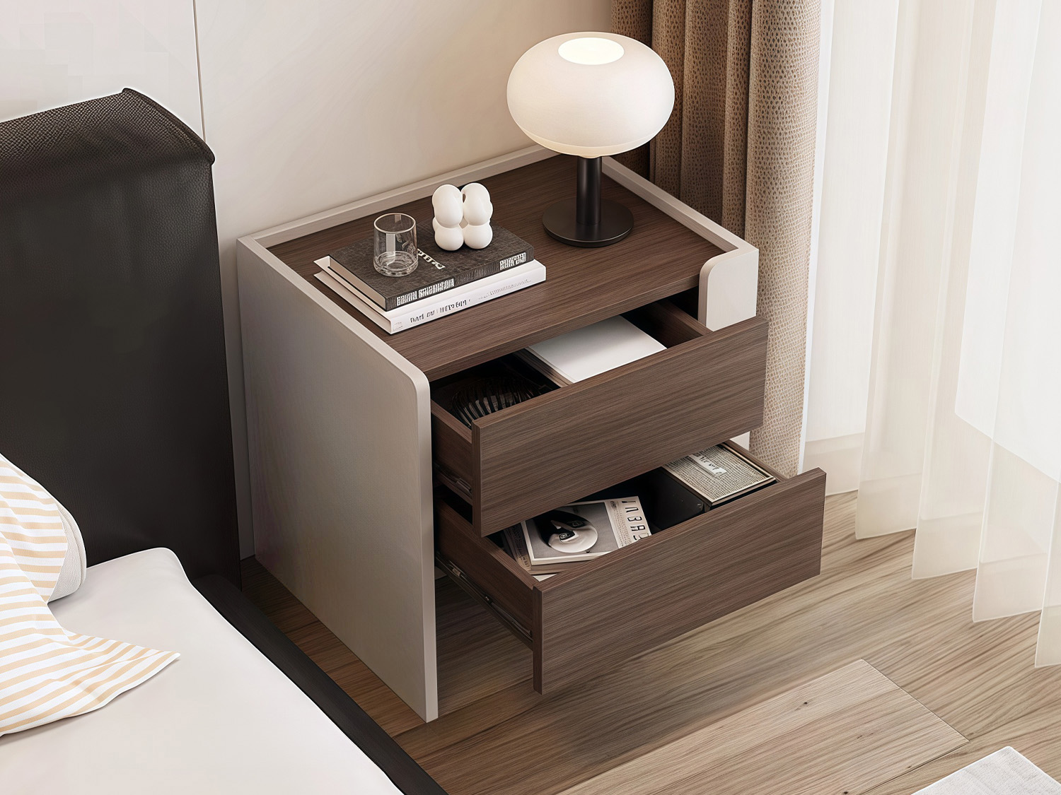 | Feature | Italian minimalist style Hidden handle Storage drawer Silent glide rail Drop proof top design |
