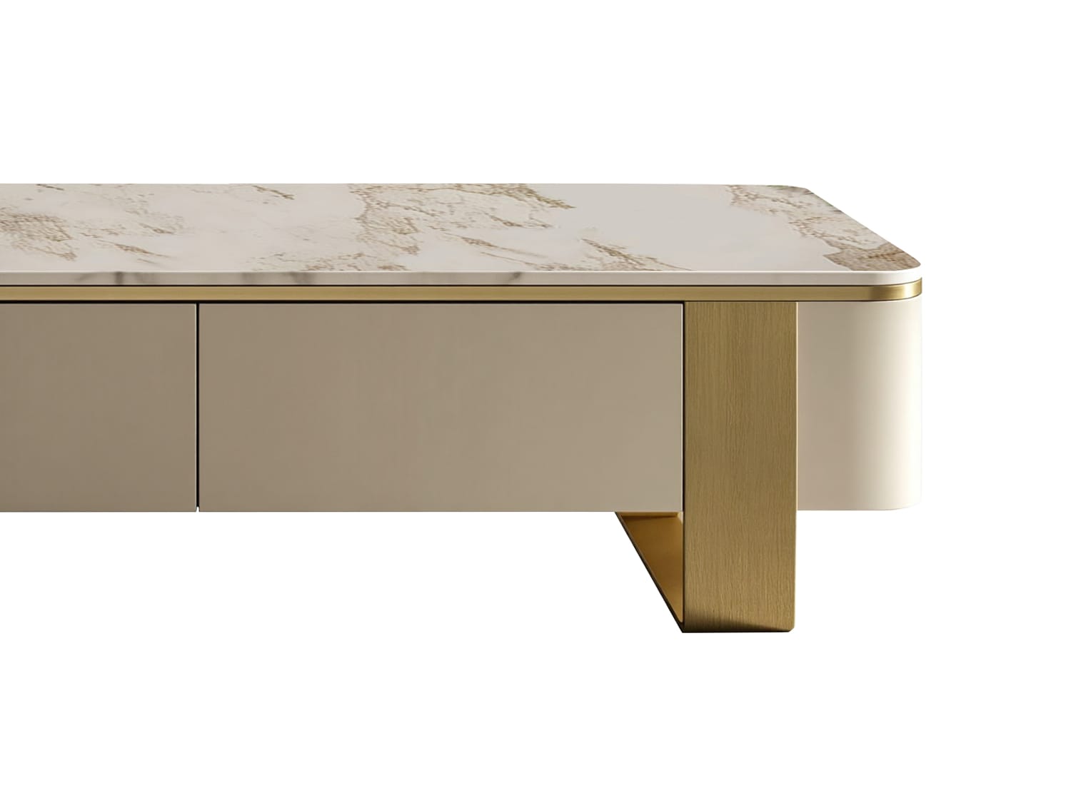 Tarana Modern Sintered Stone Coffee Table With Drawer-Gold