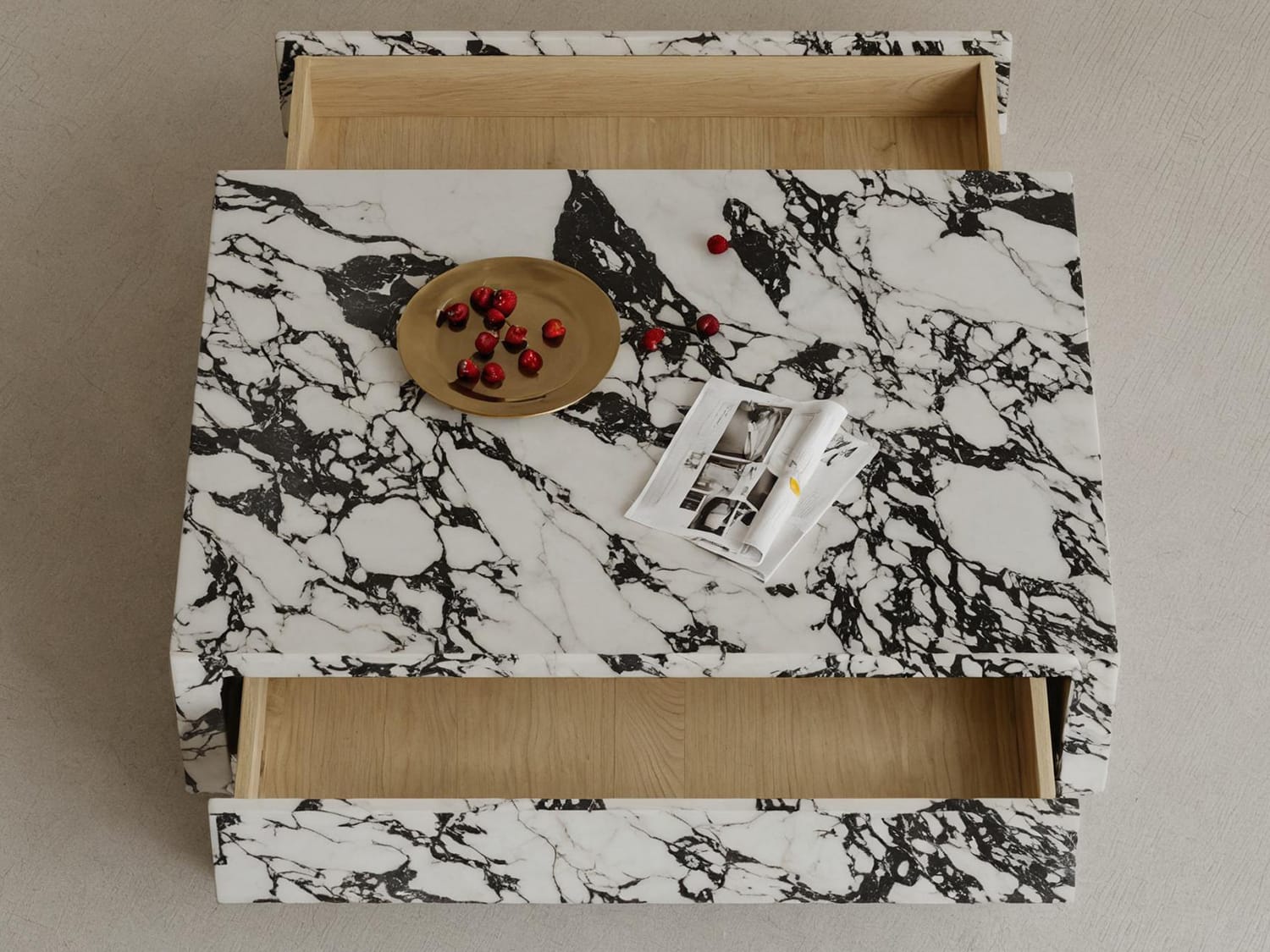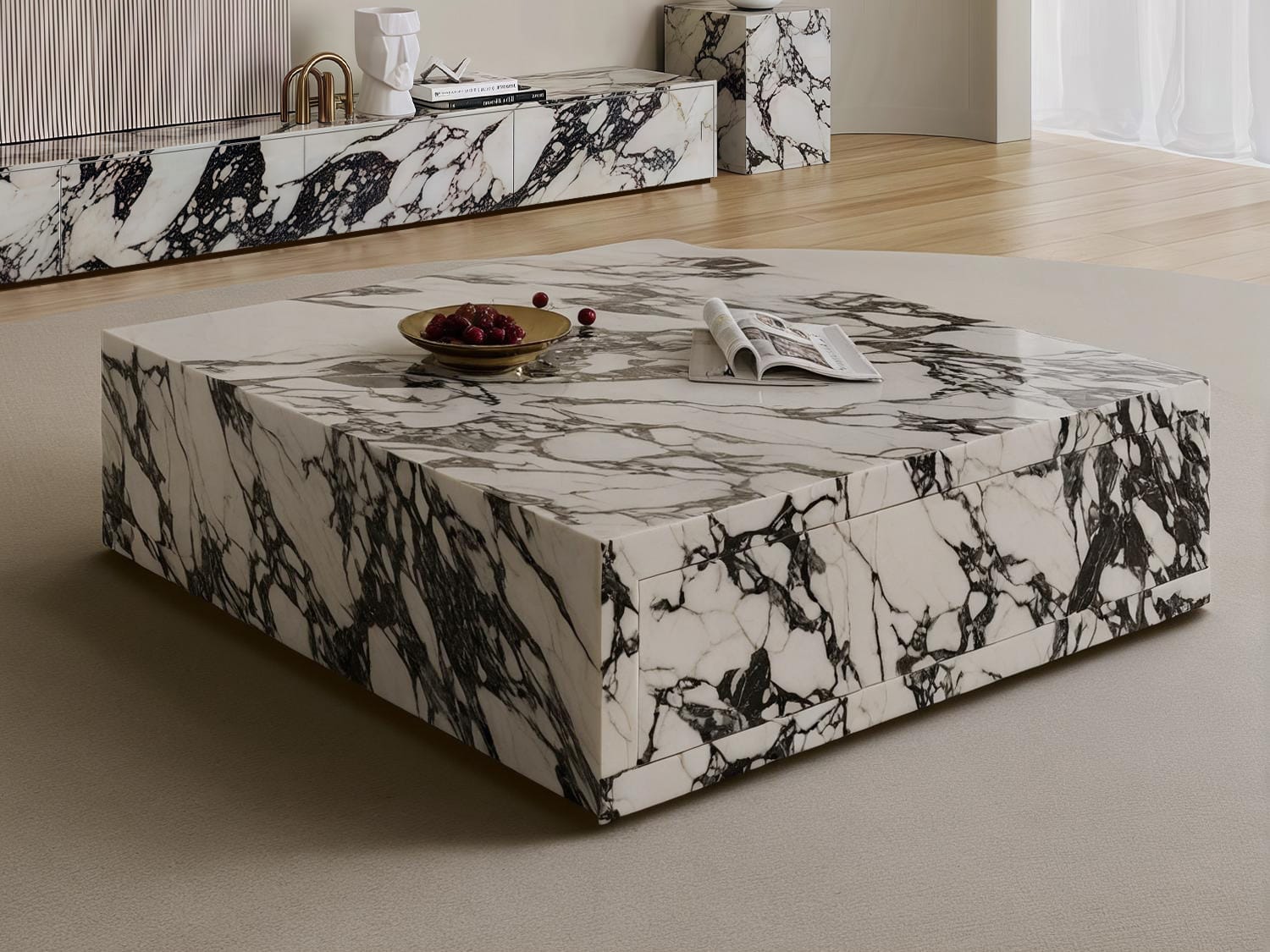 The Texas Storage Sintered Stone Coffee Table in 80CM, 90CM, and 100CM sizes showcases a unique design, storage drawer, high-temperature resistance, water and oil-proof features, sintered stone surface, plywood + MDF construction, and solid wood elements. Elevate your living space with this elegant, functional, and durable coffee table that seamlessly combines style and convenience for an enriched home environment.