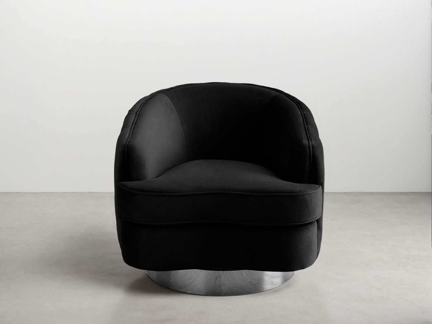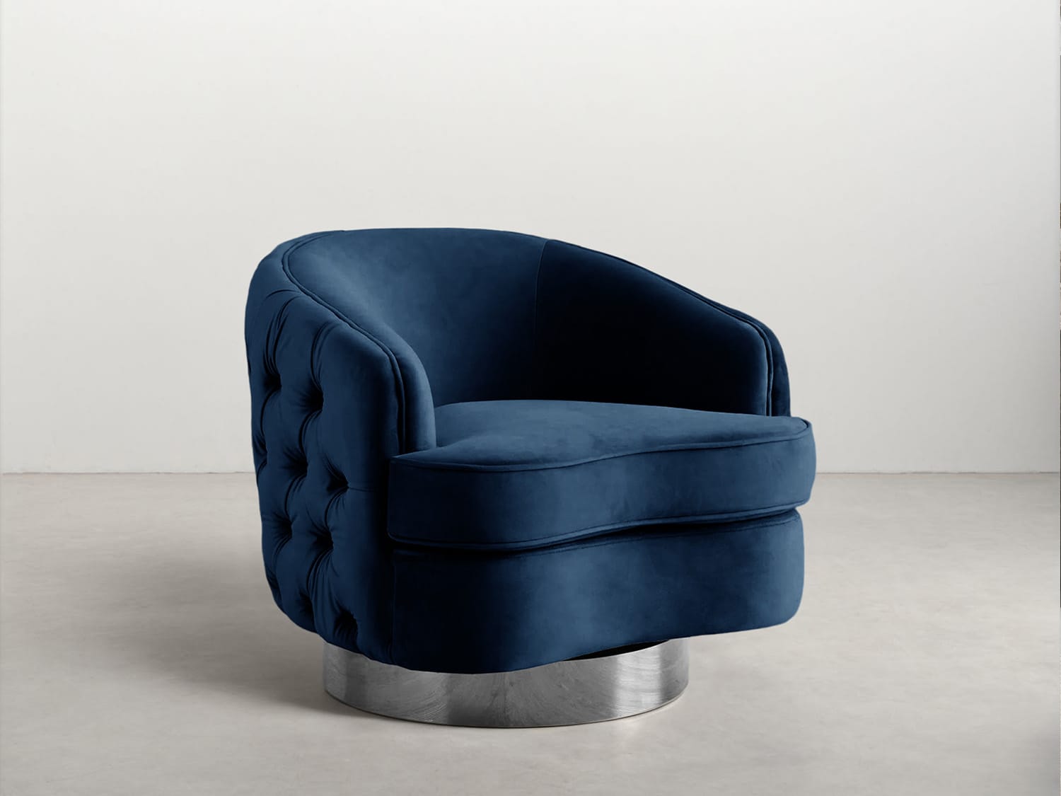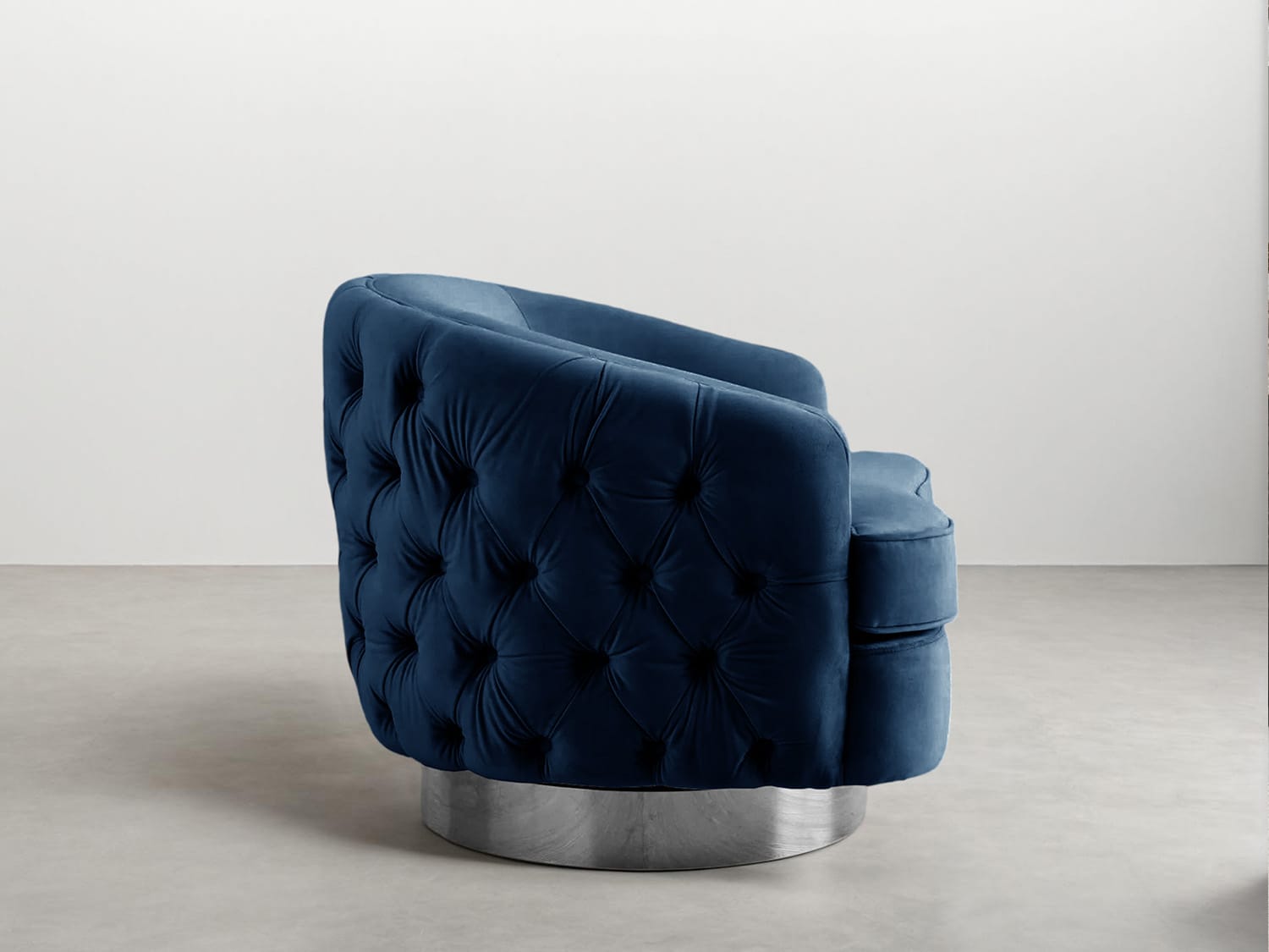 Tibooburra Velvet Swivel Armchair-Black/Sapphire Blue/Silver Grey