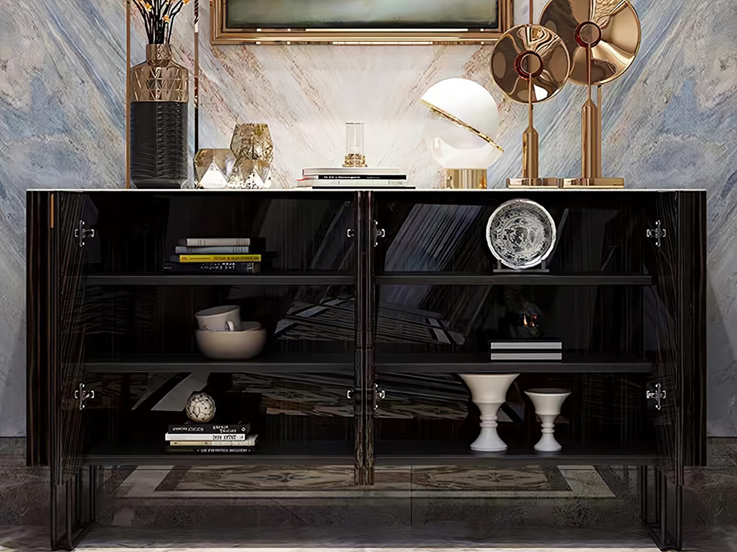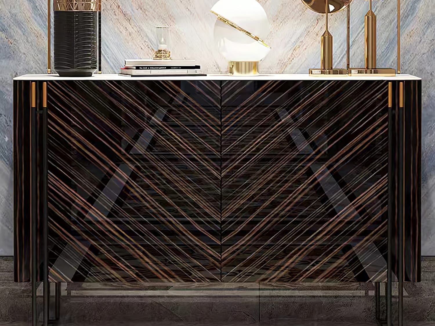 The Toronto Cabinet adopts “V”-shaped partition lines and carvings, forming deep and light shadows under the light, which is extremely luxurious and simple, bringing you a different and graceful visual enjoyment.