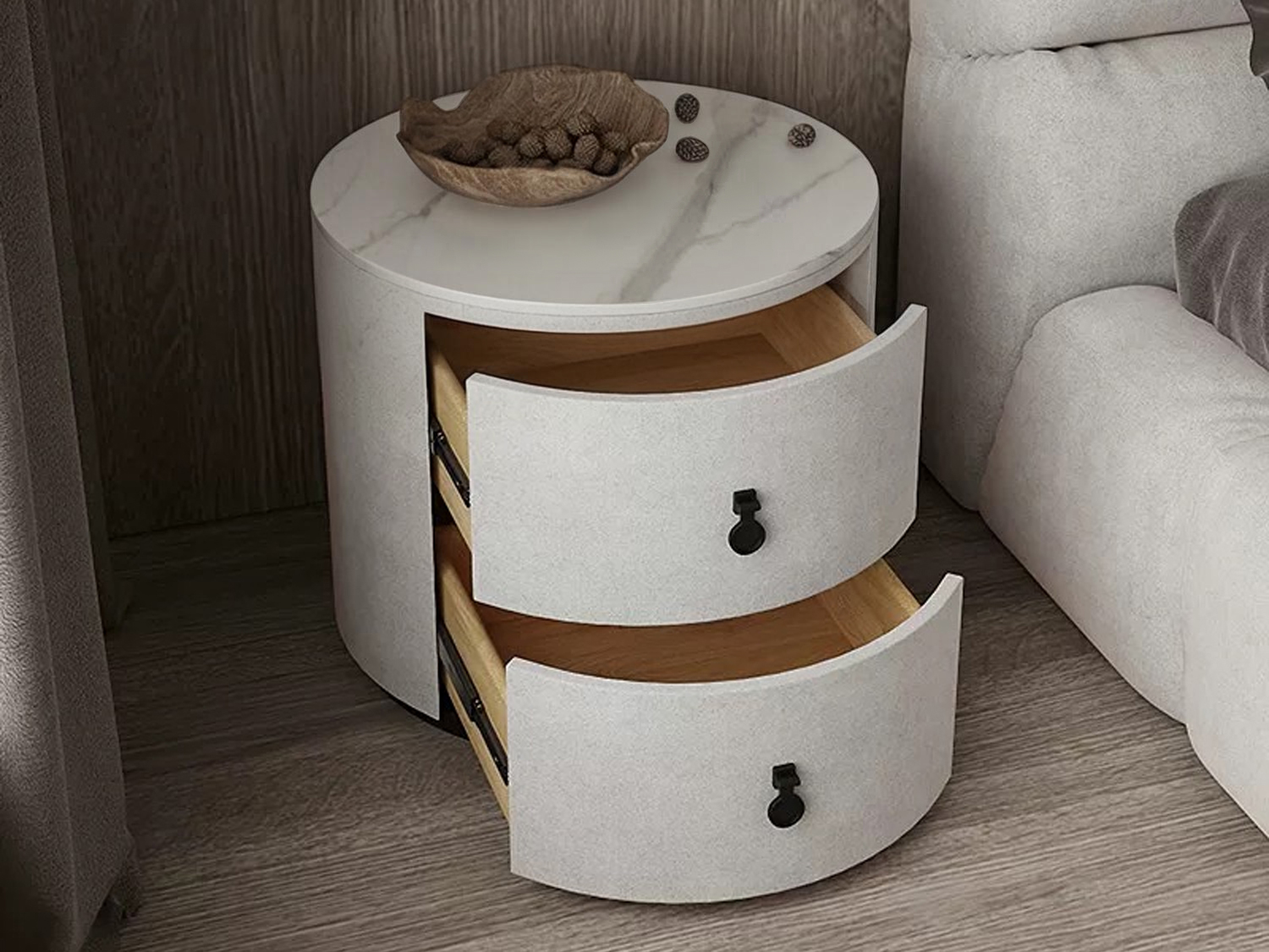 Introducing the Tilpa Sintered Stone Top Bedside Table – a unique combination of modern design and functional features. The standout feature of this bedside table is the sintered stone top, which offers both elegance and durability. The rounded safety corners add to the safety aspect of the table, making it a great choice for homes with children. With the inclusion of the drawers, this bedside table provides ample storage space, allowing you to keep all your essentials organized and within easy reach.