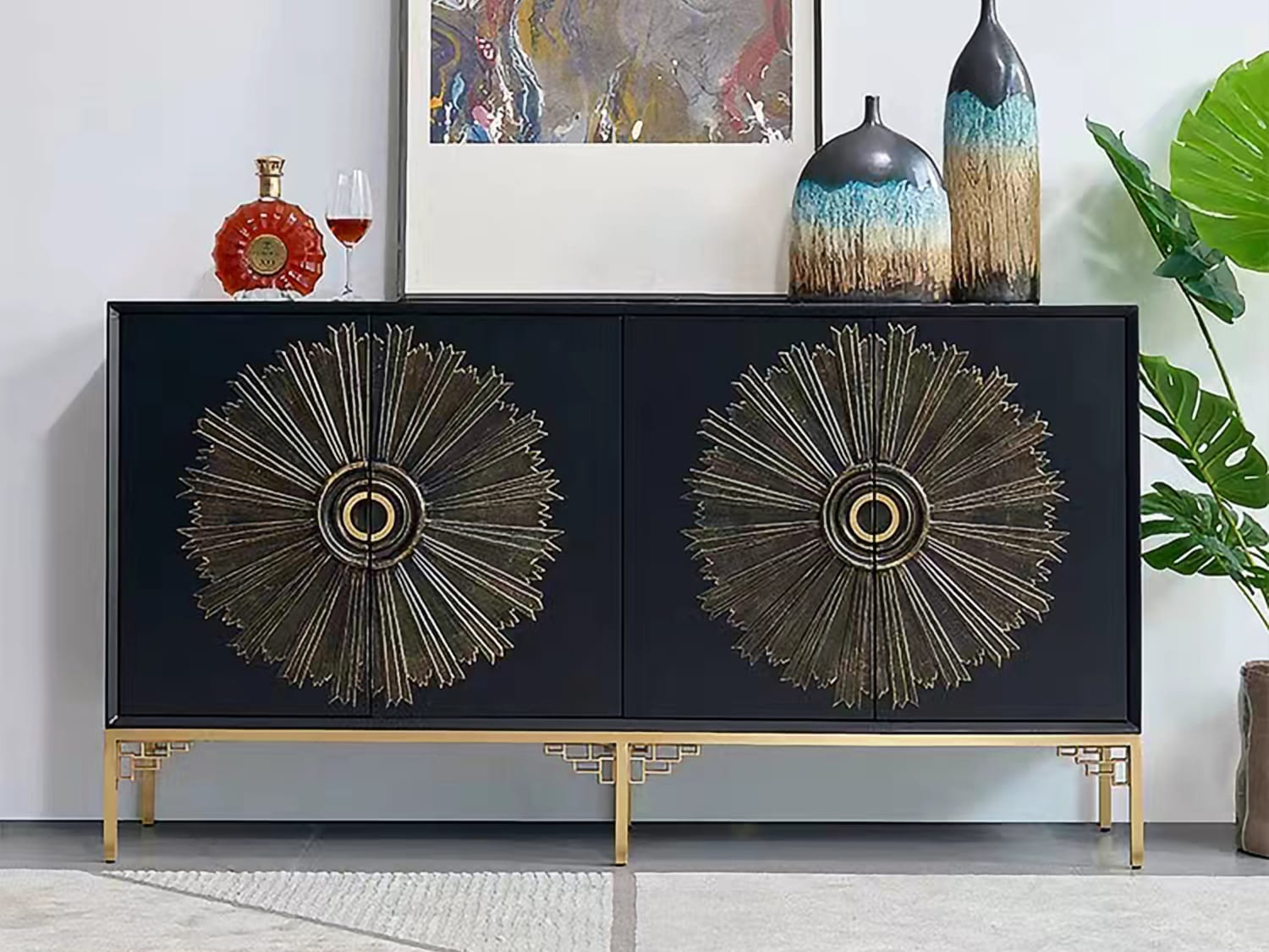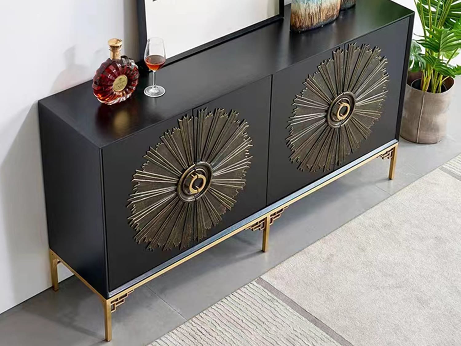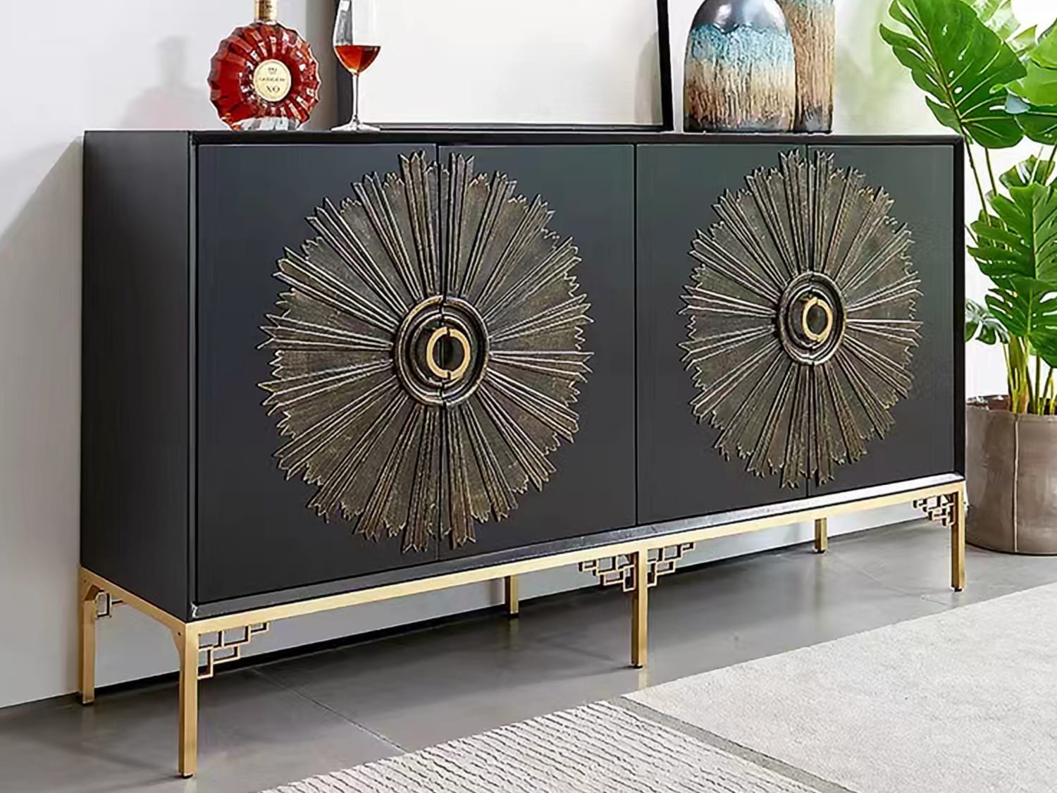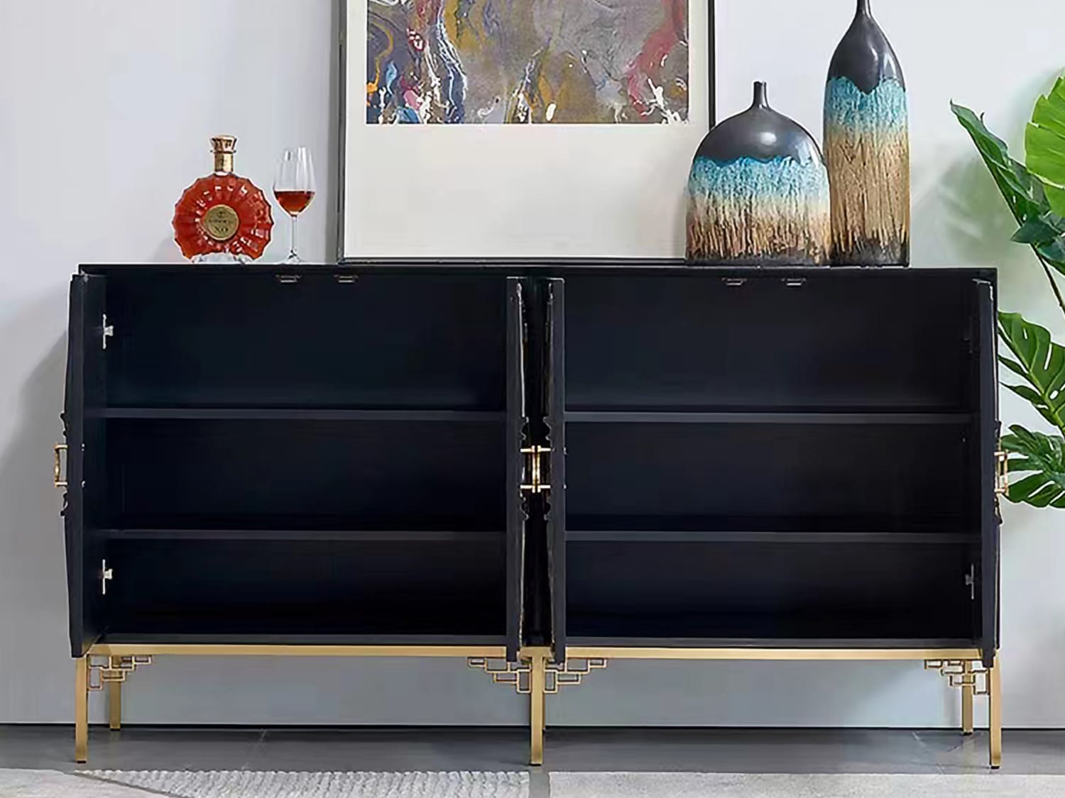 This Vacy Cabinet/Buffet is made of solid wood for durability and strength. It has a concave-convex texture that makes it look elegant. This buffet cabinet comes with buffer damping door hinges so you can easily open the door easily. It also has a multi-compartment classification storage space design, which allows large-capacity storage and adjustable partitions for easy access and visibility.