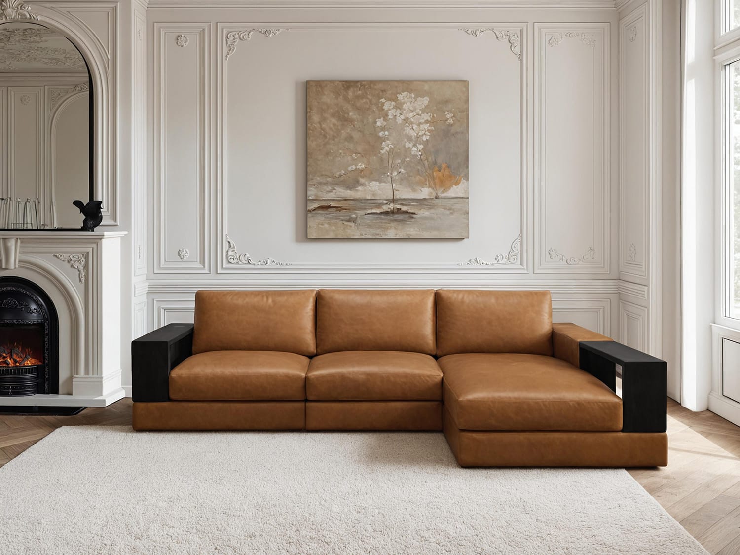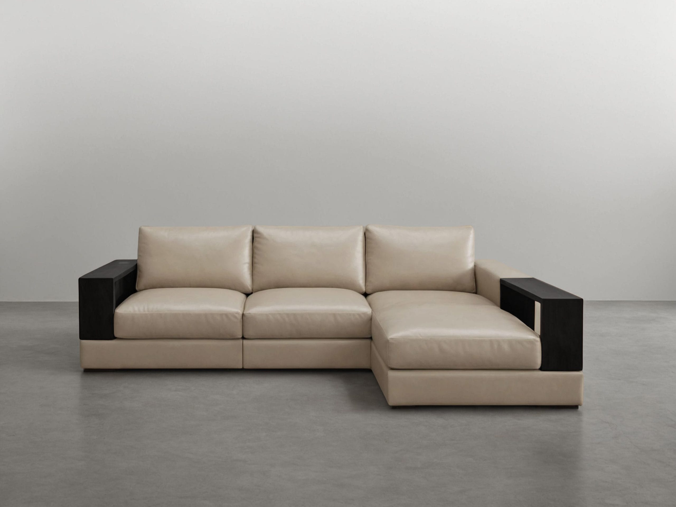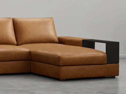 Veron Wireless Charger Leather Chaise Lounge-Black Wooden Armrest