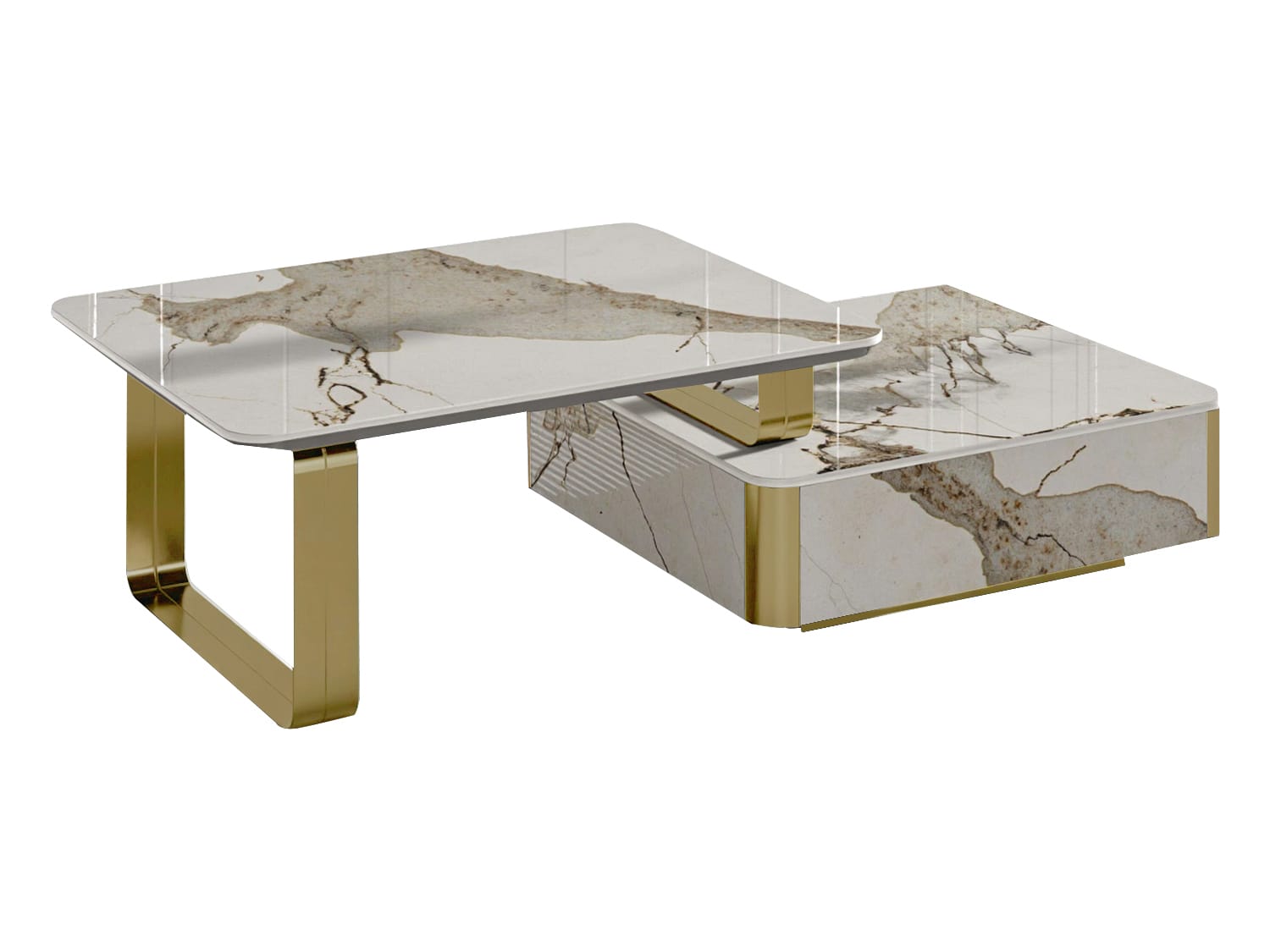Experience the perfect combination of style and durability with the Vina Modern Sintered Stone Coffee Table. Its resistance to moisture, wear, compression, and high temperatures, along with its sintered stone construction and golden stainless steel details, make it a standout addition to your home decor, perfect for enjoying coffee or displaying decor items.
