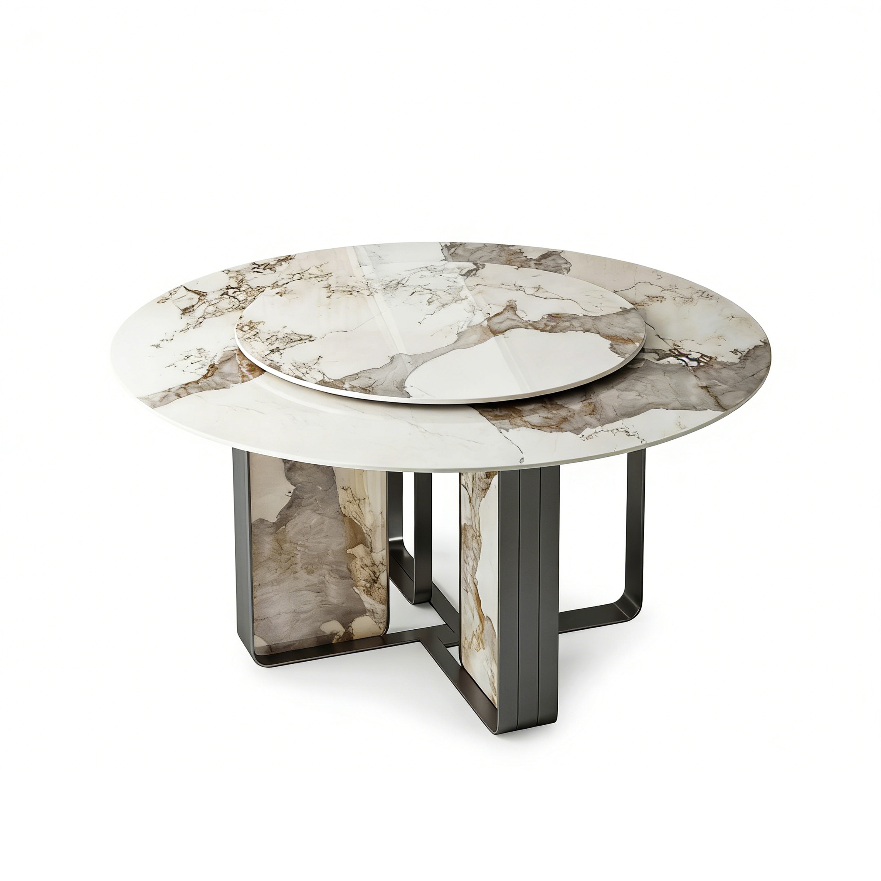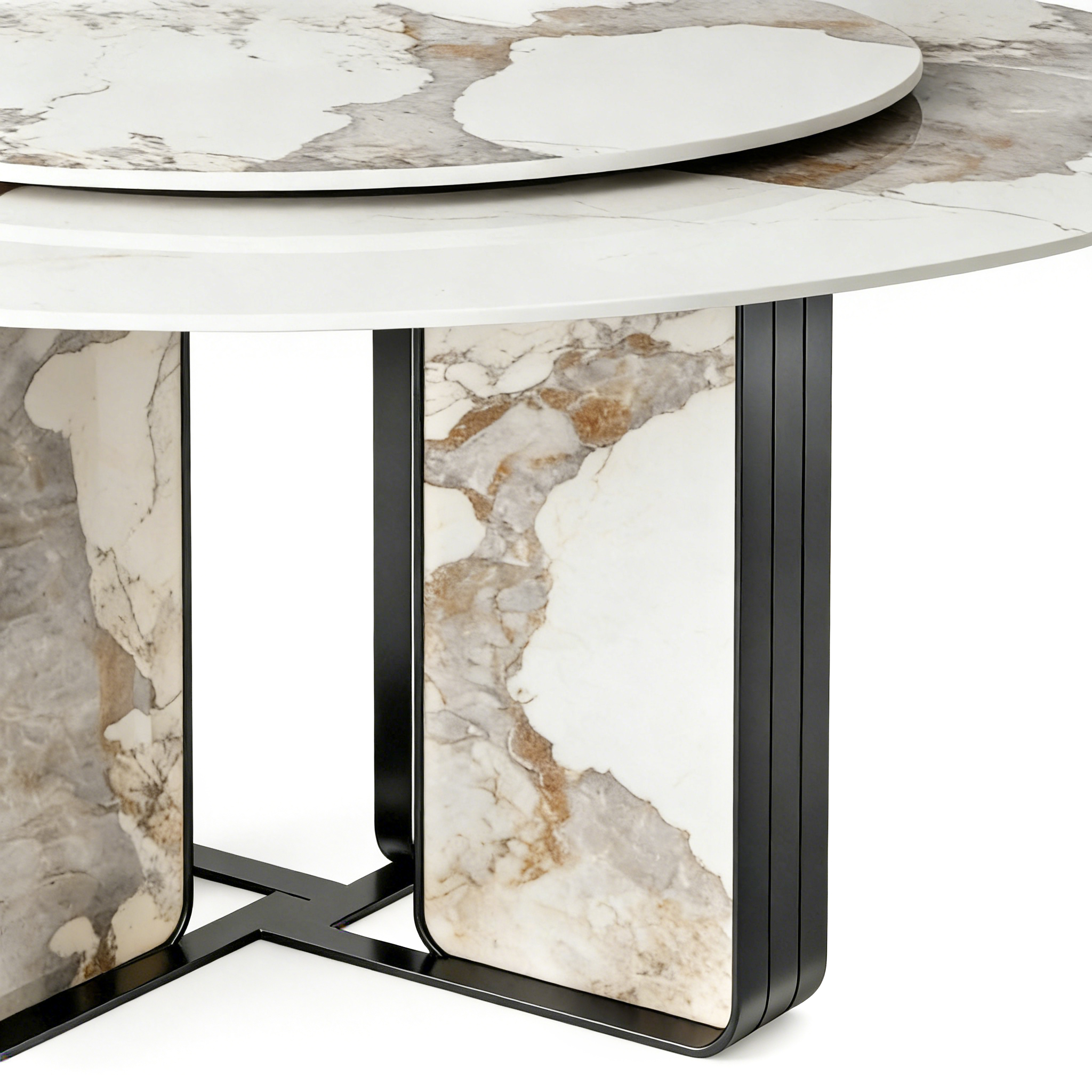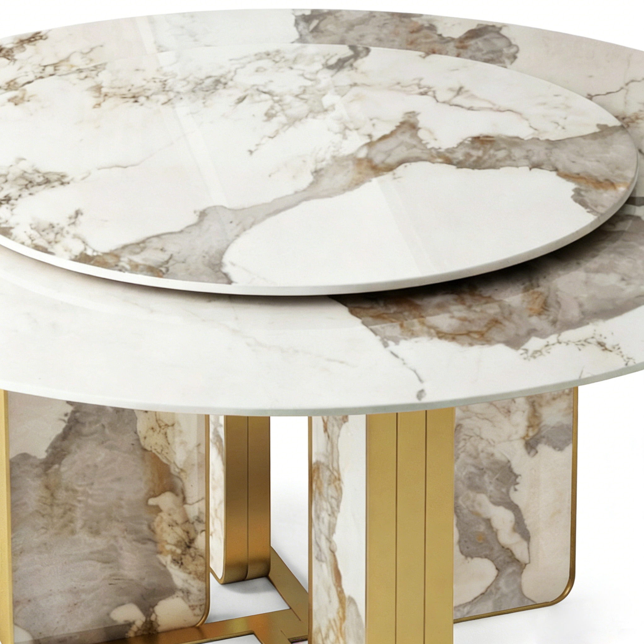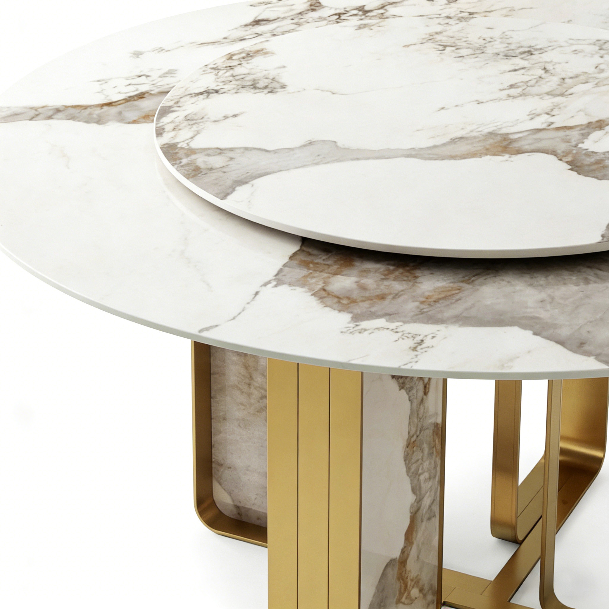 Vina Round Sintered Stone Dining Table-With/Without Lazy Susan-Golden/Black-120/135/150CM