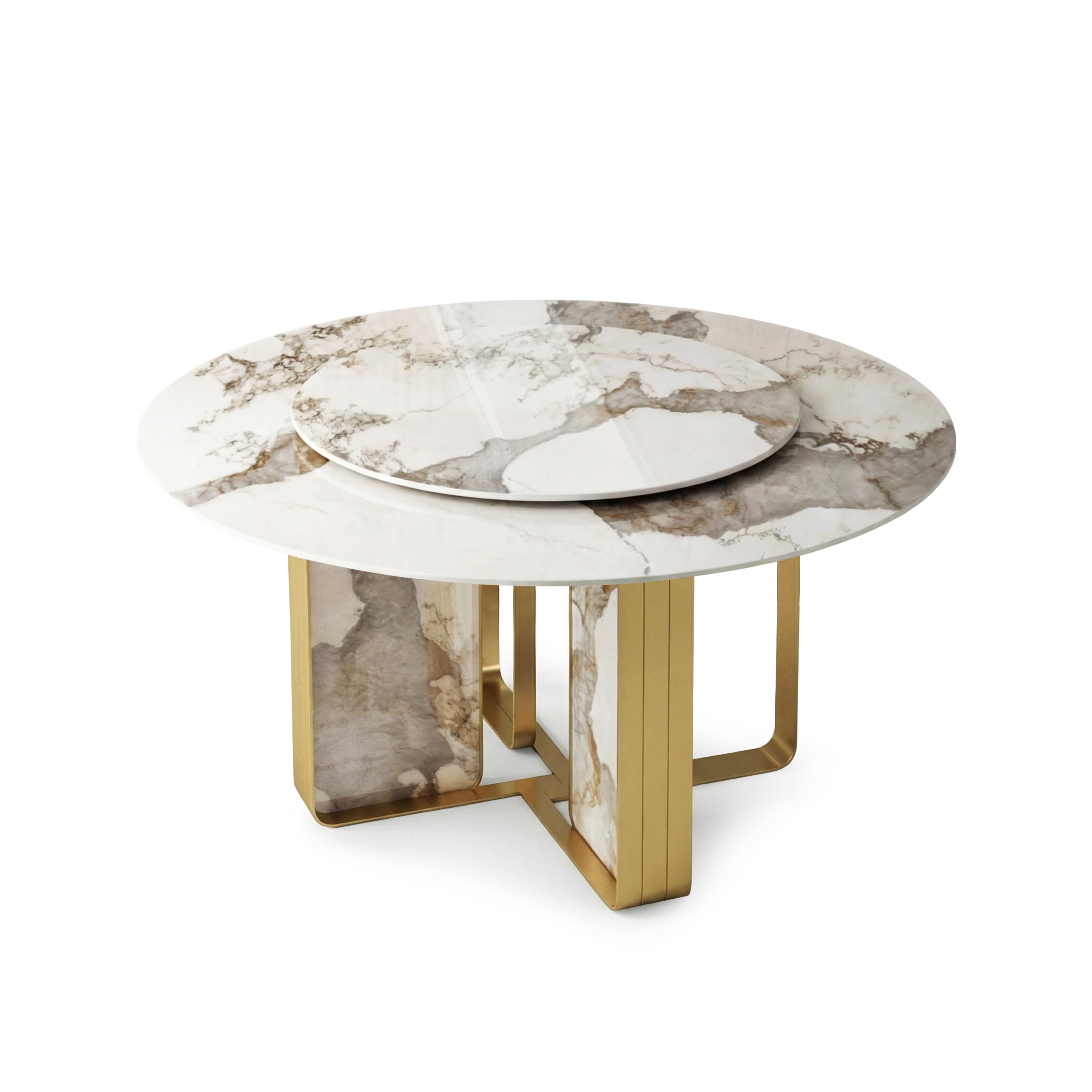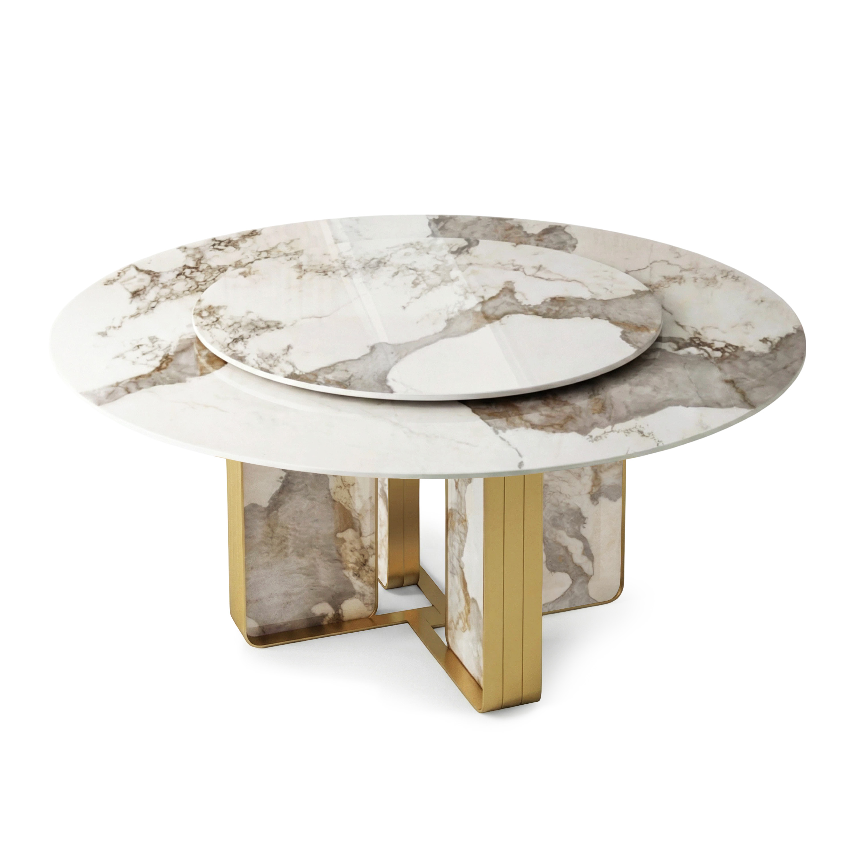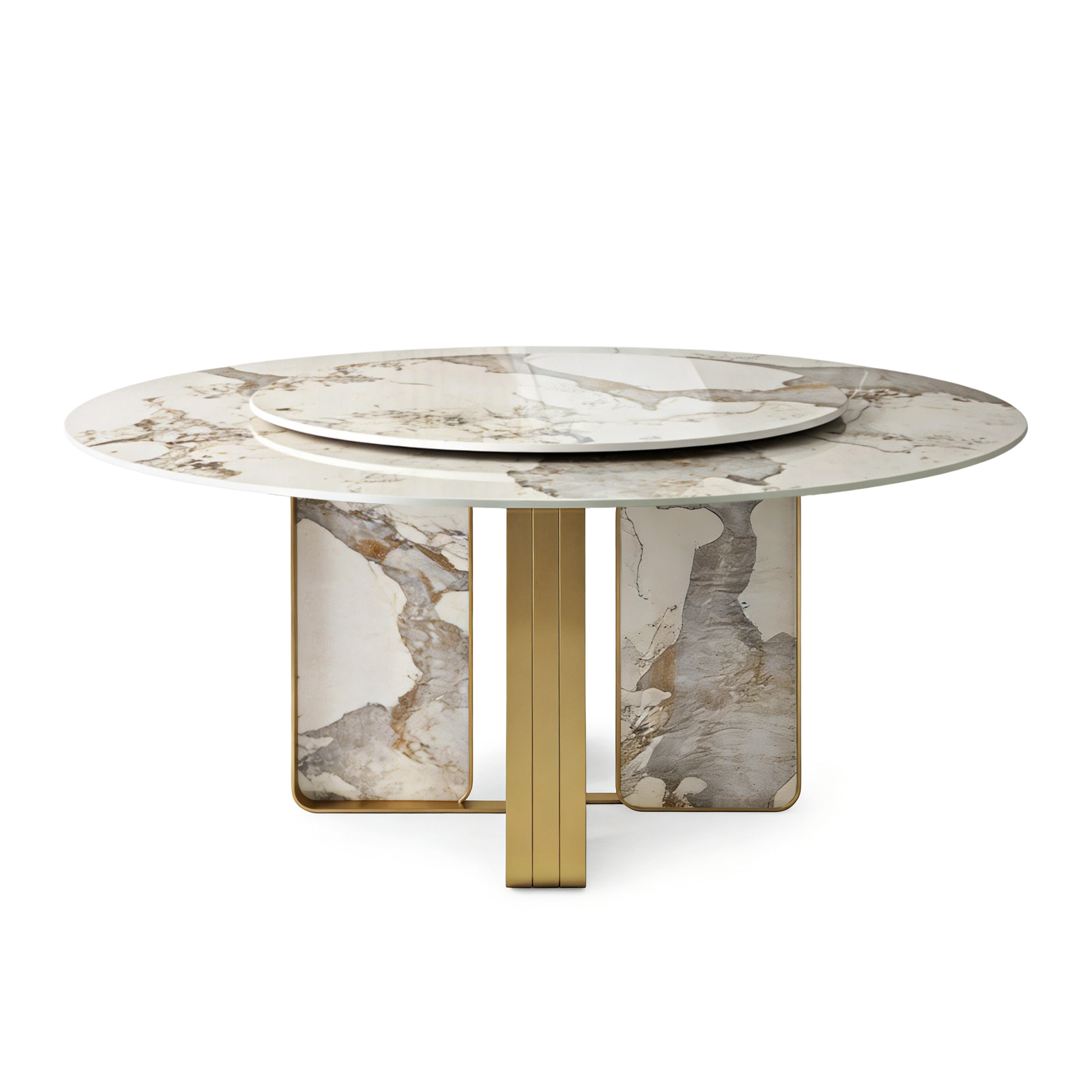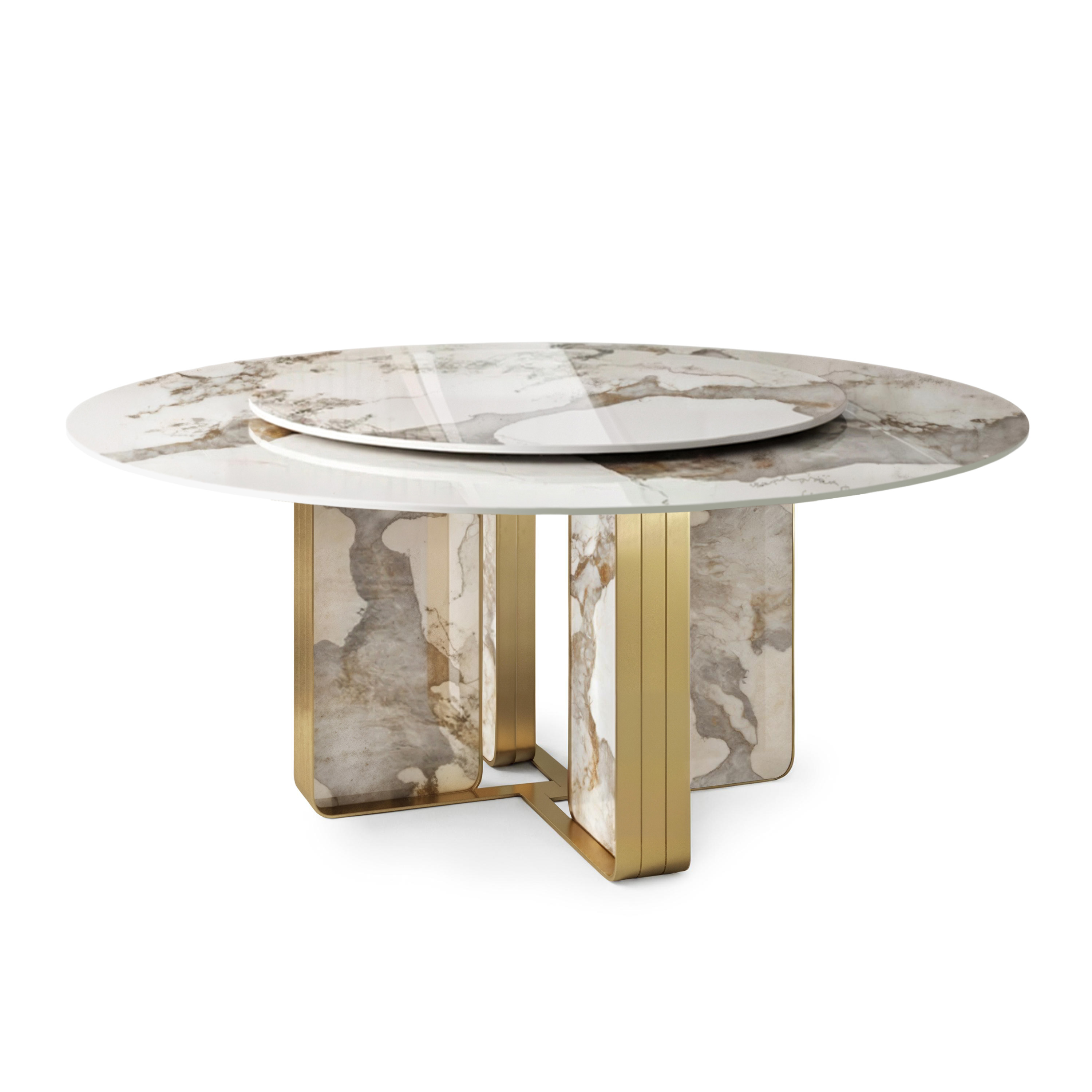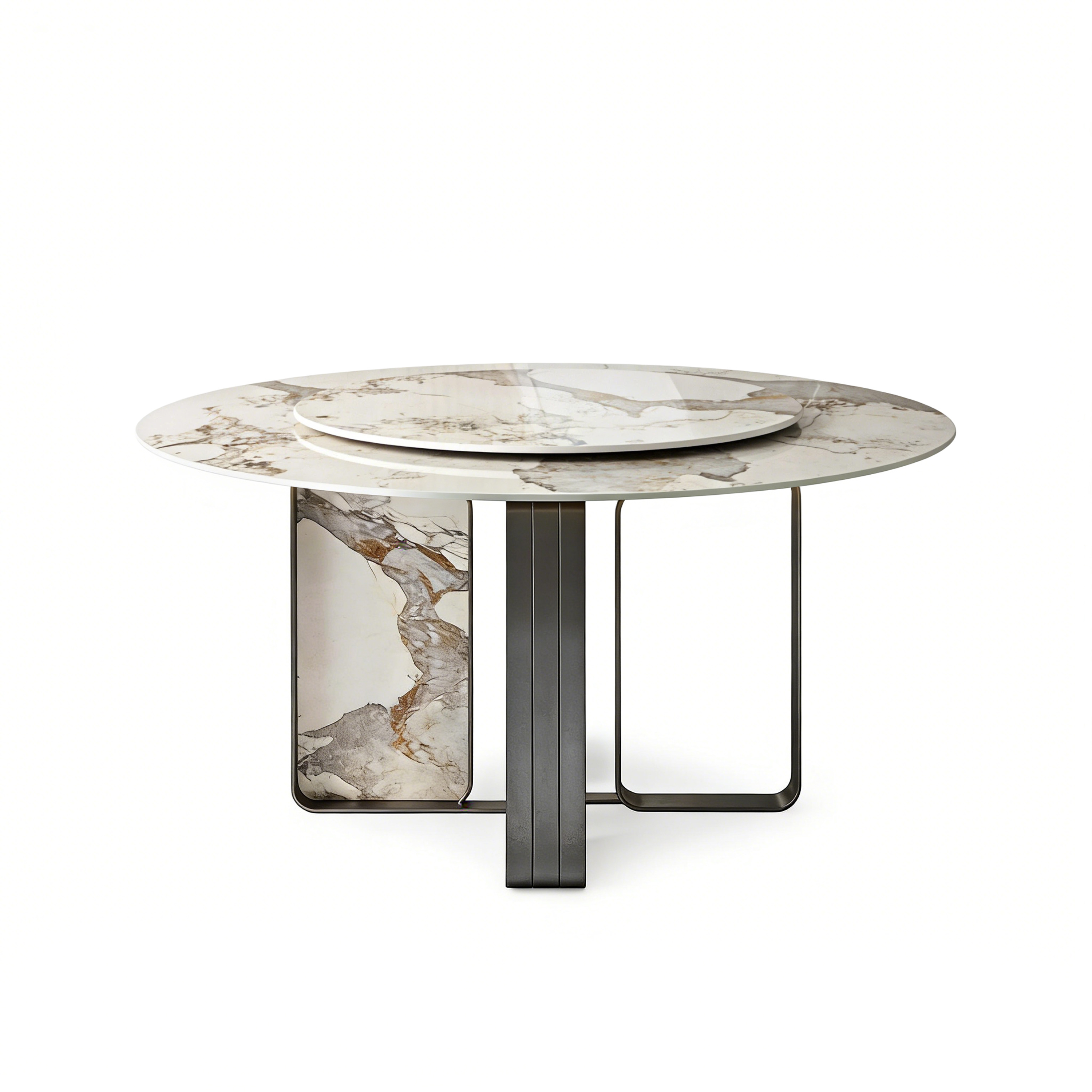 Vina Round Sintered Stone Dining Table-With/Without Lazy Susan-Golden/Black-120/135/150CM