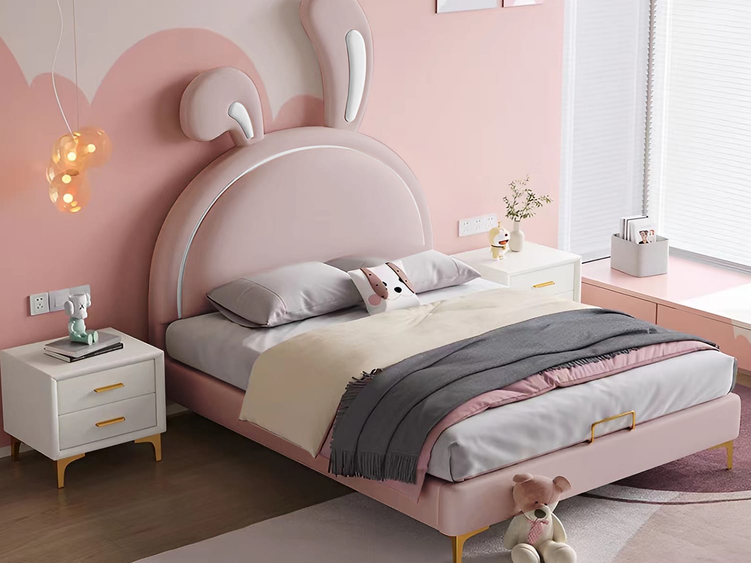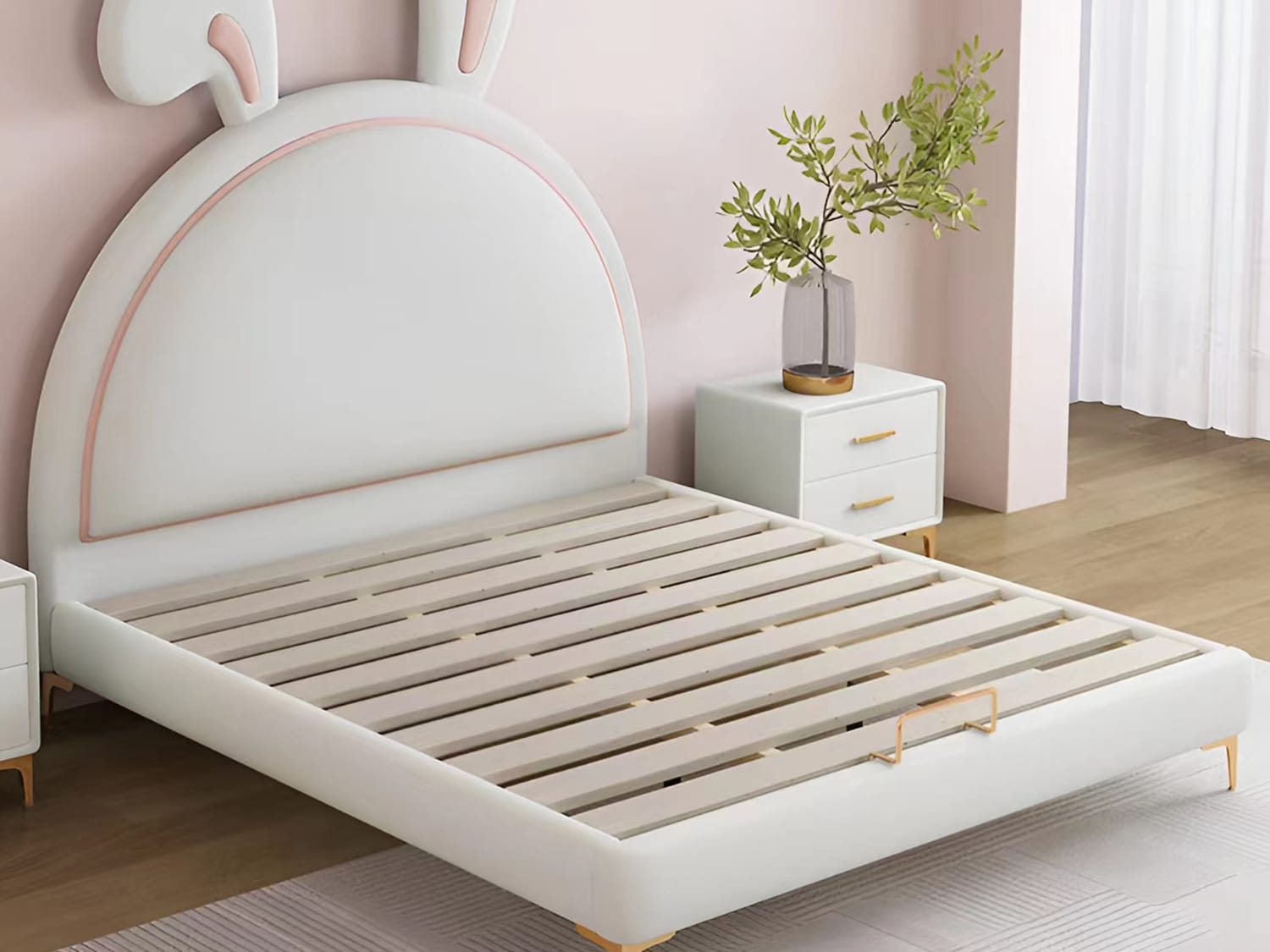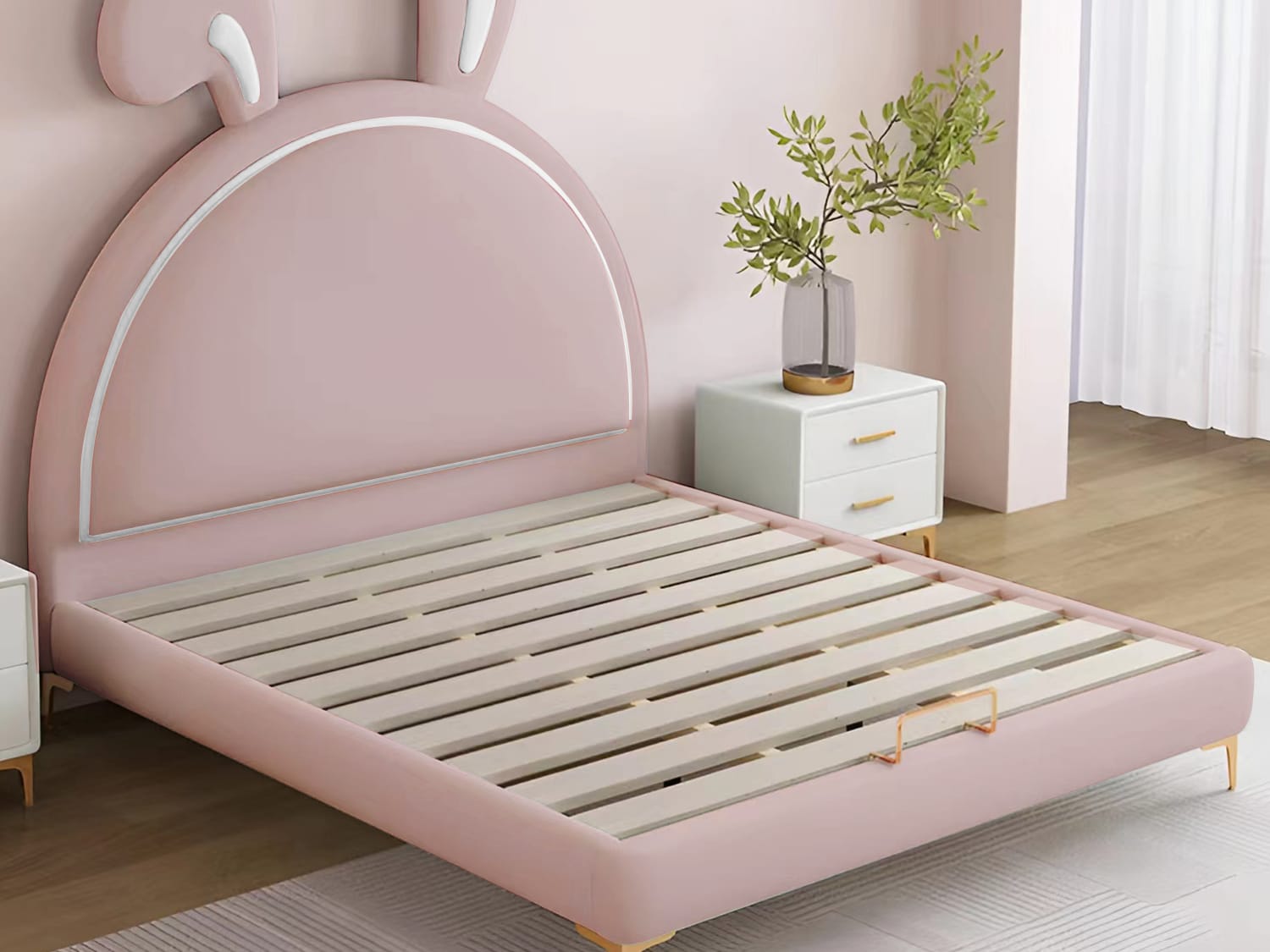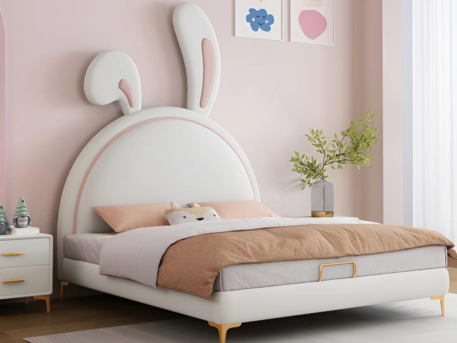 Are you looking for a bed for your child’s room? You can’t go wrong with the Wallacia cute rabbit kids’ bed frame. This frame is easy to assemble and comes with instructions on how to put it together. It has a round safety corner that is stable and sturdy, so you can rest assured that your child will be safe in it. The creative rabbit design will definitely make your child happy and excited about having their own bed.