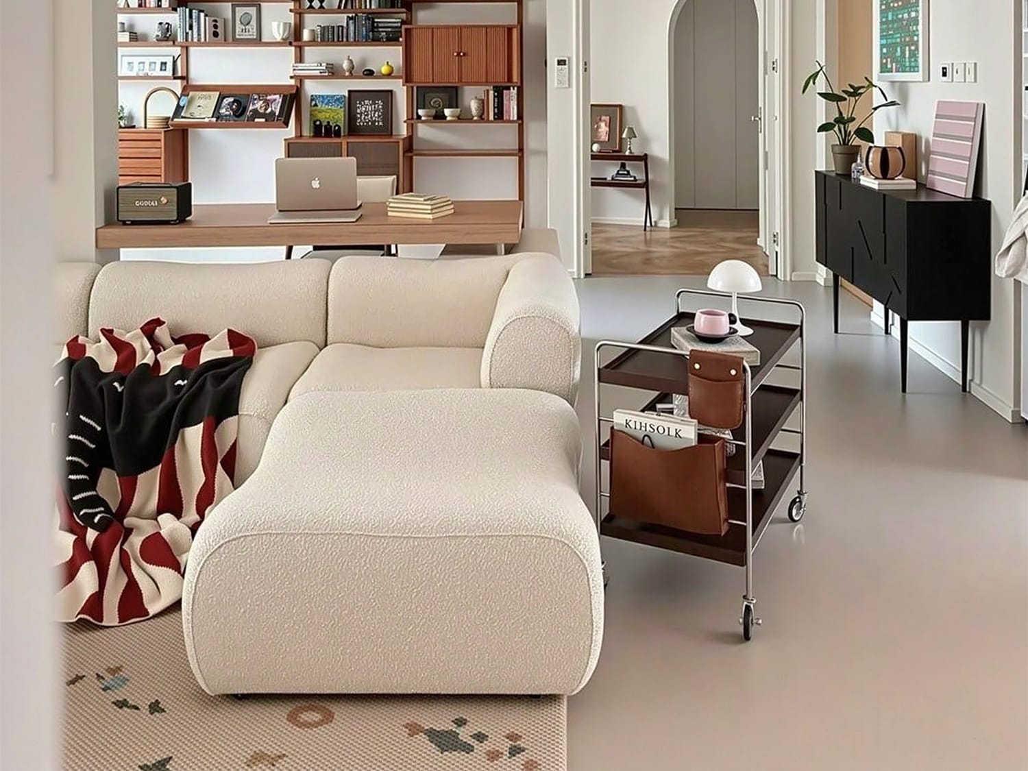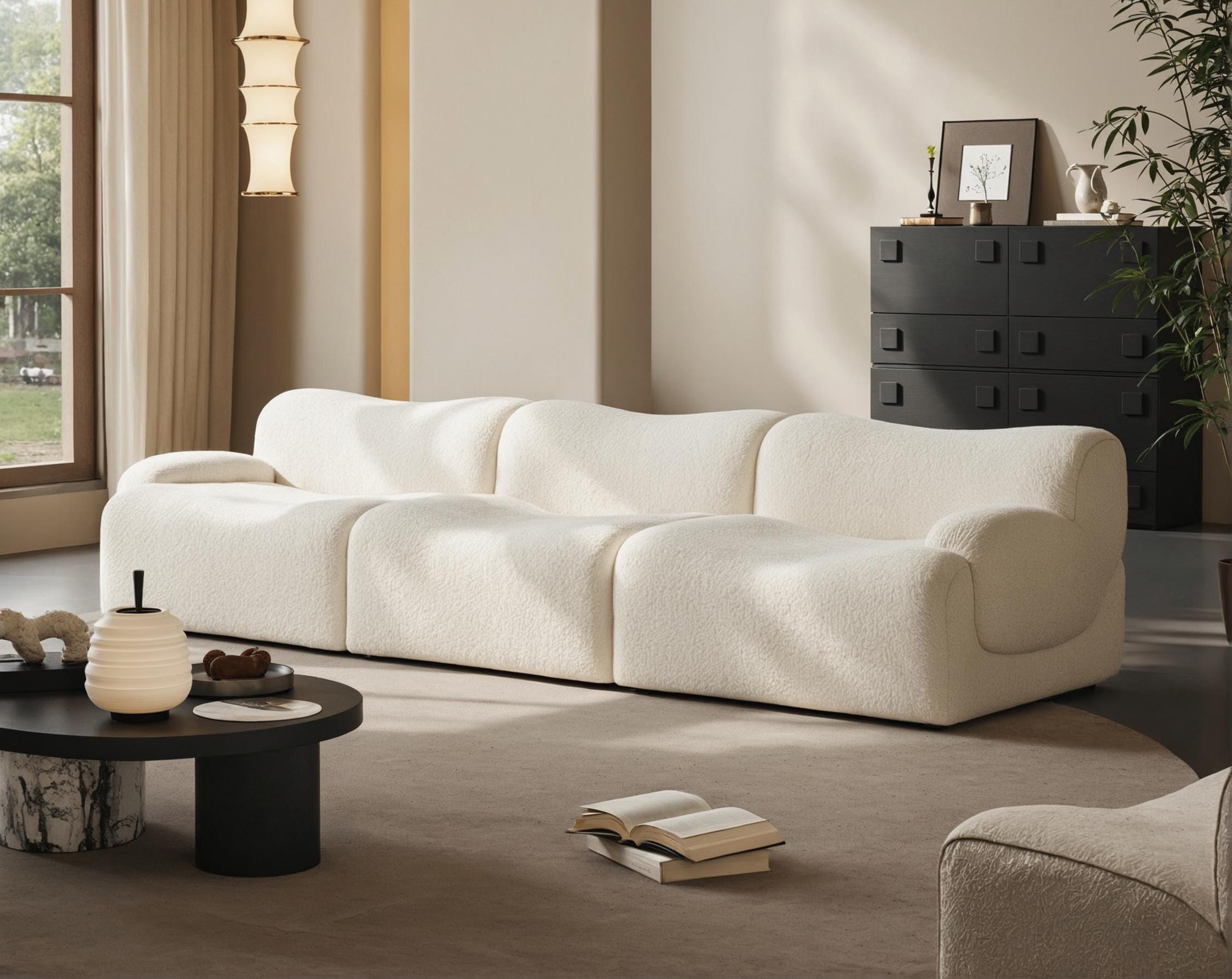 The Wambo Modern Sofa redefines contemporary comfort with its sumptuous bouclé fabric in soft Off White, elegant Gainsboro and romantic Petite Orchid hues. The plush cushions and clean-lined silhouette create a perfect balance of modern aesthetics and inviting comfort, while the textured upholstery adds subtle visual interest. Designed to be both a statement piece and everyday sanctuary, this sofa transforms living spaces into stylish yet cozy retreats for relaxation and entertaining alike.