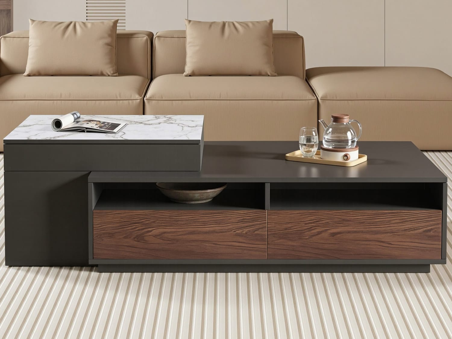 Upgrade your living space with this sleek and functional lift-top coffee table. Crafted from durable carbon steel and MFC, it features a stylish grey stone grain finish with a modern white base. The lift-top desktop provides extra workspace and hidden storage, while the built-in drawer keeps essentials neatly organized.Perfect for small apartments or contemporary homes, this coffee table combines practicality and modern aesthetics.