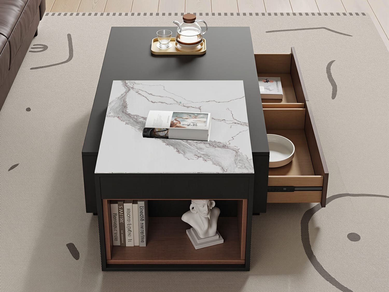 Upgrade your living space with this sleek and functional lift-top coffee table. Crafted from durable carbon steel and MFC, it features a stylish grey stone grain finish with a modern white base. The lift-top desktop provides extra workspace and hidden storage, while the built-in drawer keeps essentials neatly organized.Perfect for small apartments or contemporary homes, this coffee table combines practicality and modern aesthetics.