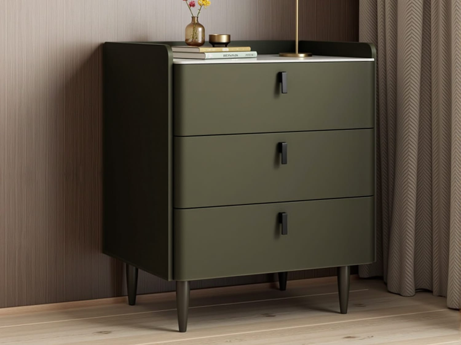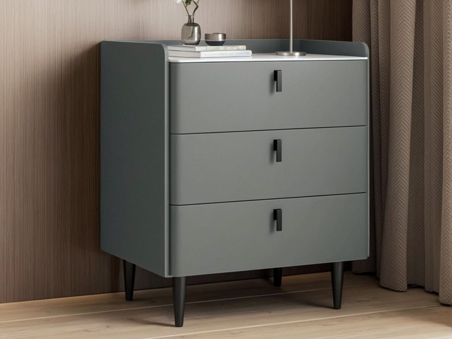 Get more use out of your bedroom with this High-Capacity Bedside Table. It features four colors: grey, cream, white, and green. This unit has three drawers and is made from wood to bring an authentic look to your space